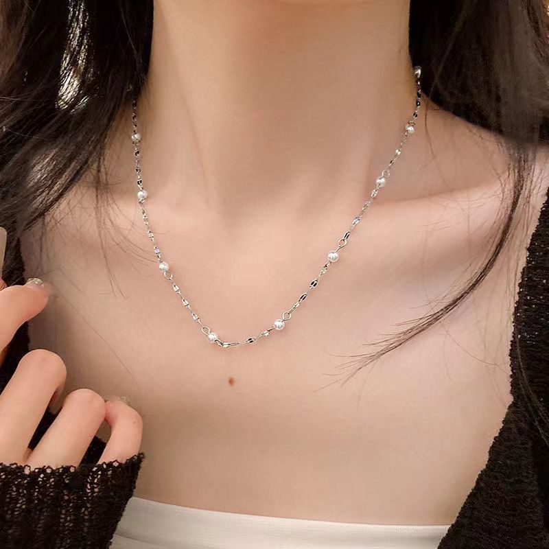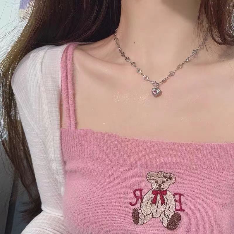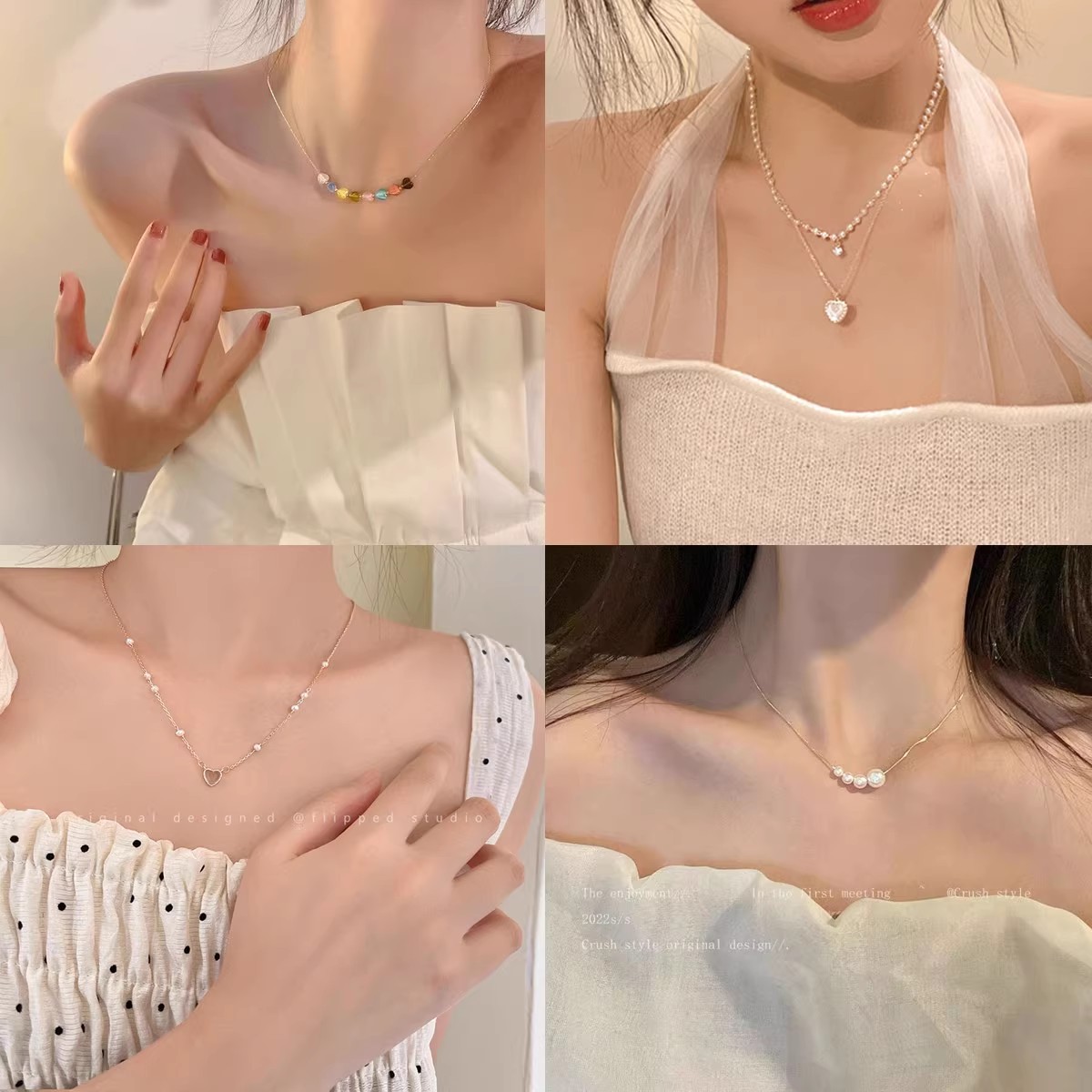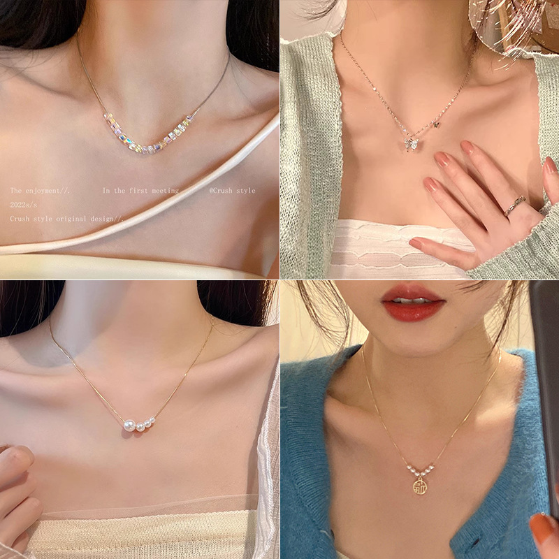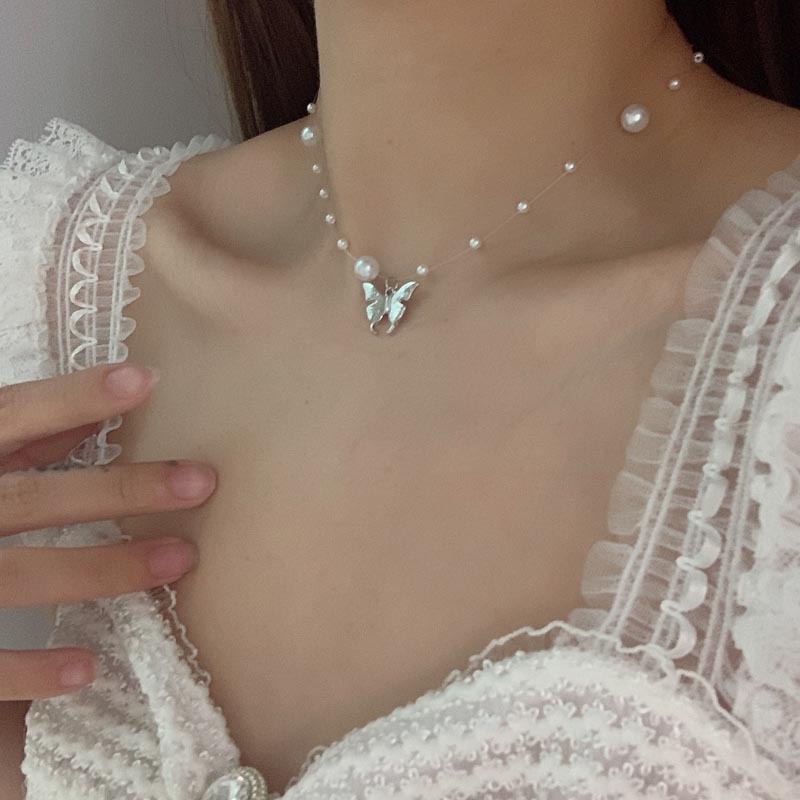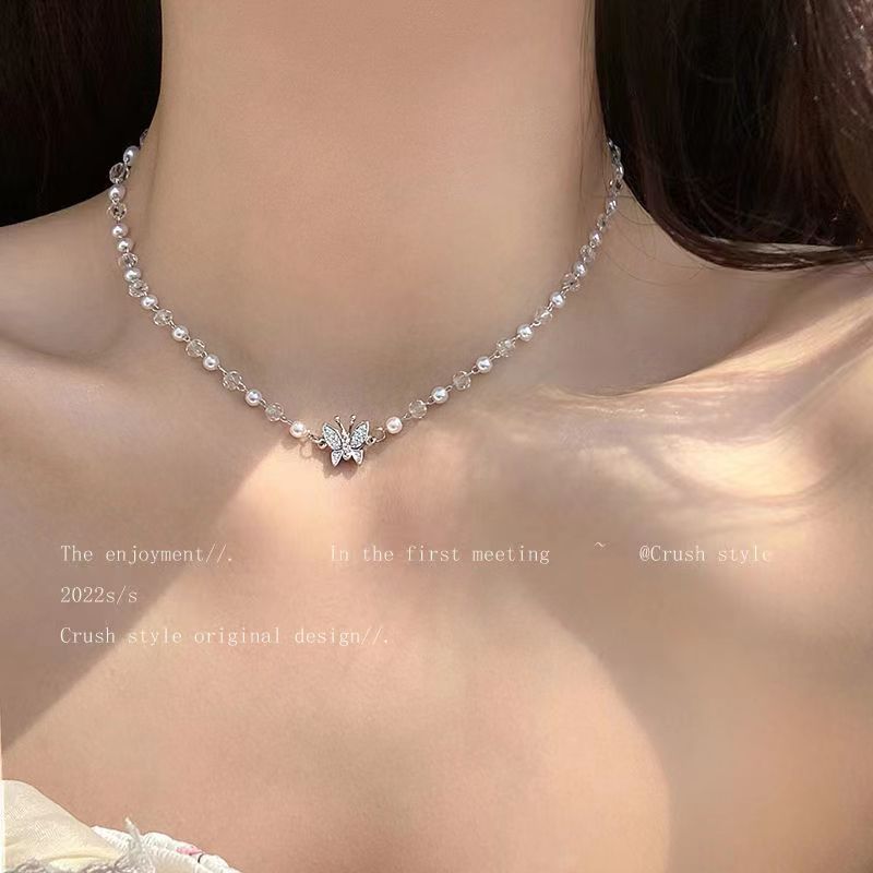 日韩ins简约爱心蝴蝶项链女轻奢小众设计锁骨链冷淡风珍珠项链女