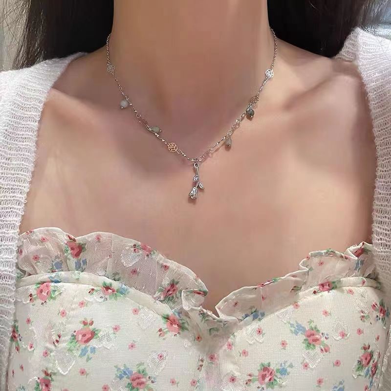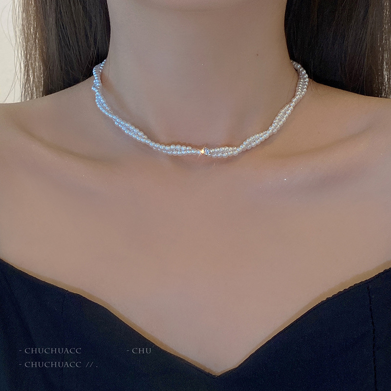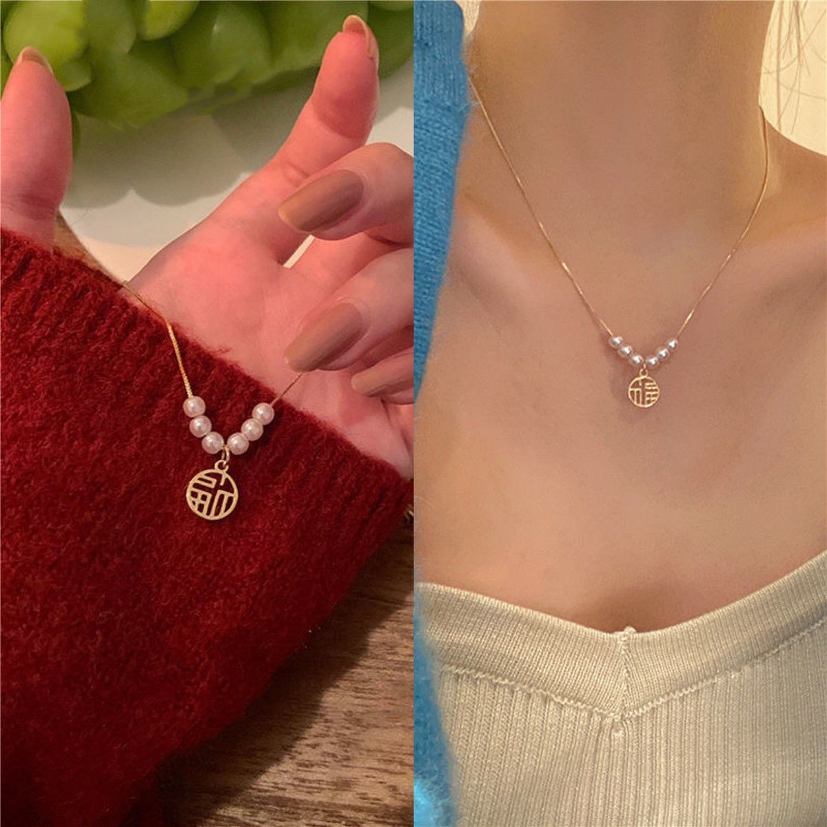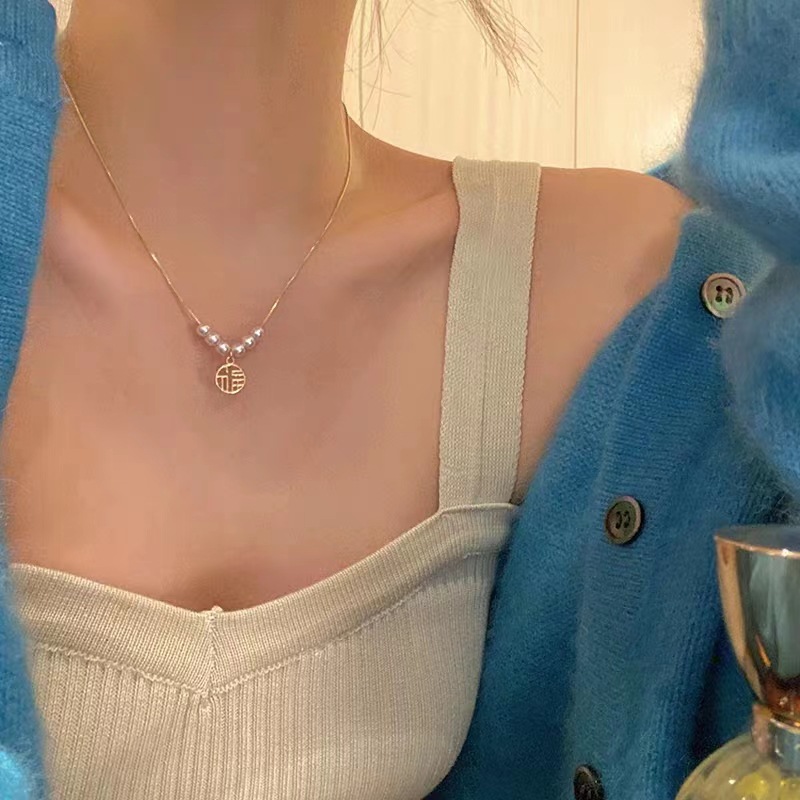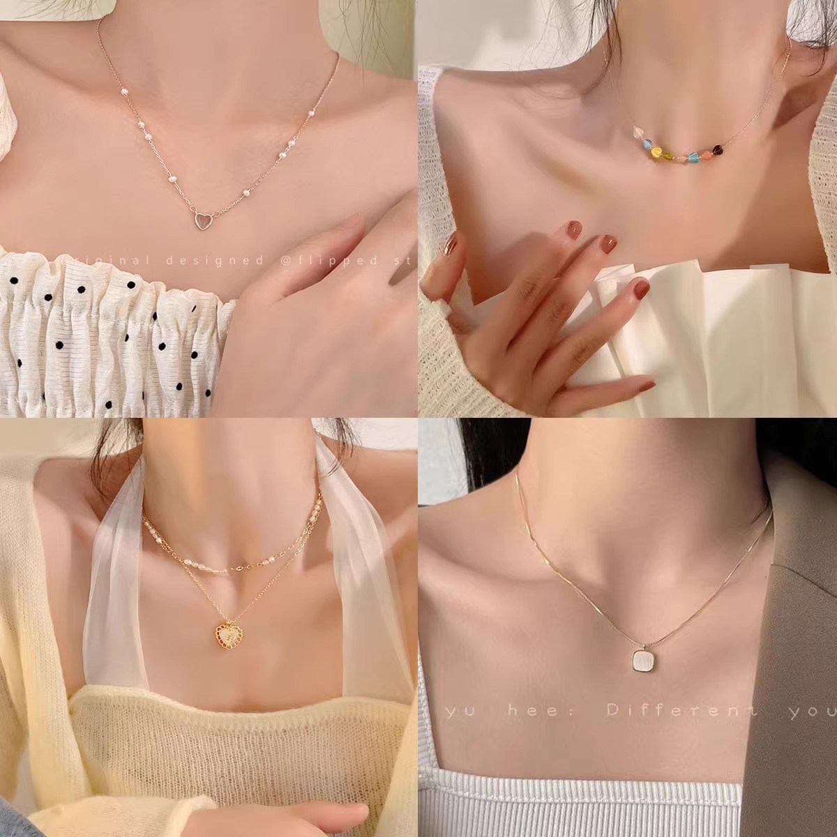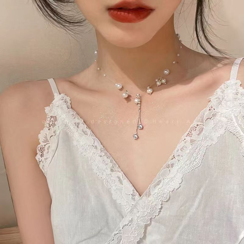 日韩ins简约爱心蝴蝶项链女轻奢小众设计锁骨链冷淡风珍珠项链女