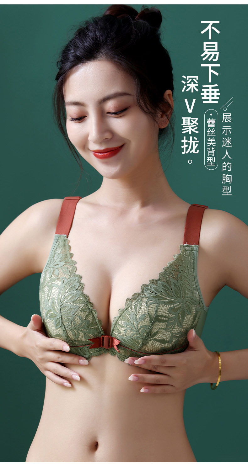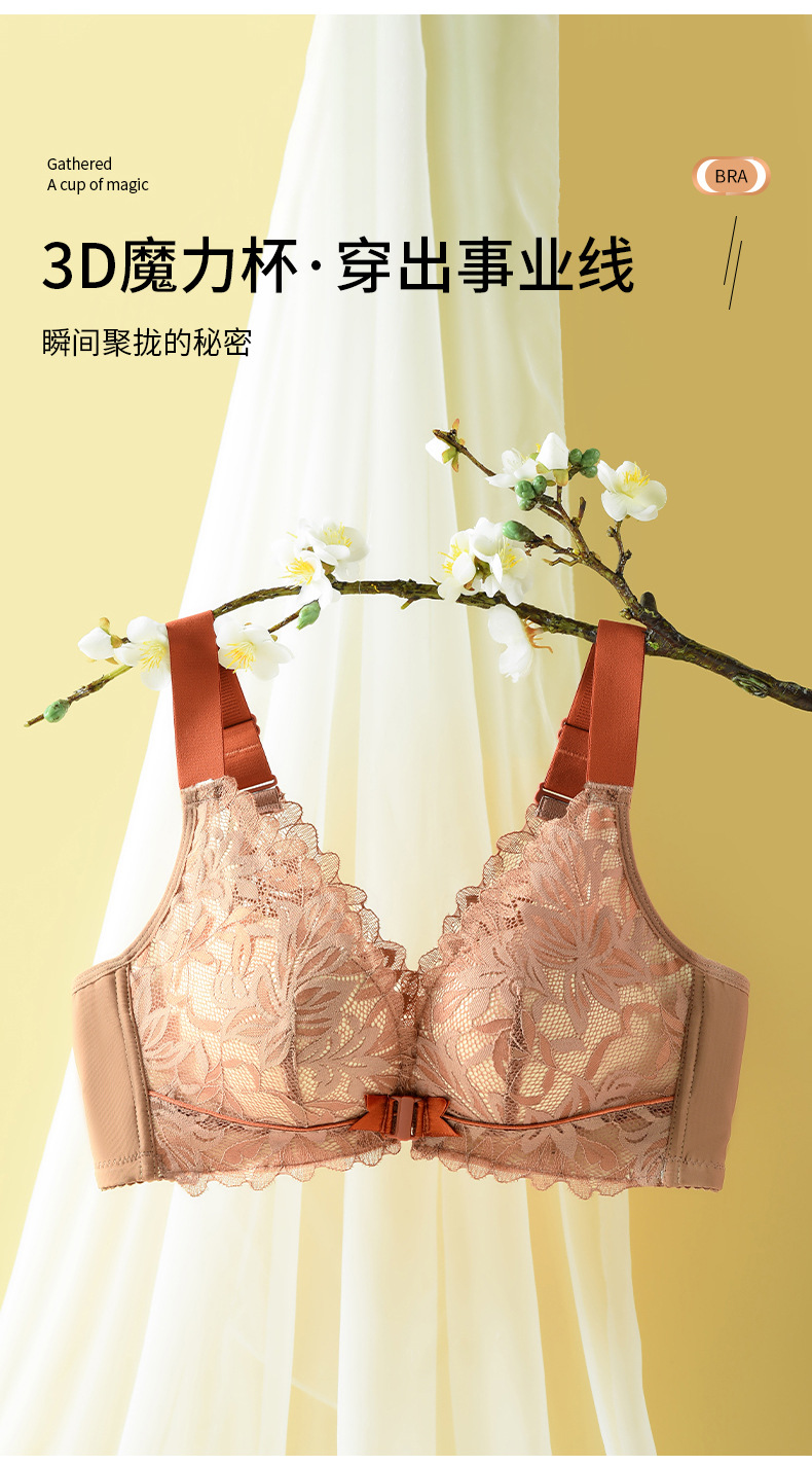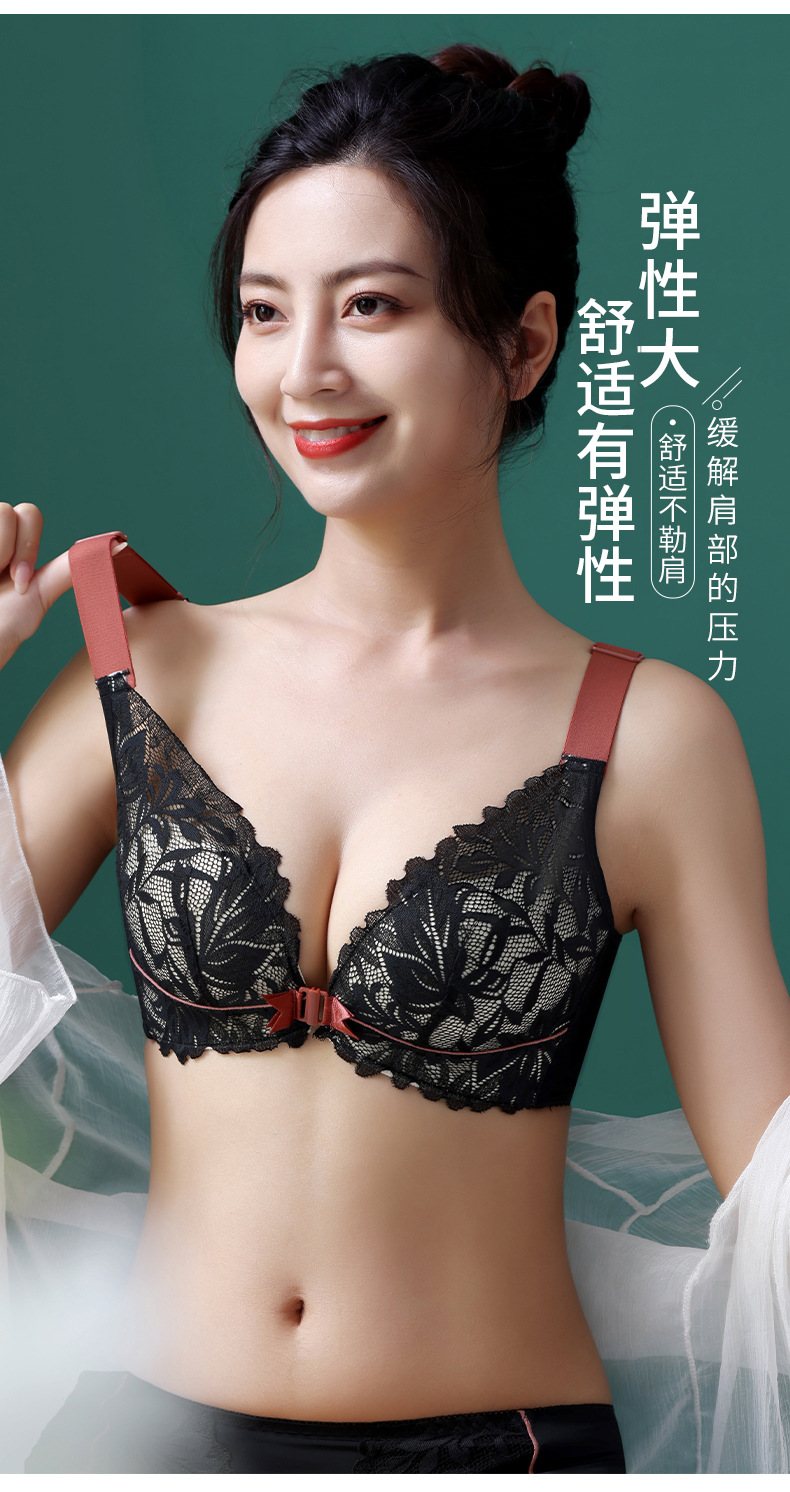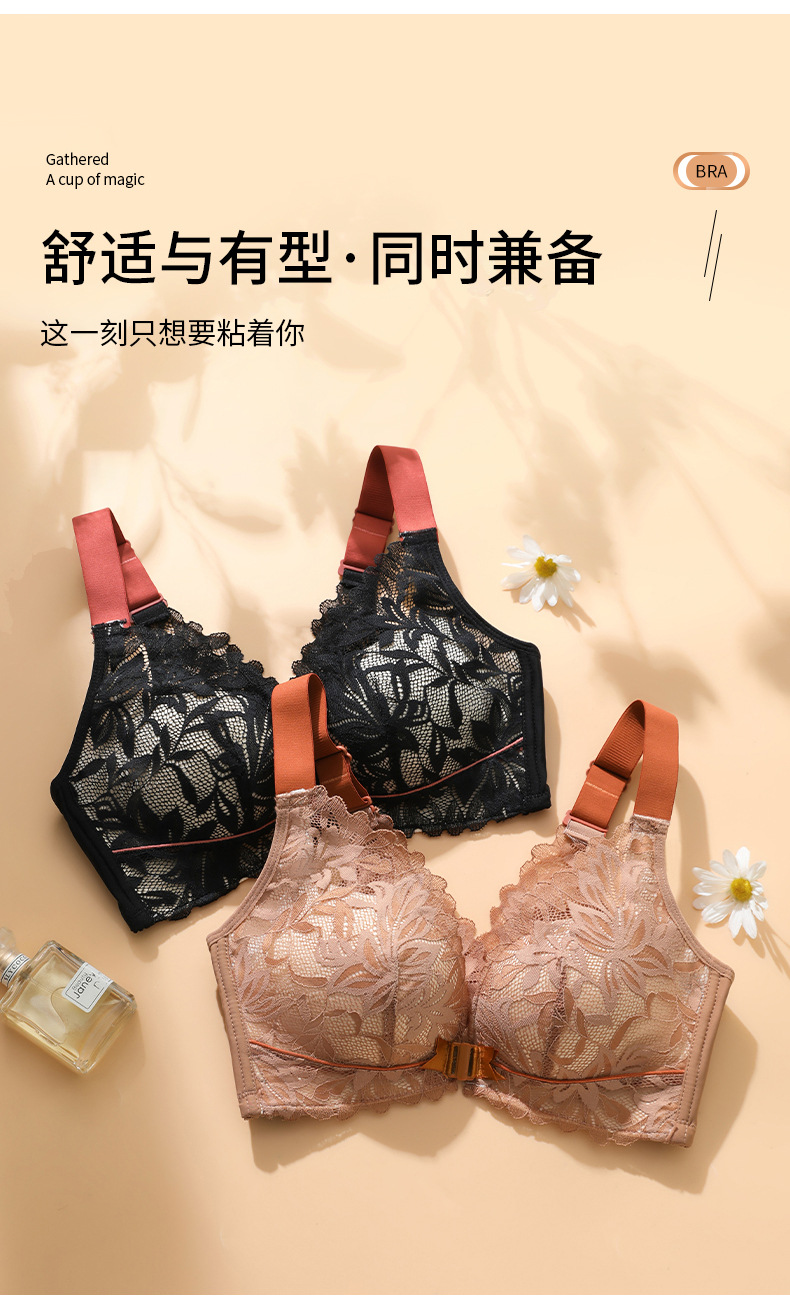 前扣式美背内衣小胸聚拢无钢圈文胸 性感蕾丝大码调整型文胸套装