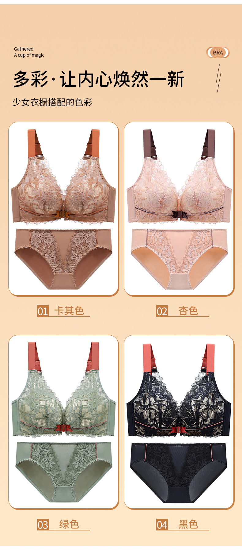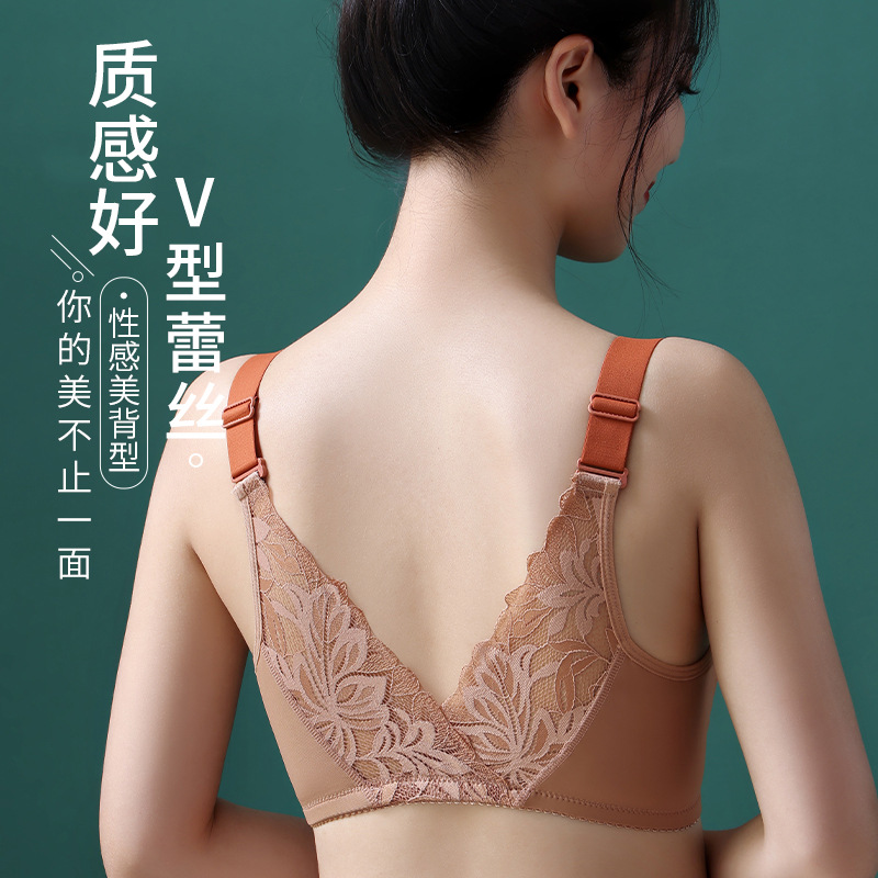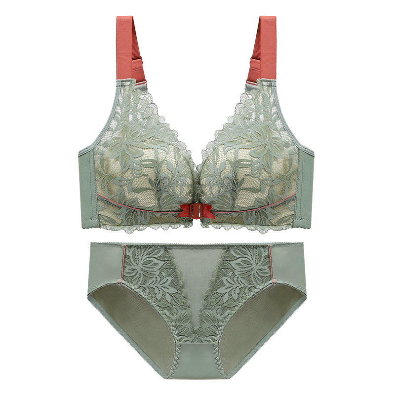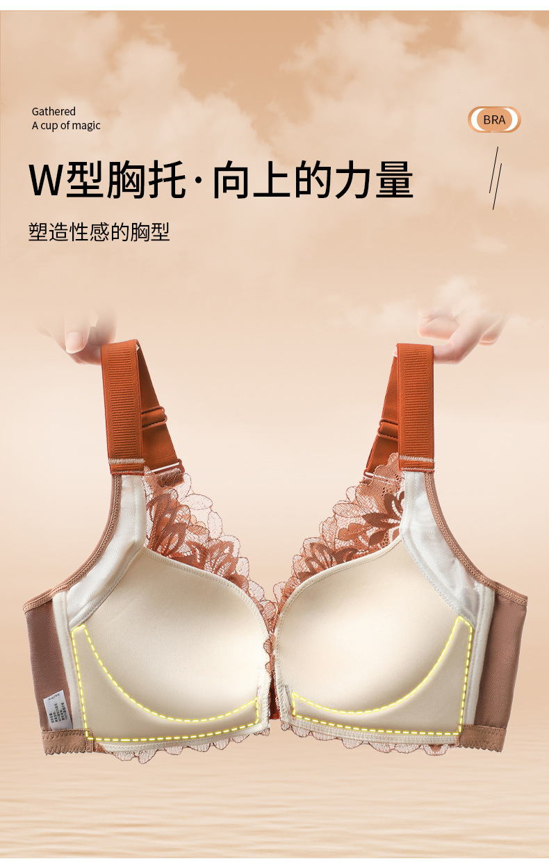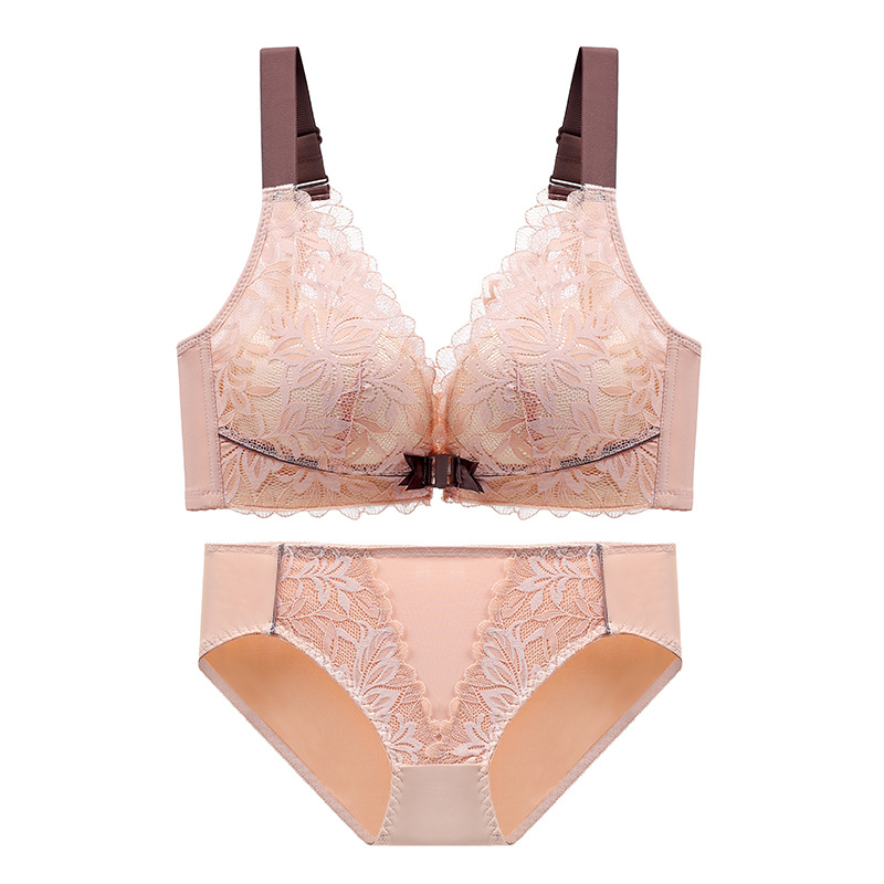 前扣式美背内衣小胸聚拢无钢圈文胸 性感蕾丝大码调整型文胸套装