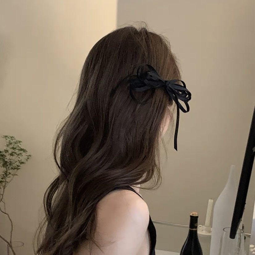 黑色丝带多层蝴蝶结ins法式复古百搭高级感后脑勺半扎发发夹女