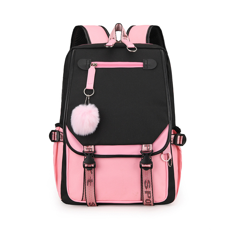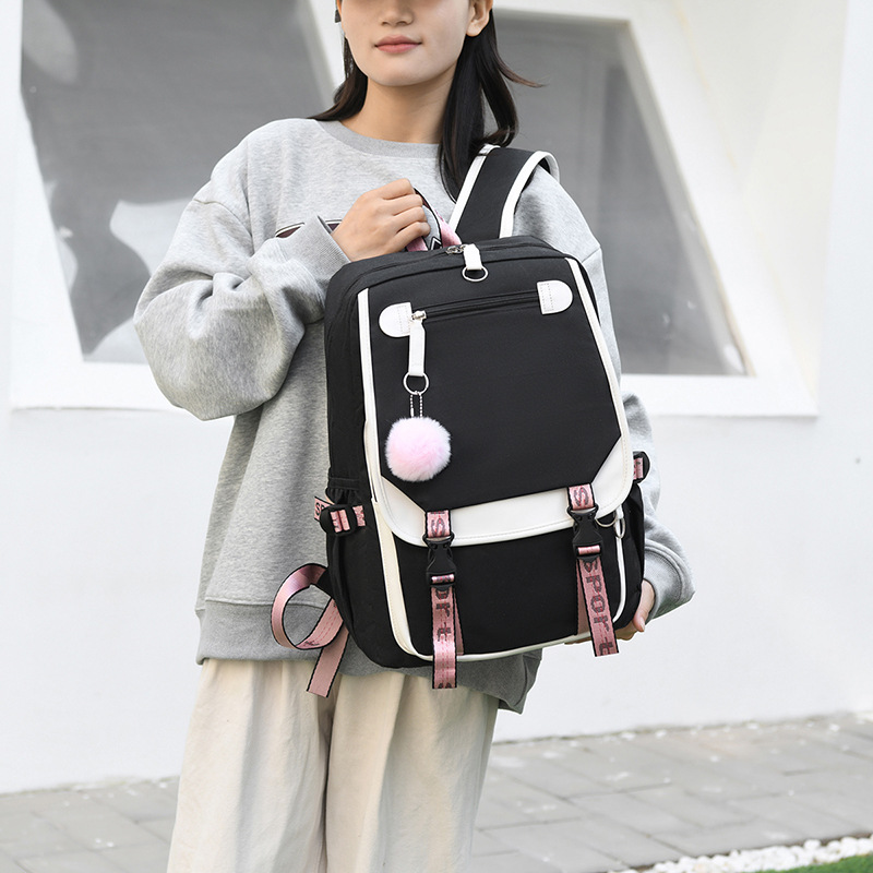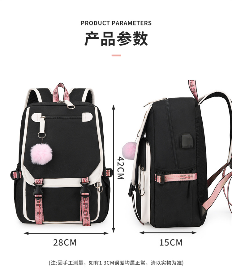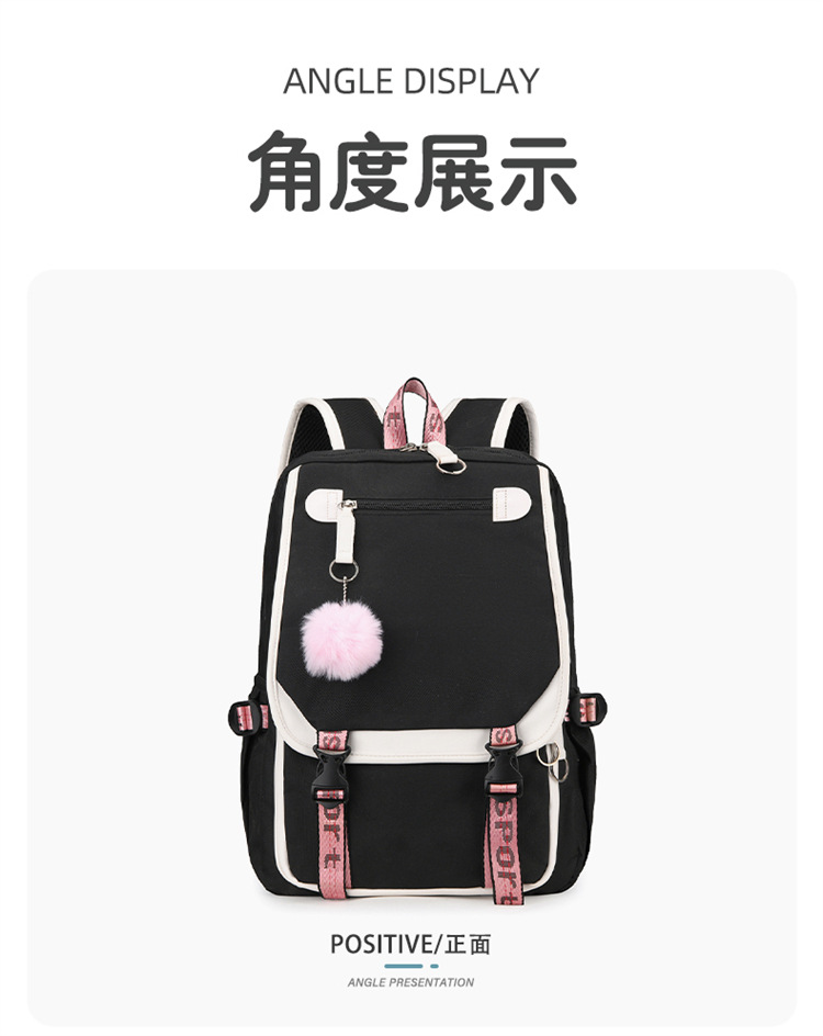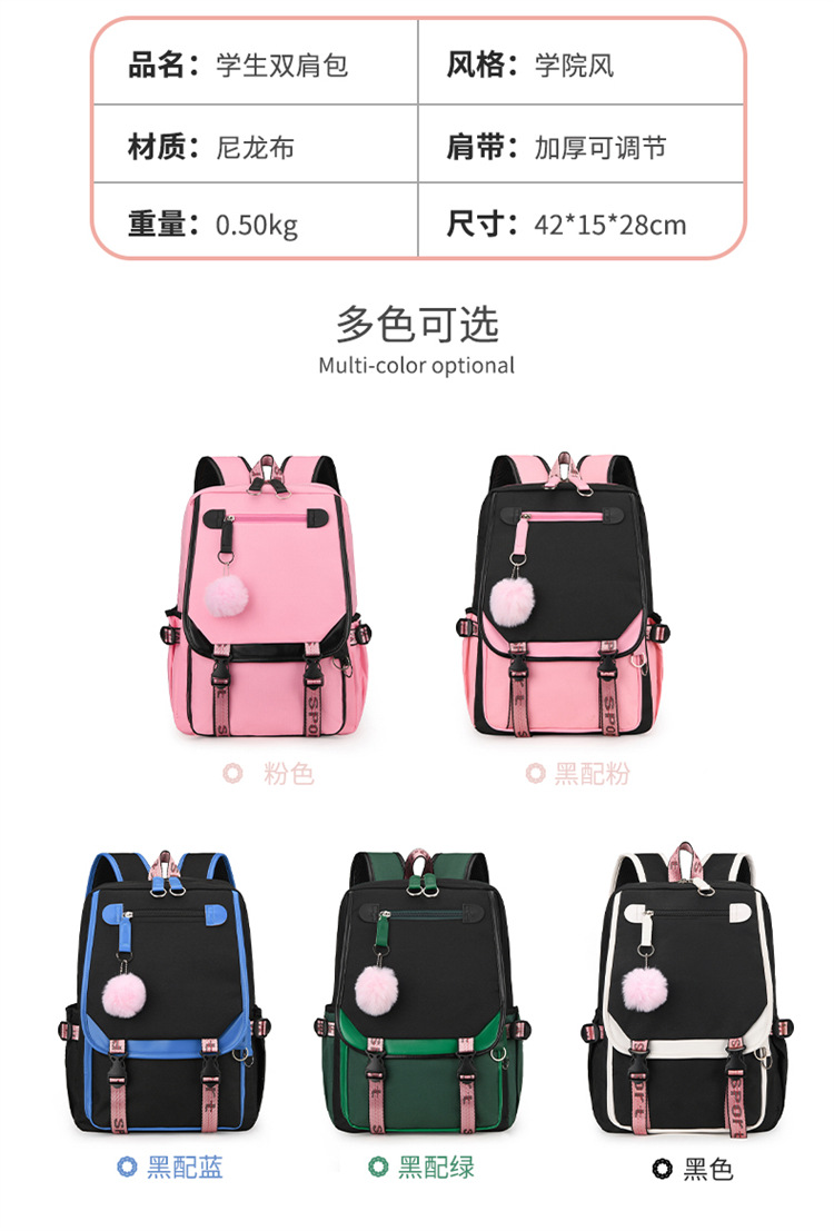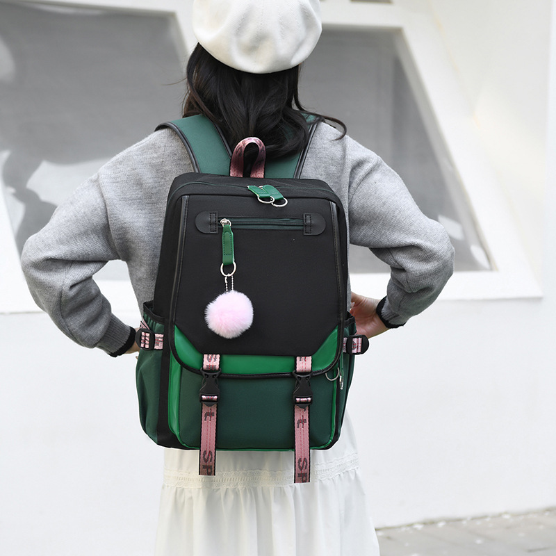 新款双肩包初中生背包撞色多口袋高女中学生超轻书包