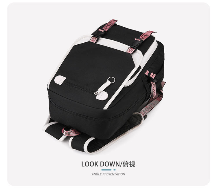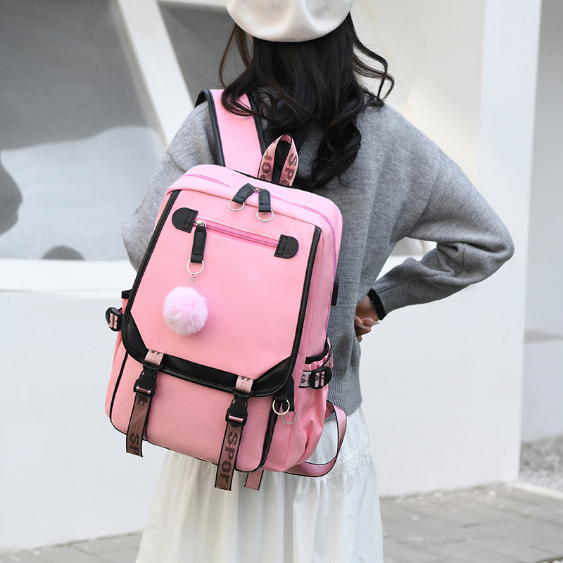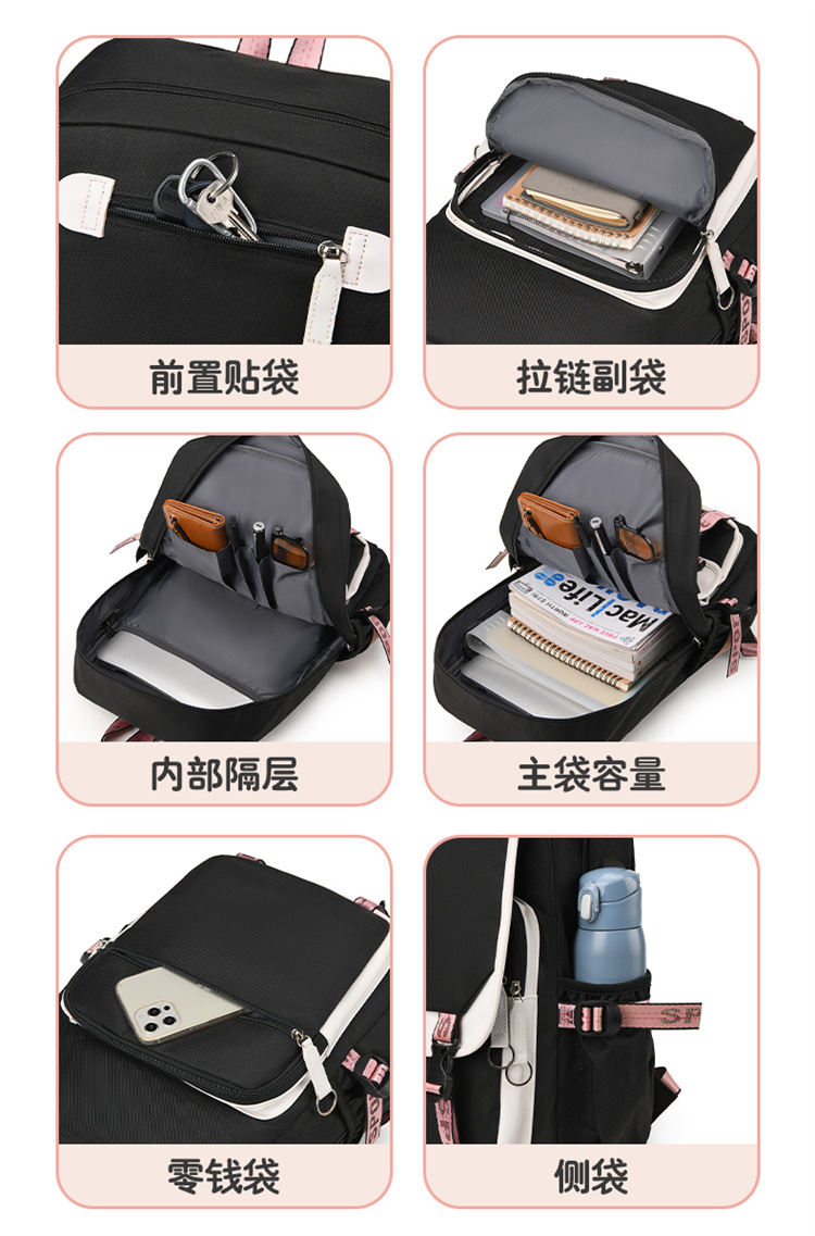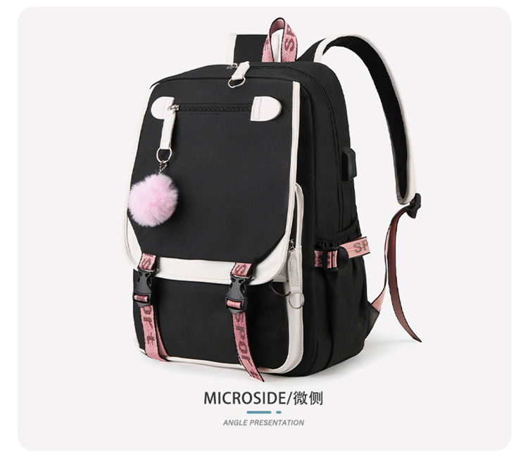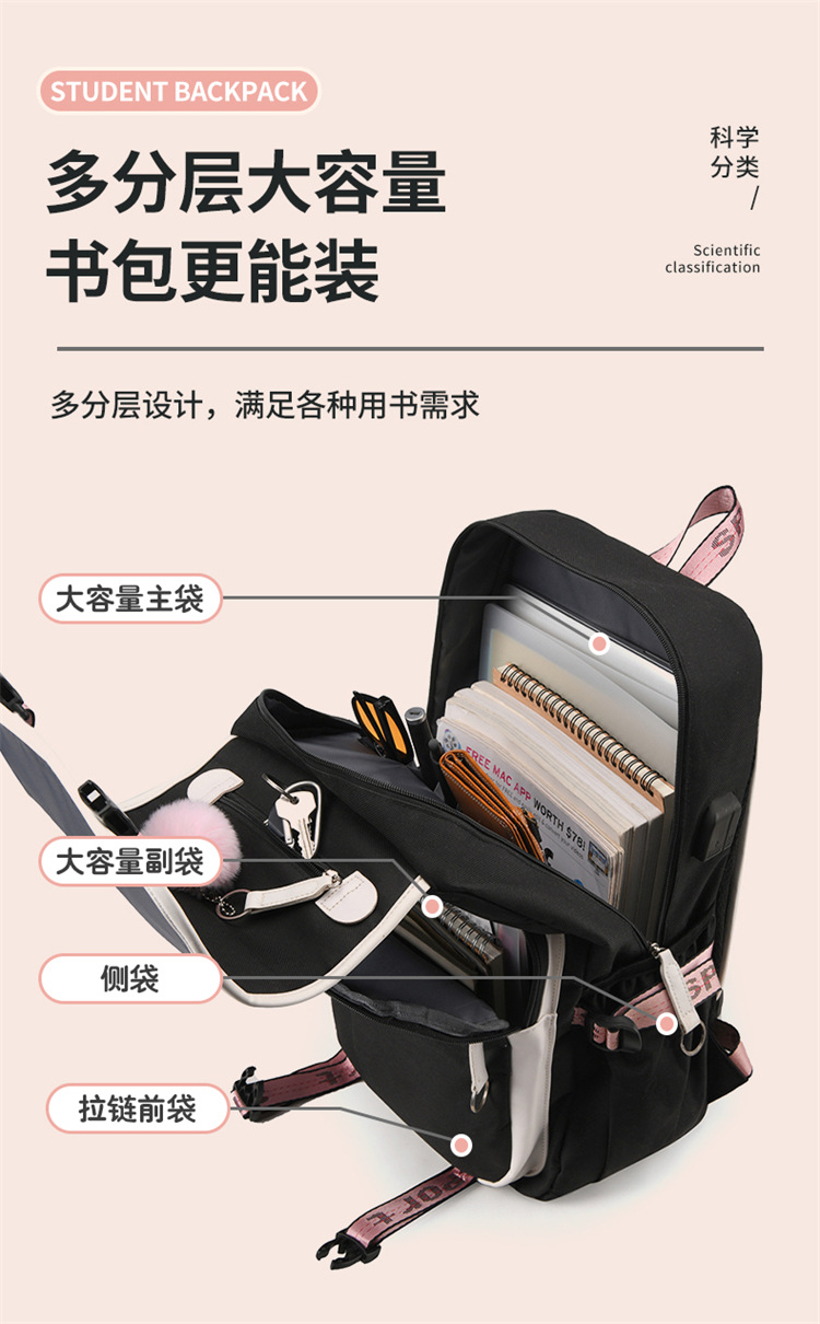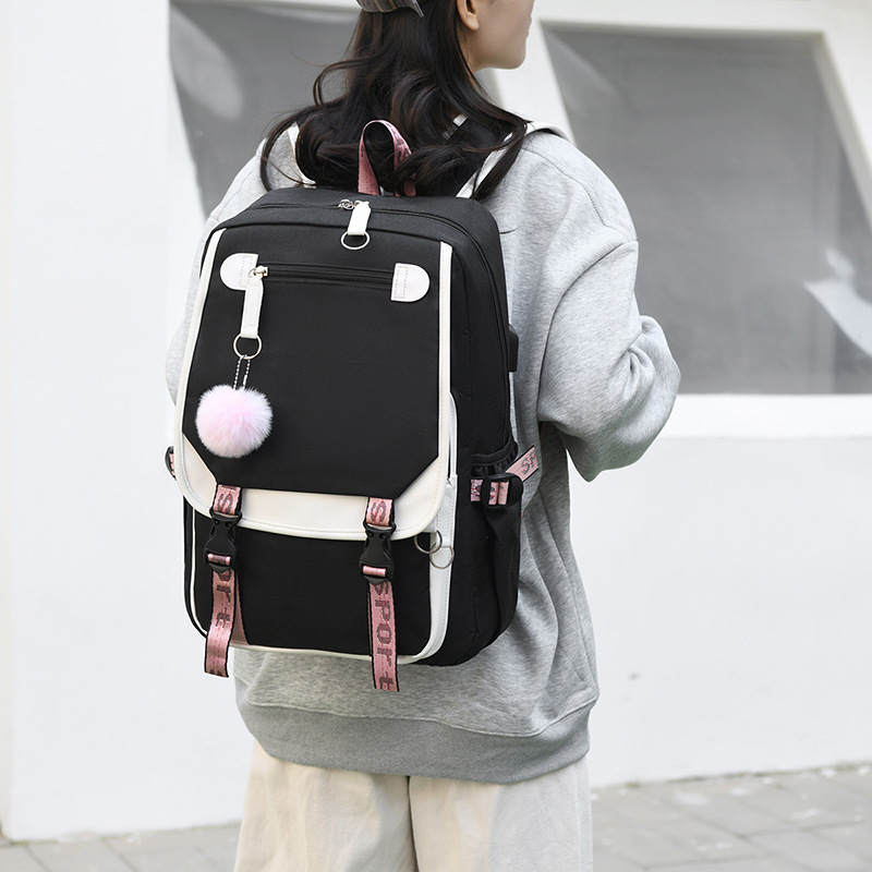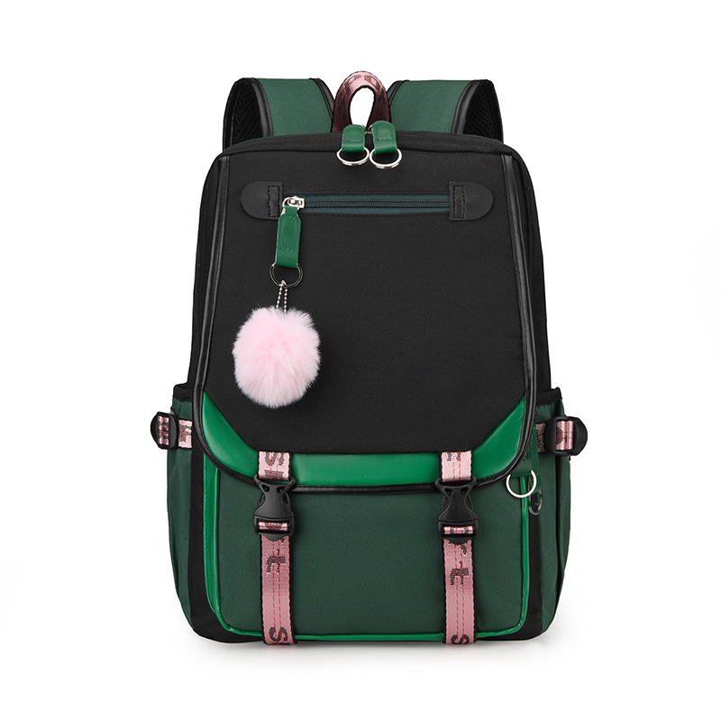 新款双肩包初中生背包撞色多口袋高女中学生超轻书包