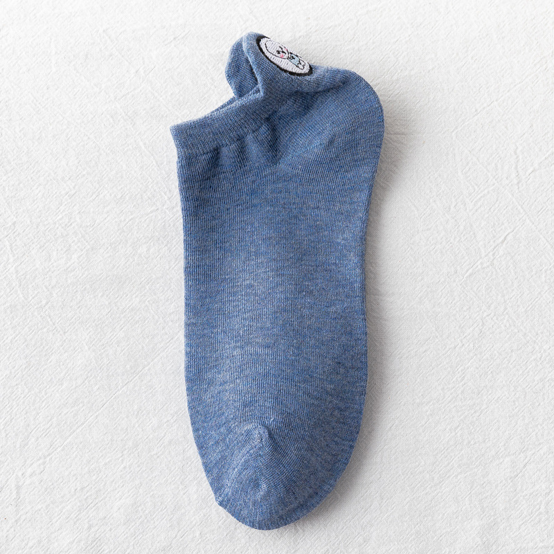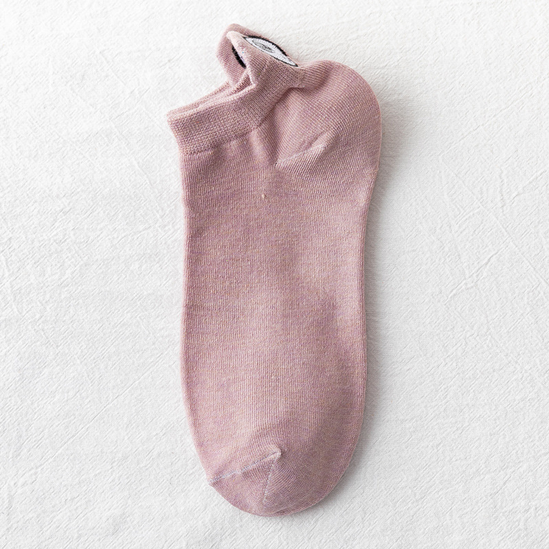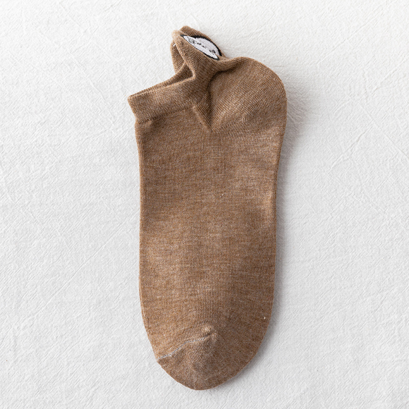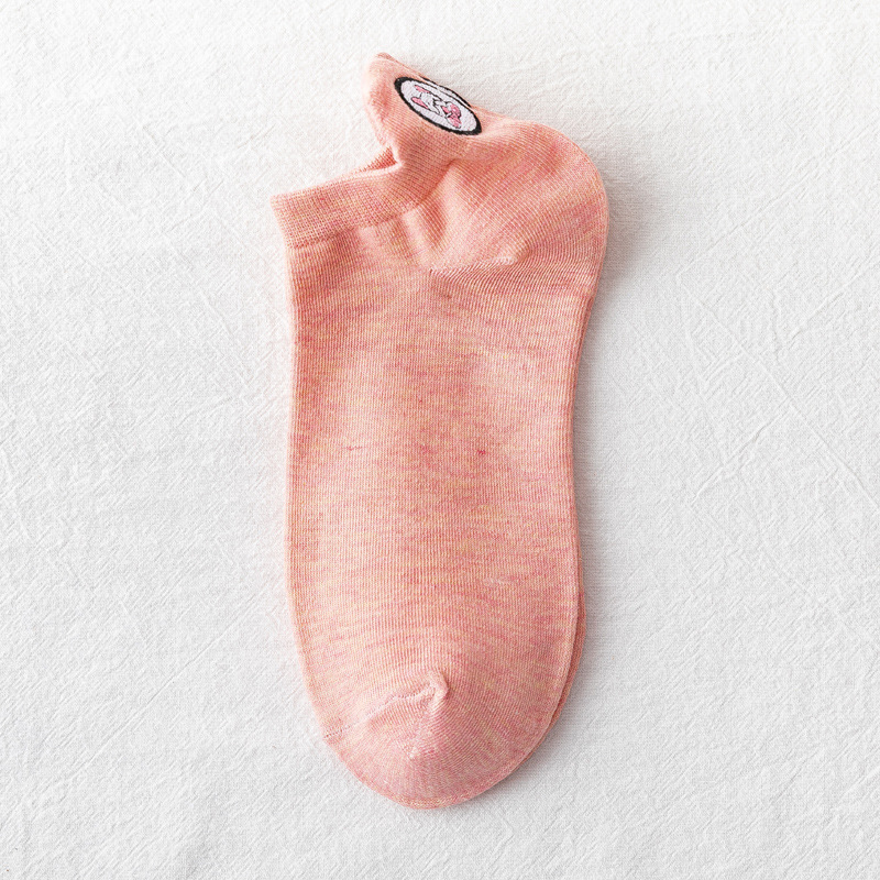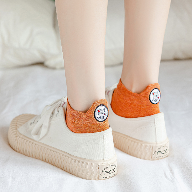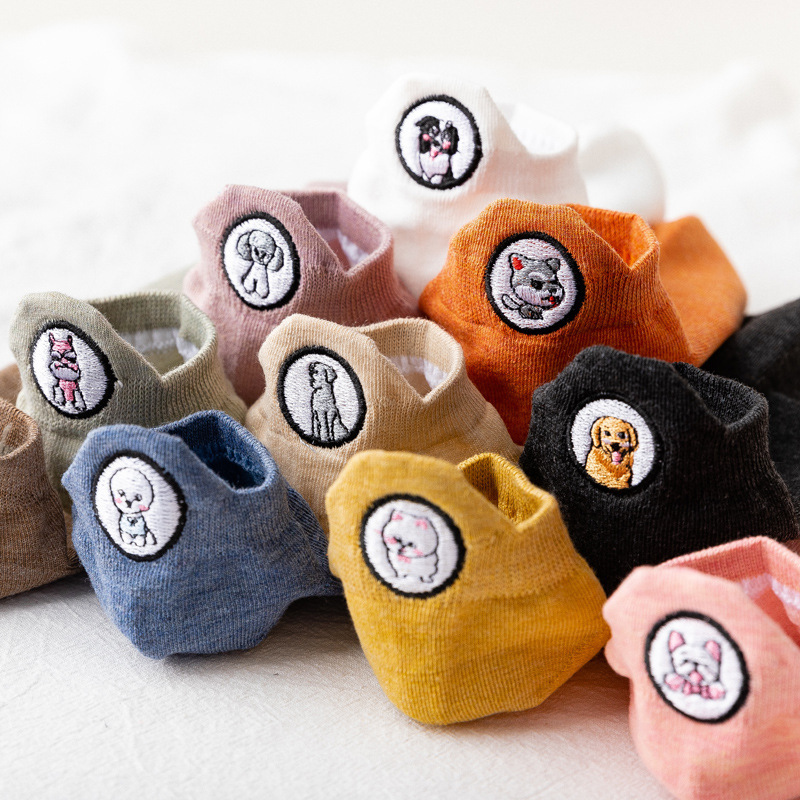 春夏新款袜子女 韩版糖果色刺绣卡通情侣袜后跟小狗低帮浅口船袜