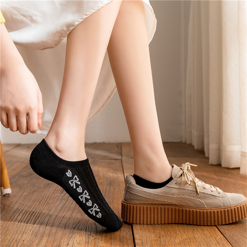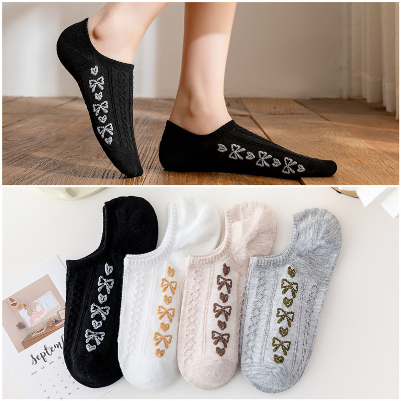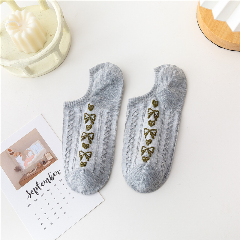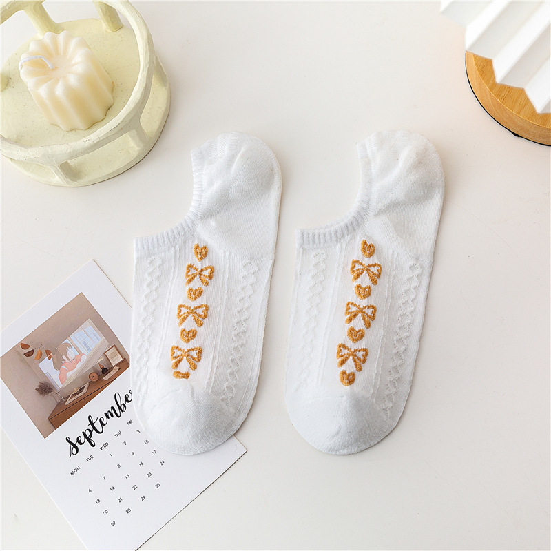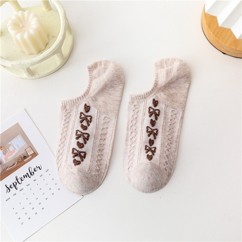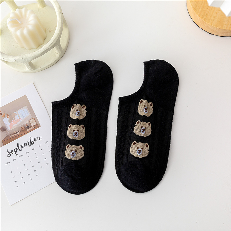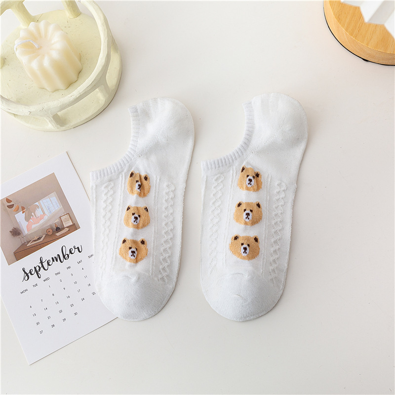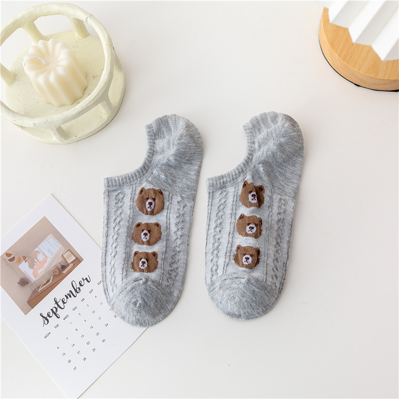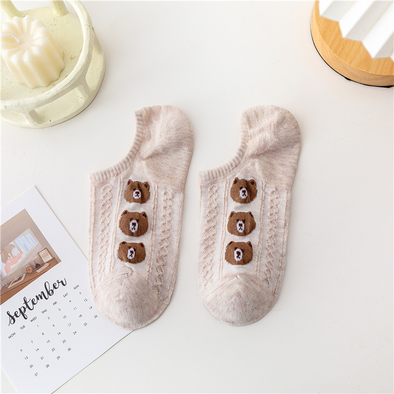 日系卡通小熊隐形袜春夏季立体麻花螺纹浅口船袜薄棉硅胶防脱袜套