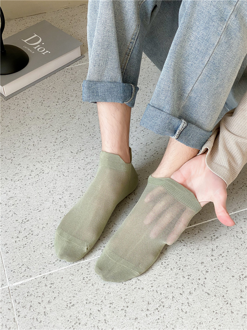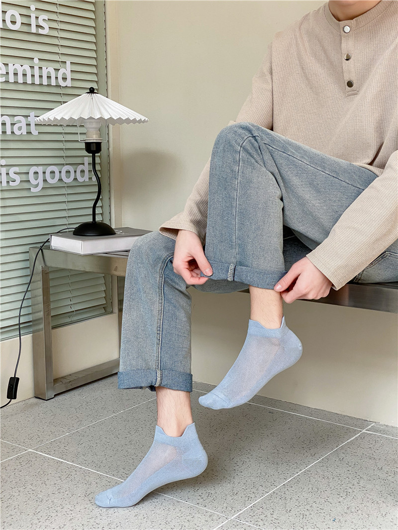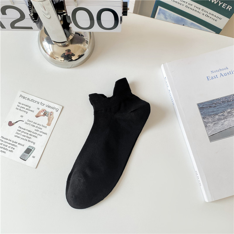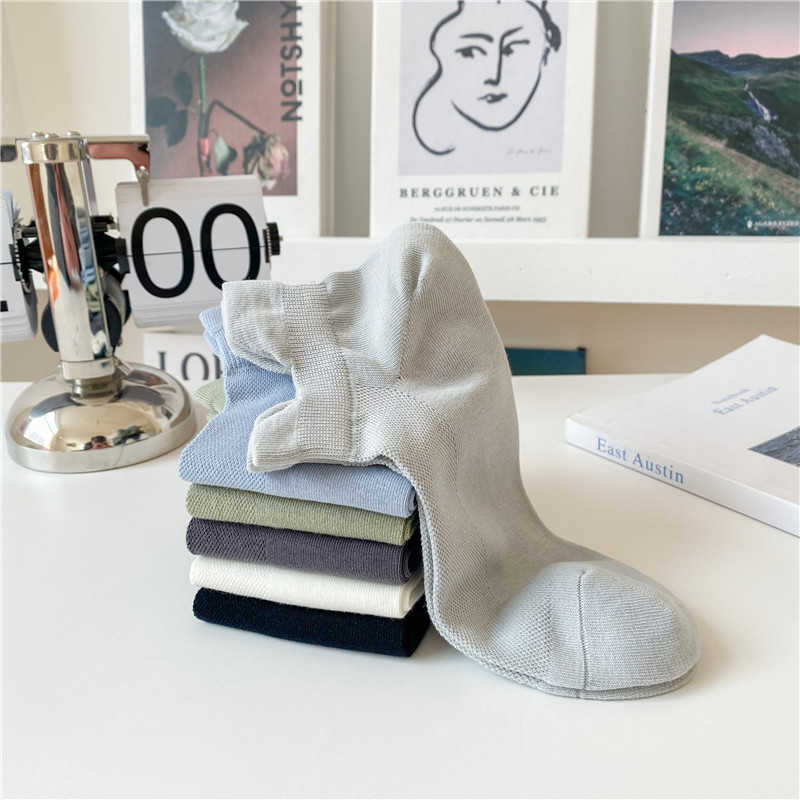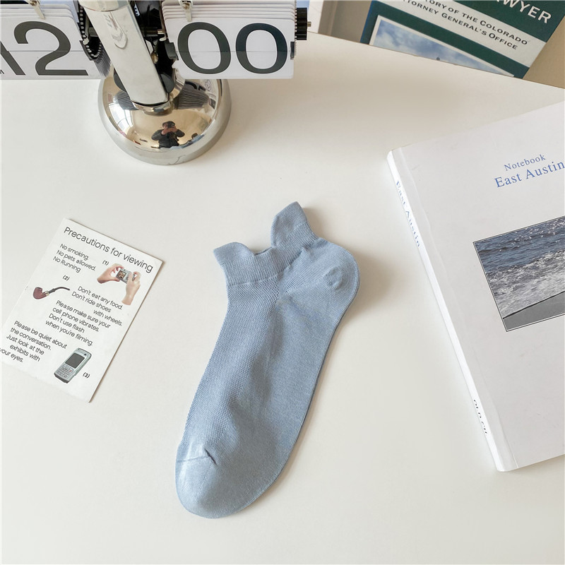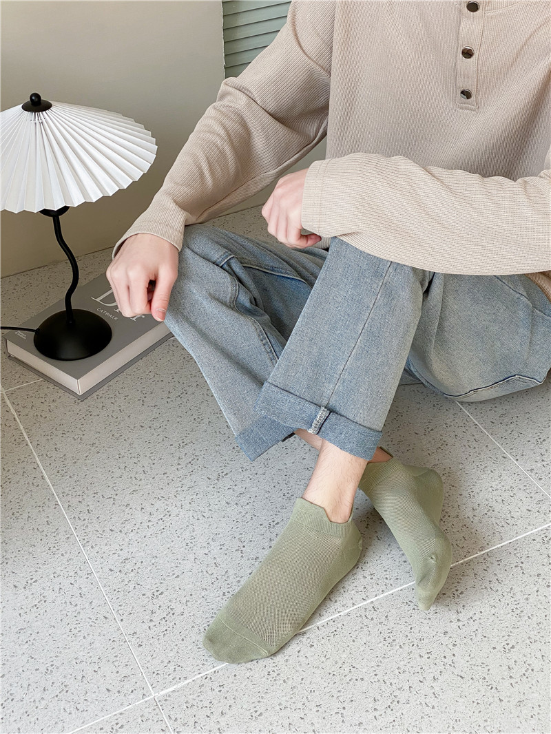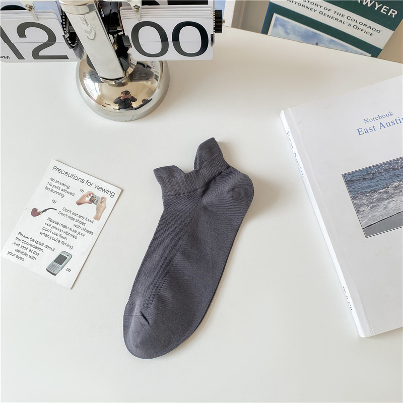 袜子男春夏双提耳船袜网眼男士短筒袜纯色简约黑白休闲袜船袜棉袜
