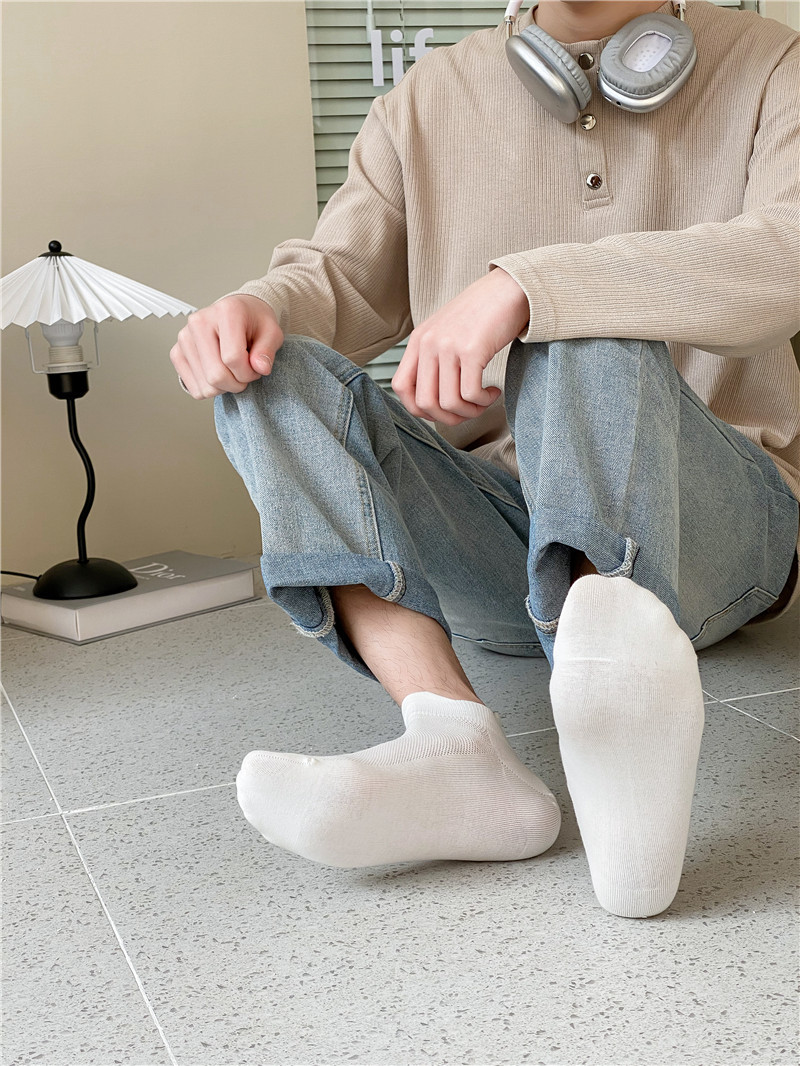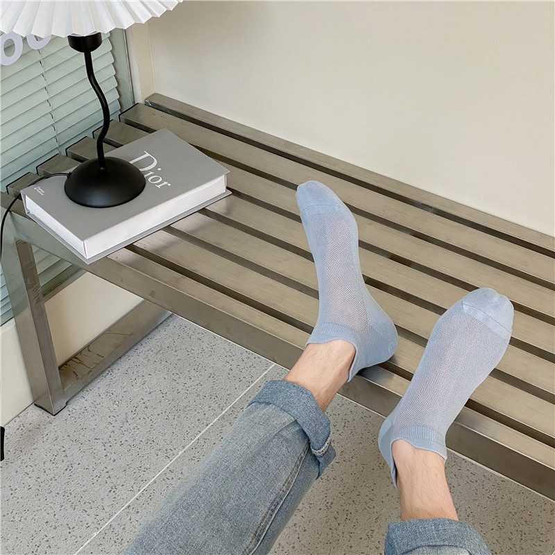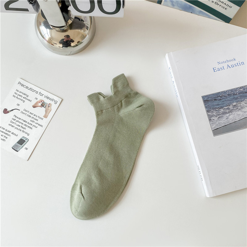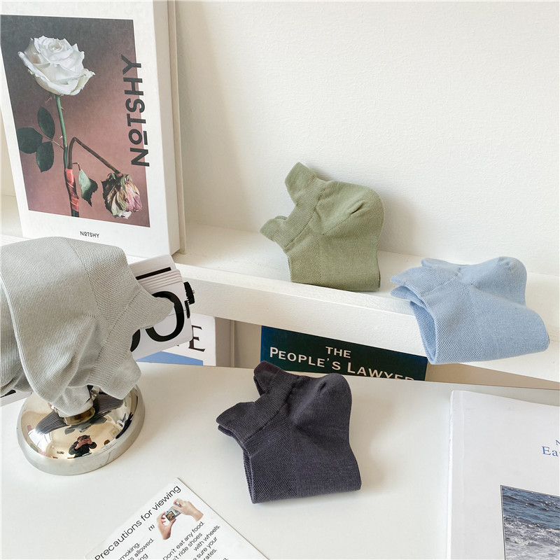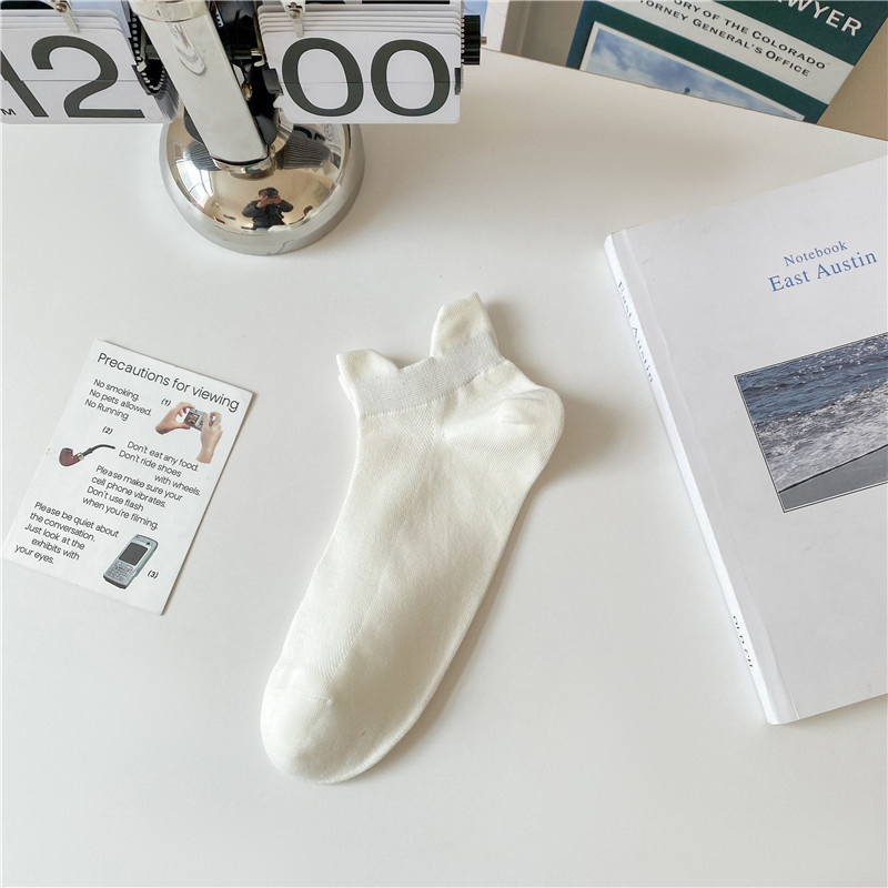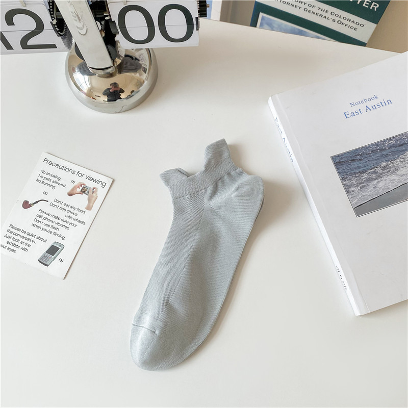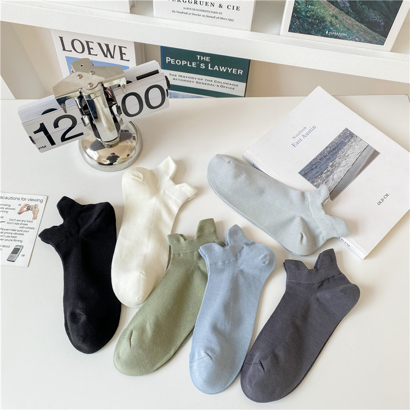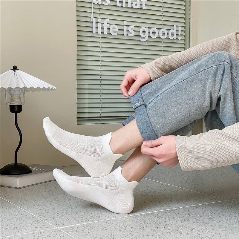 袜子男春夏双提耳船袜网眼男士短筒袜纯色简约黑白休闲袜船袜棉袜