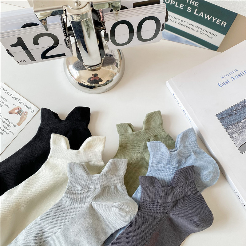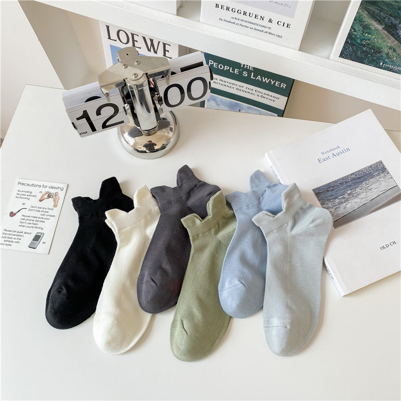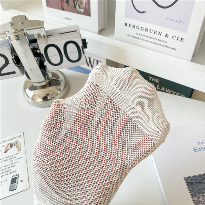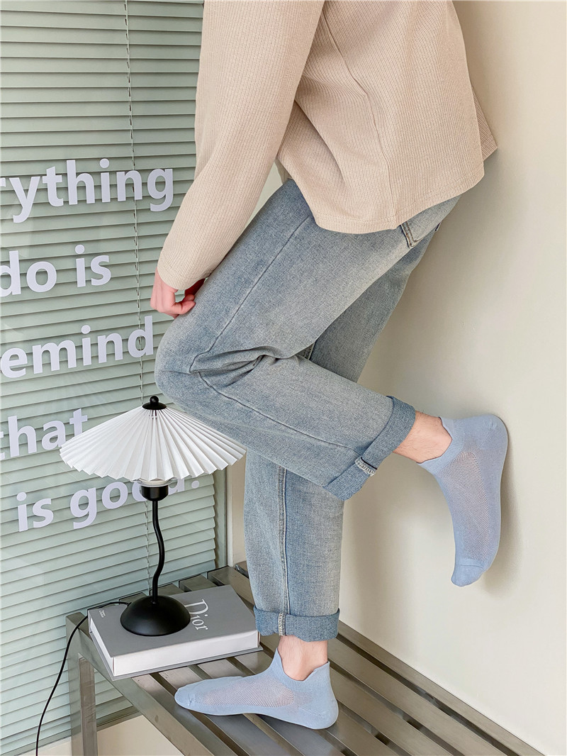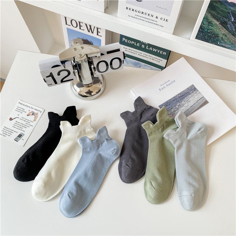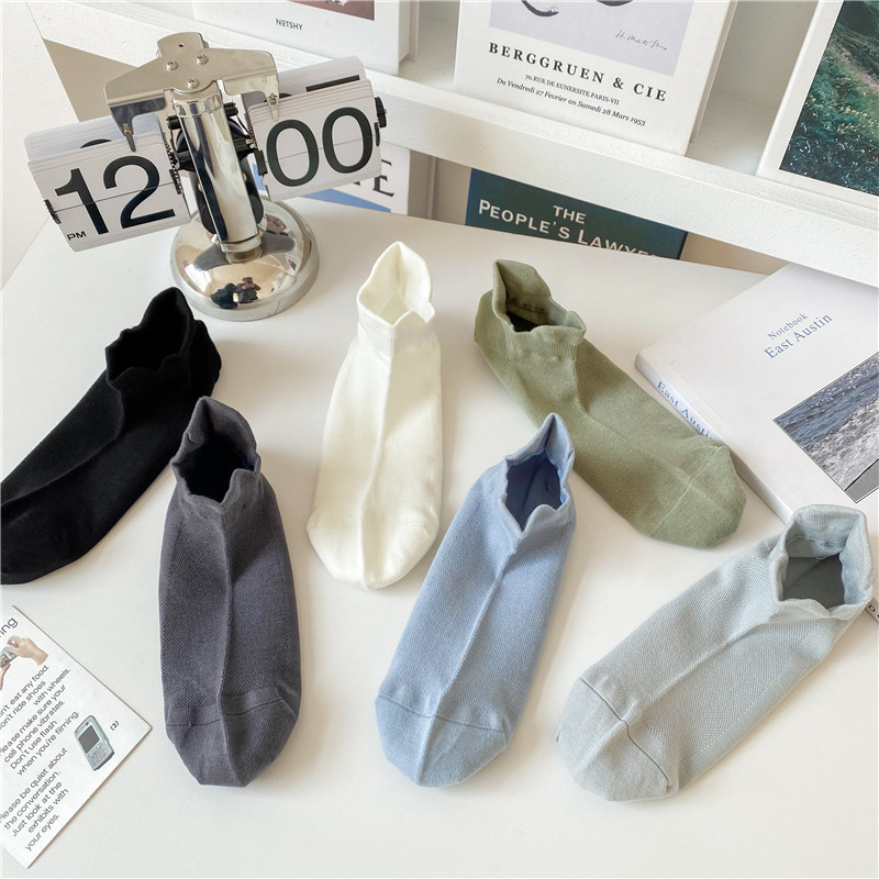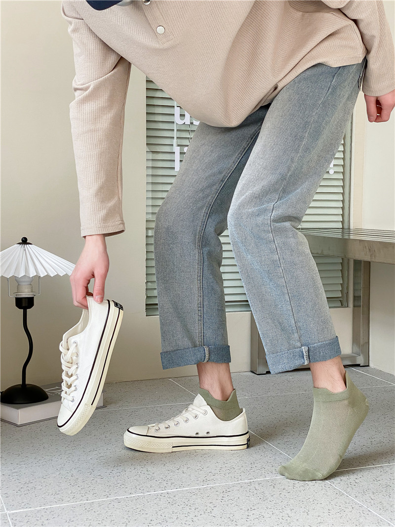 袜子男春夏双提耳船袜网眼男士短筒袜纯色简约黑白休闲袜船袜棉袜
