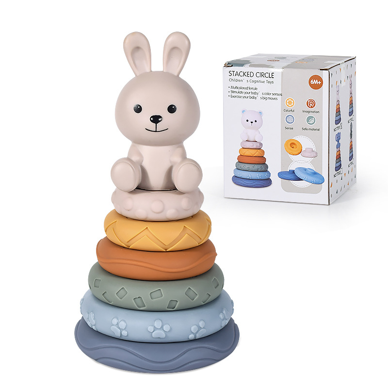 跨境婴幼儿早教软胶方块彩虹圈六层叠叠乐捏捏叫宝宝牙胶儿童玩具