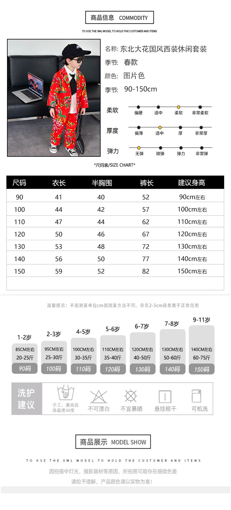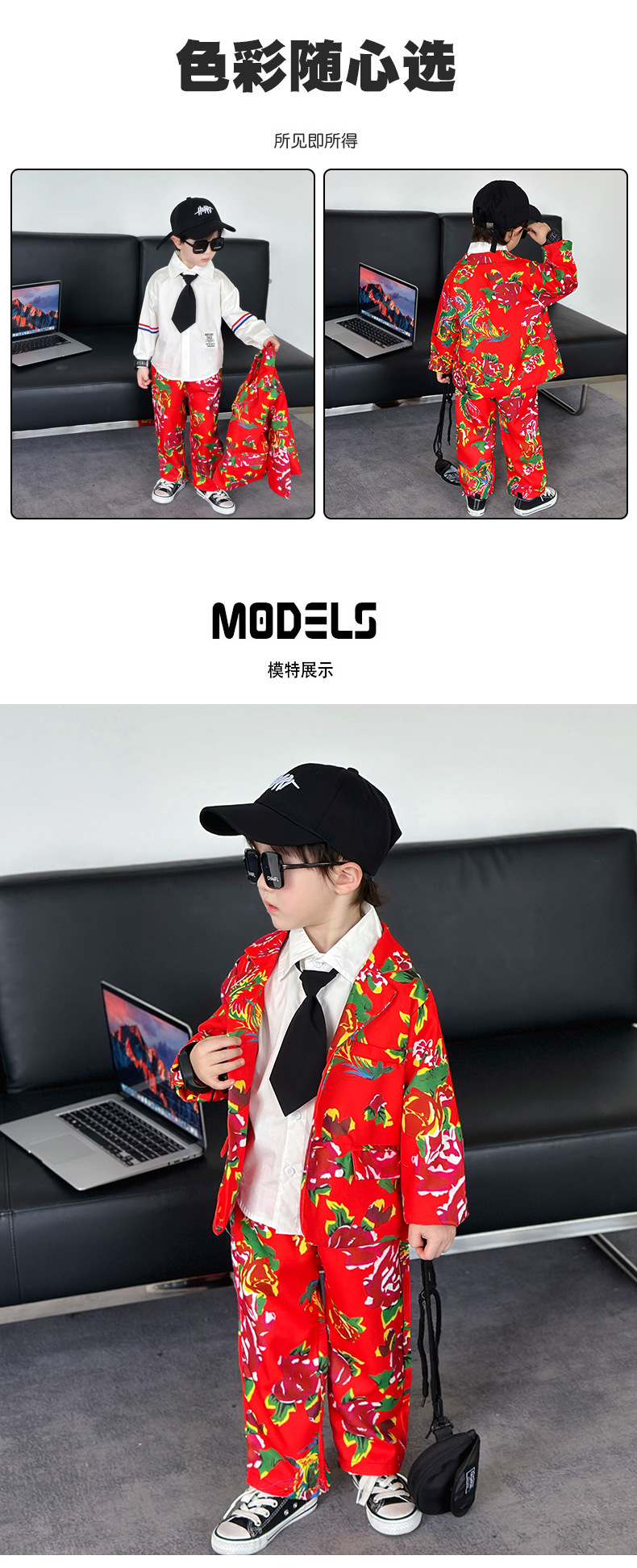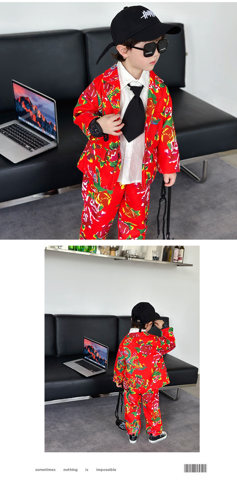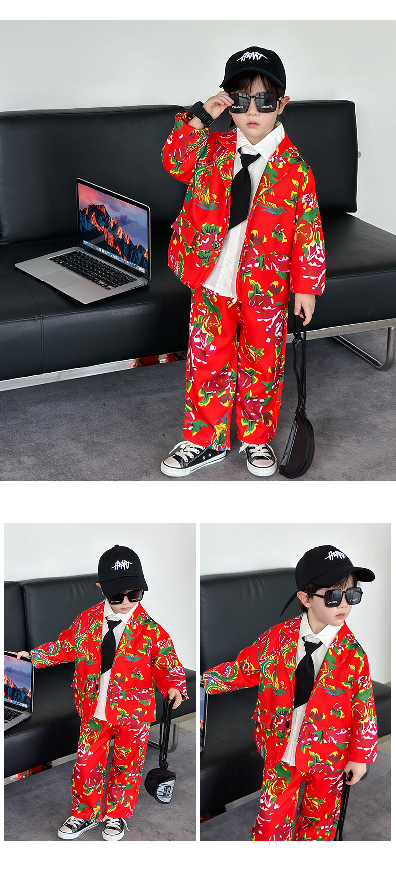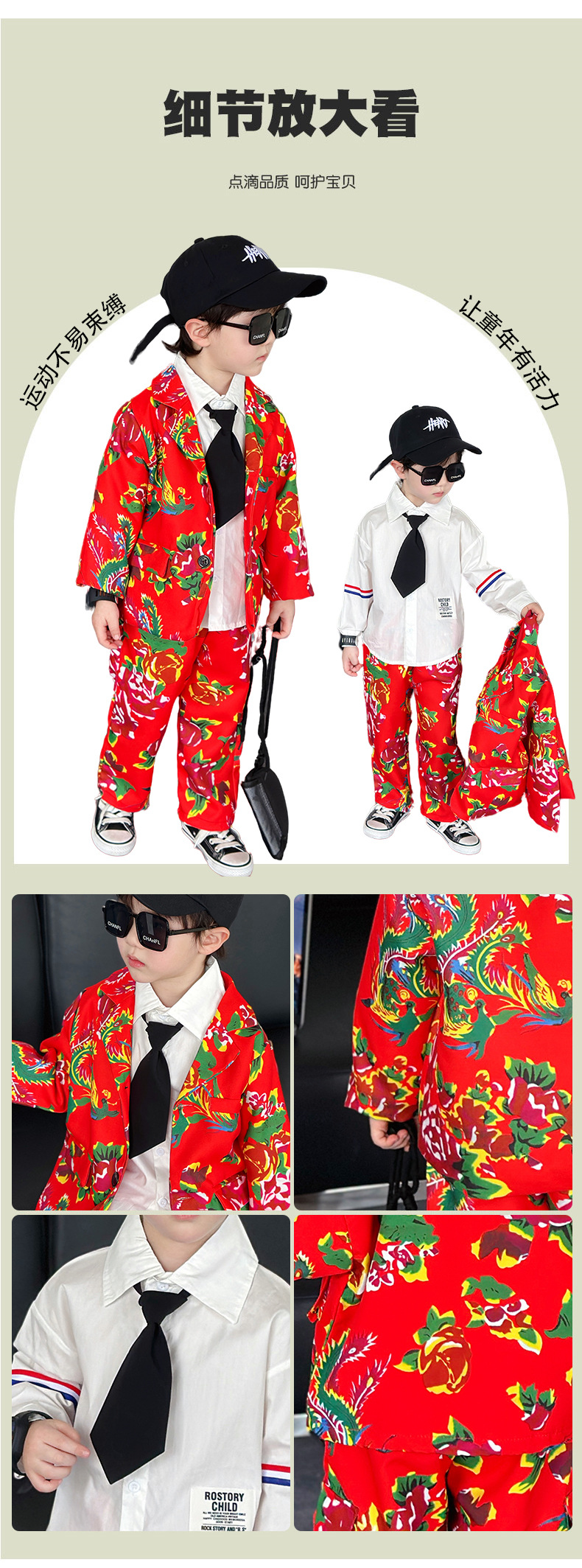 男童西装套装春秋帅气男孩休息西服小童痞帅礼服时髦儿童东北大花