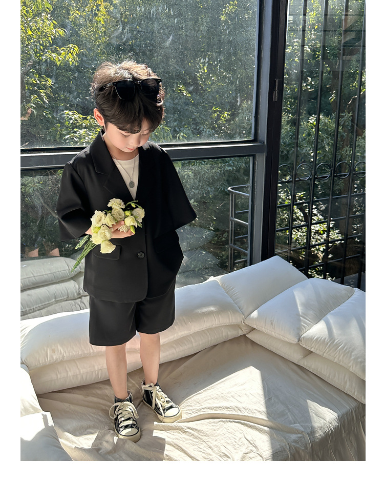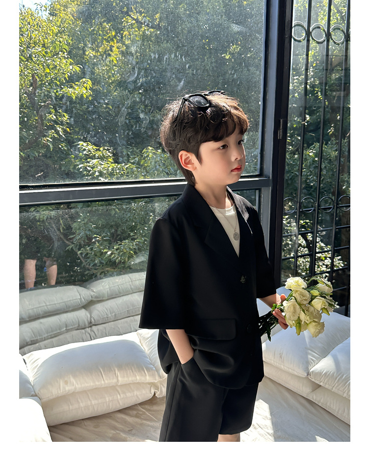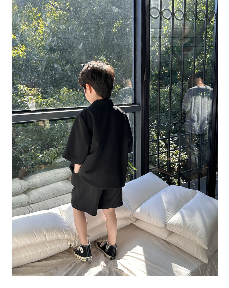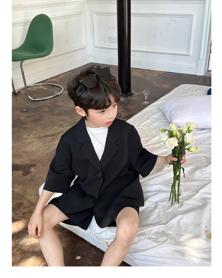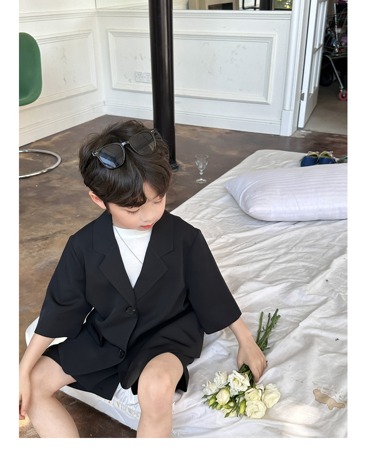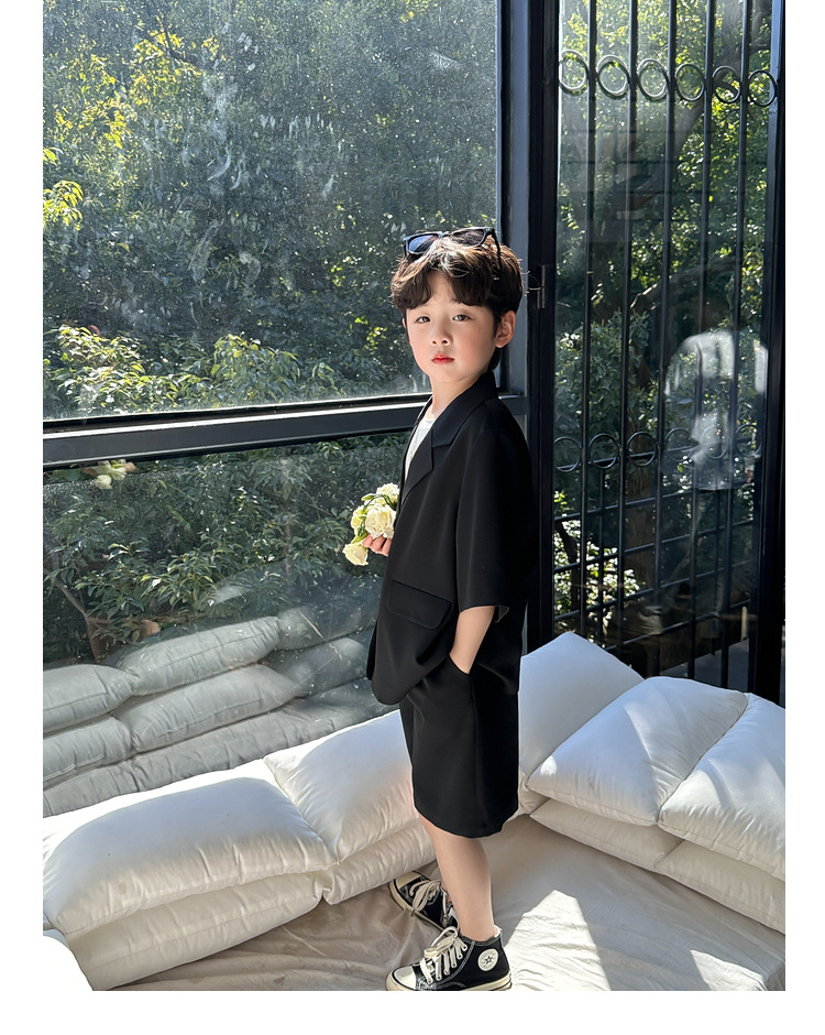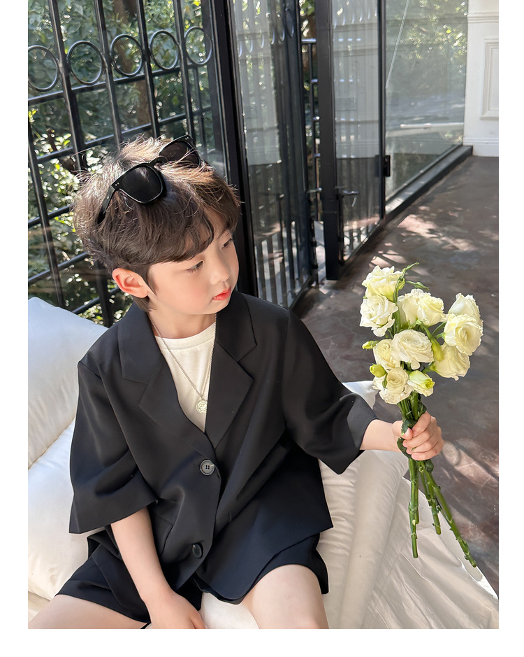 男童夏季西装两件套新品宽松休闲男孩韩版儿童短袖短裤透气三件套