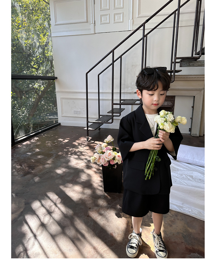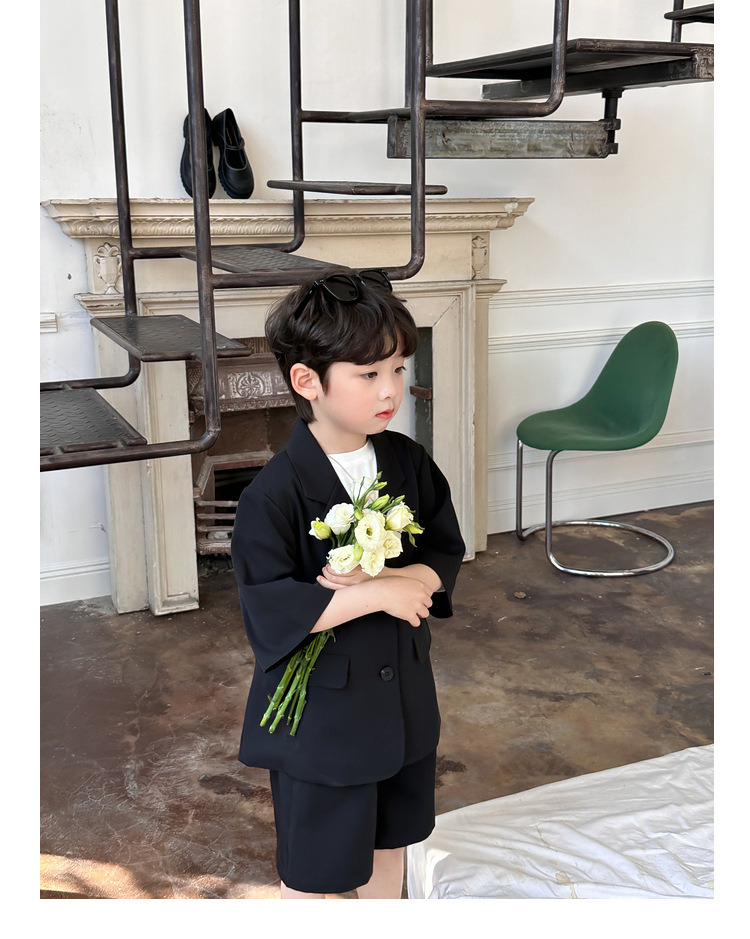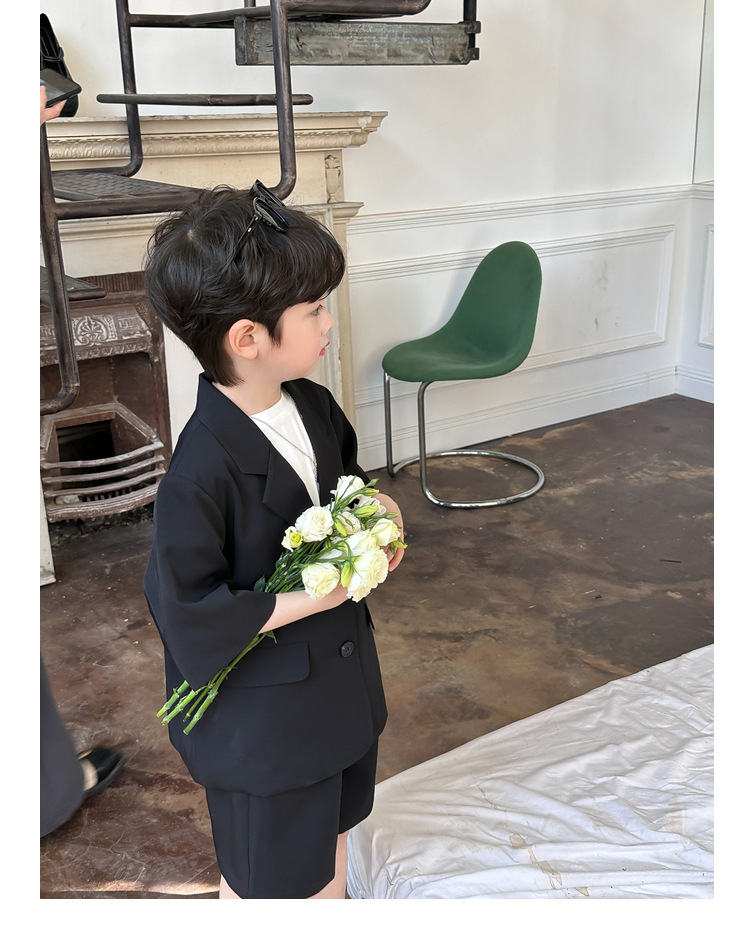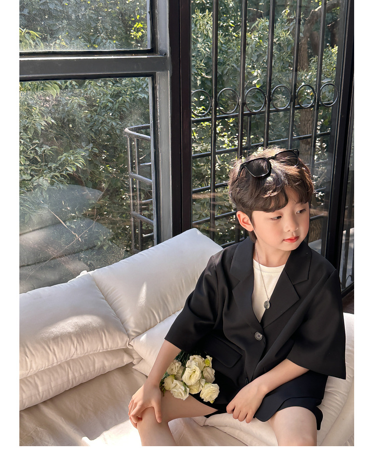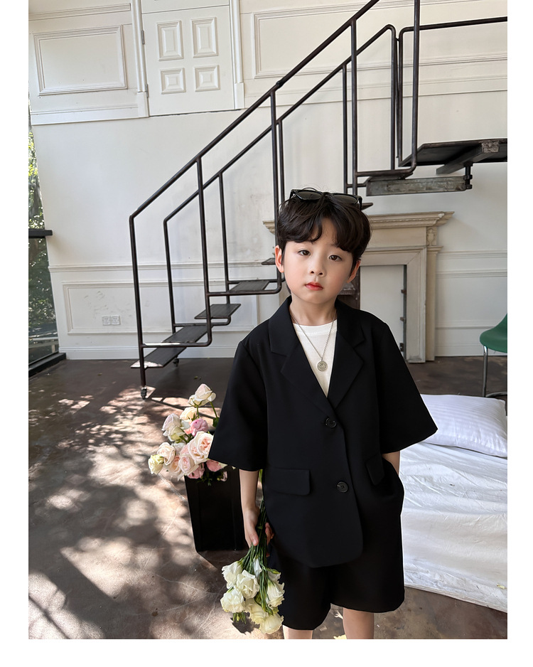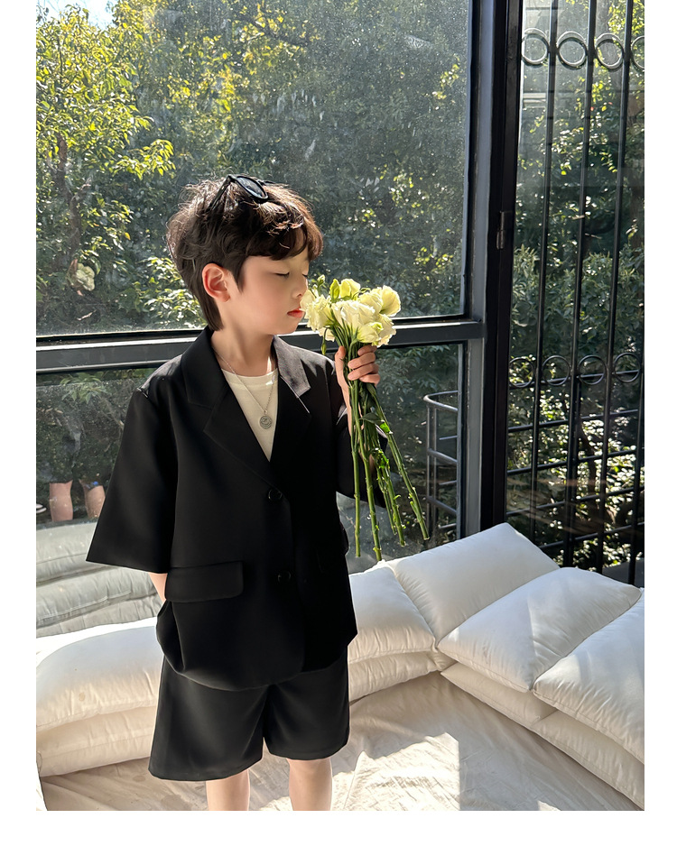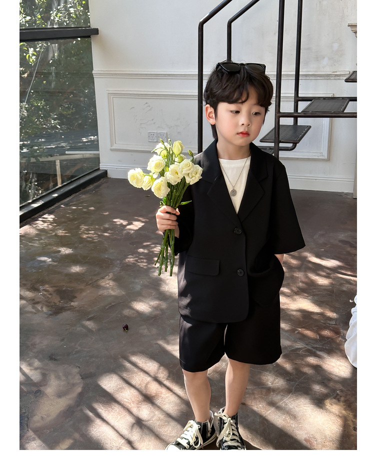 男童夏季西装两件套新品宽松休闲男孩韩版儿童短袖短裤透气三件套