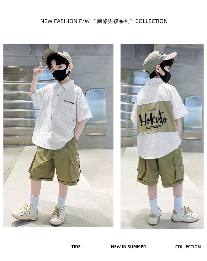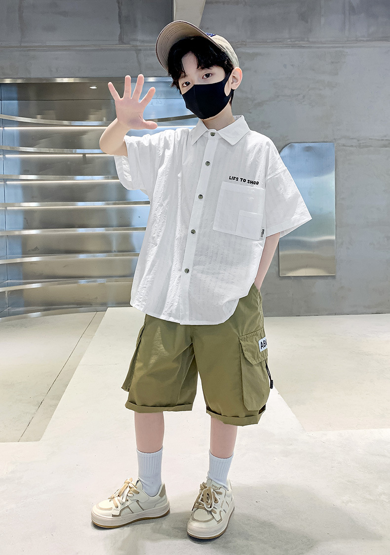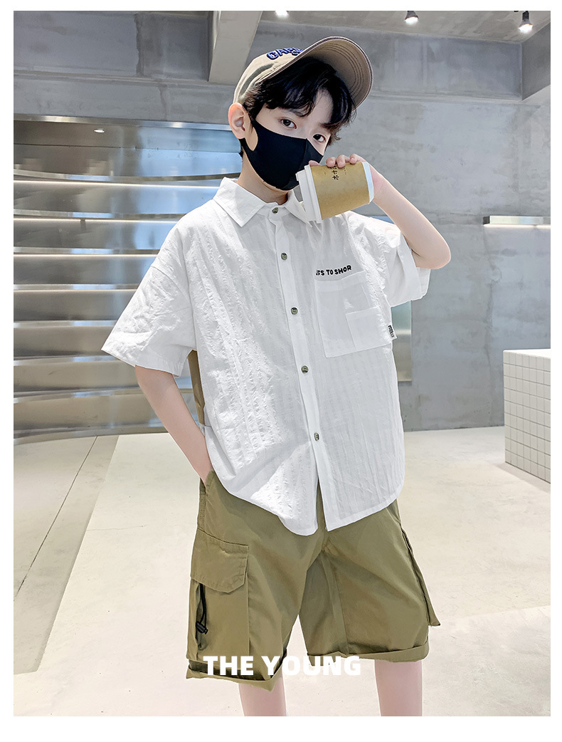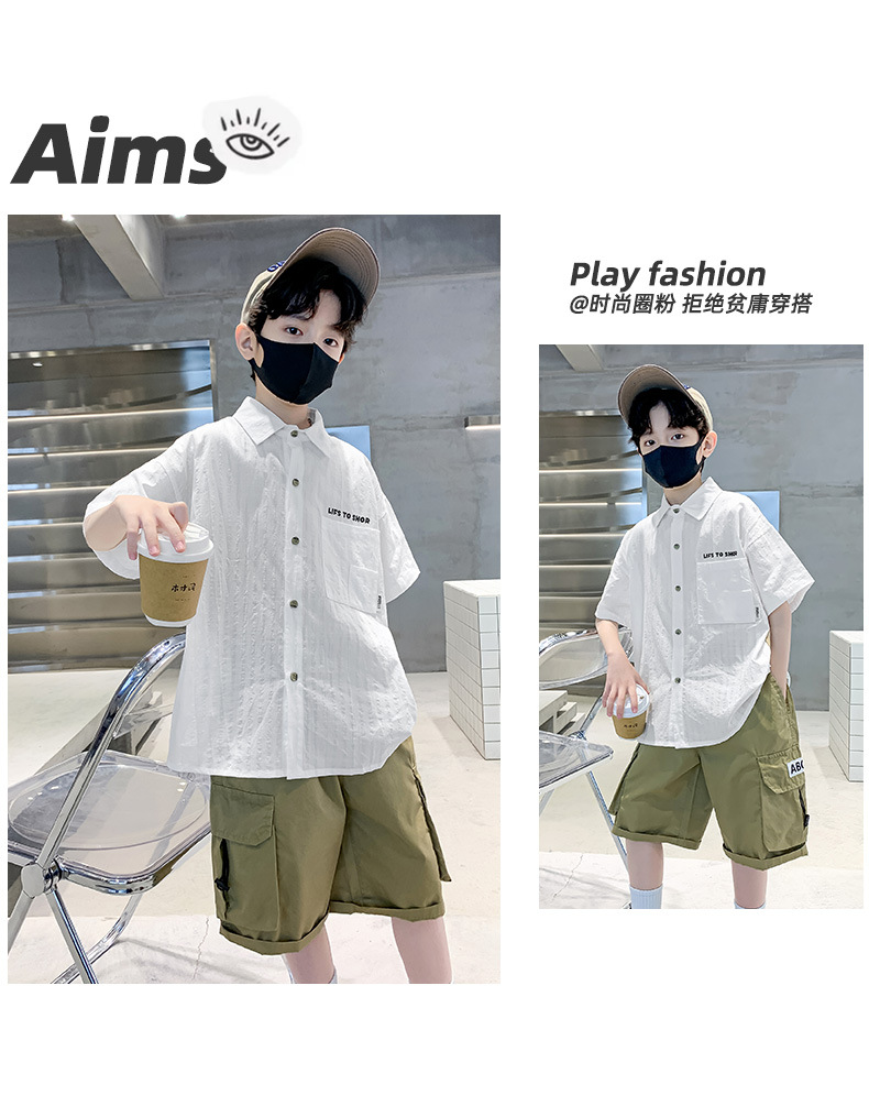 男童夏季衬衫套装2024新款中大童薄款短袖衬衣男孩儿童夏装两件套