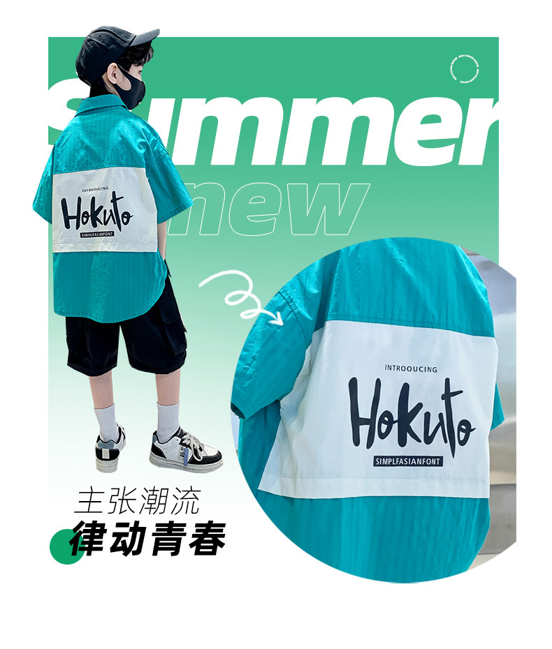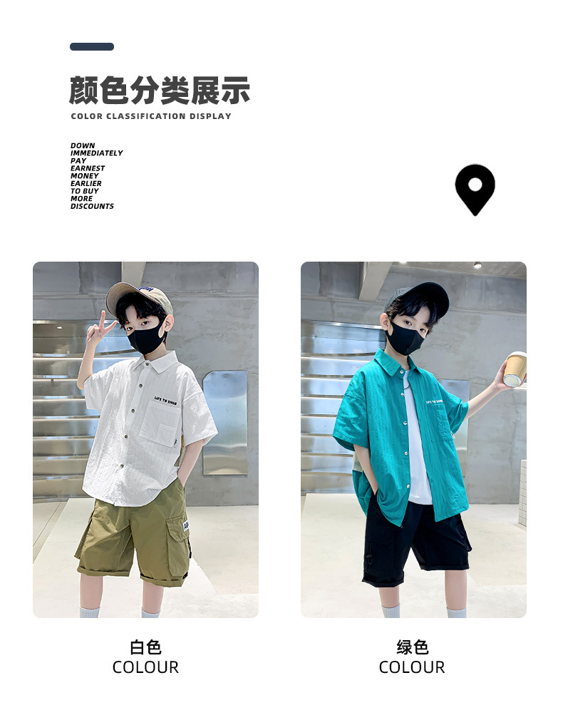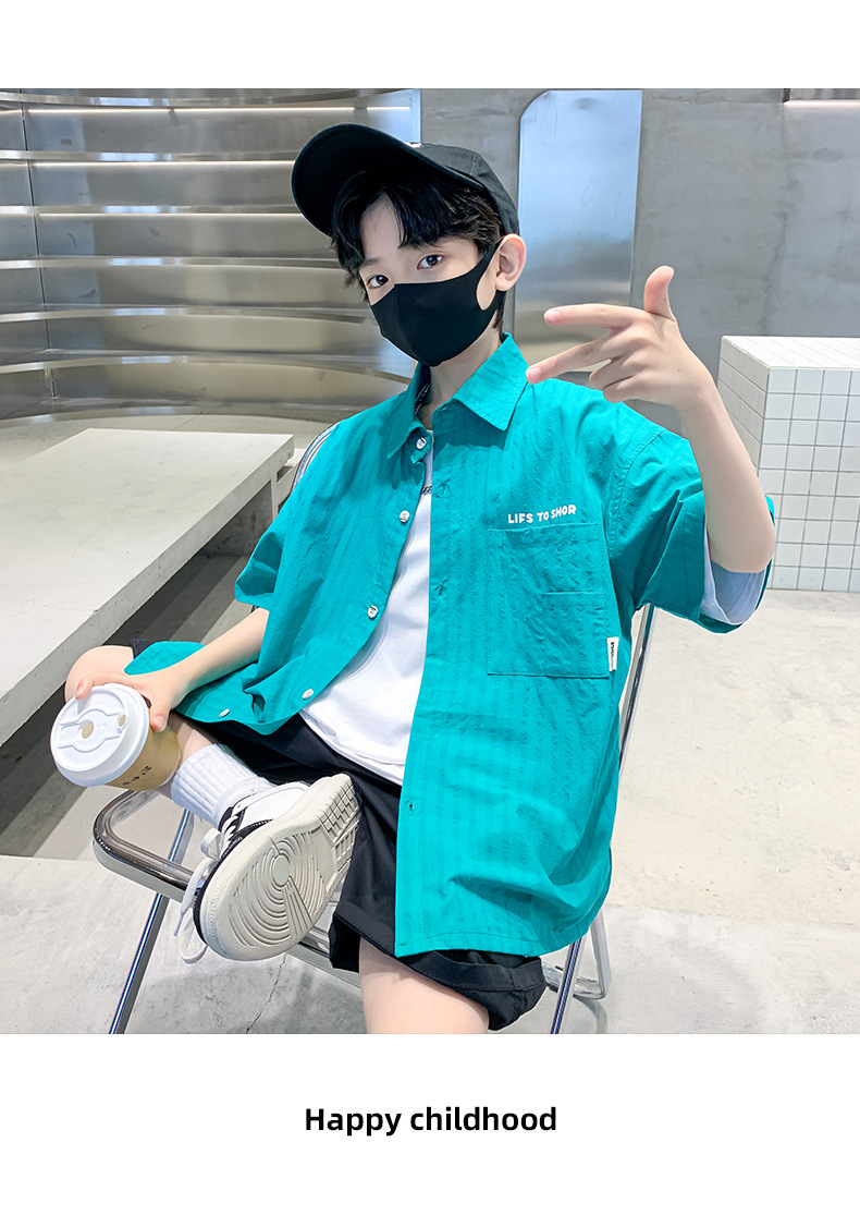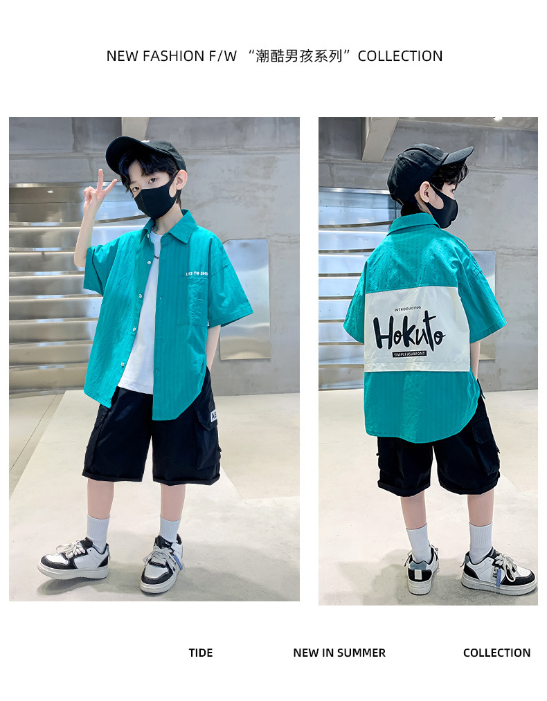 男童夏季衬衫套装2024新款中大童薄款短袖衬衣男孩儿童夏装两件套