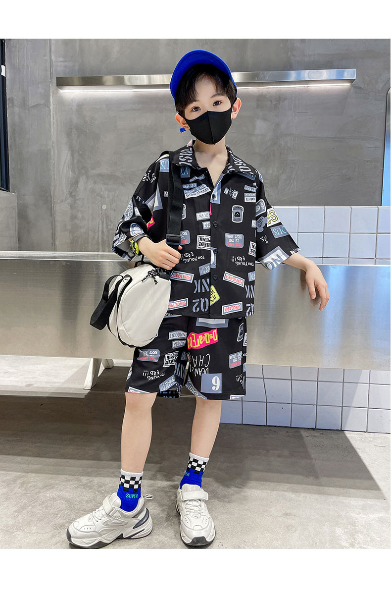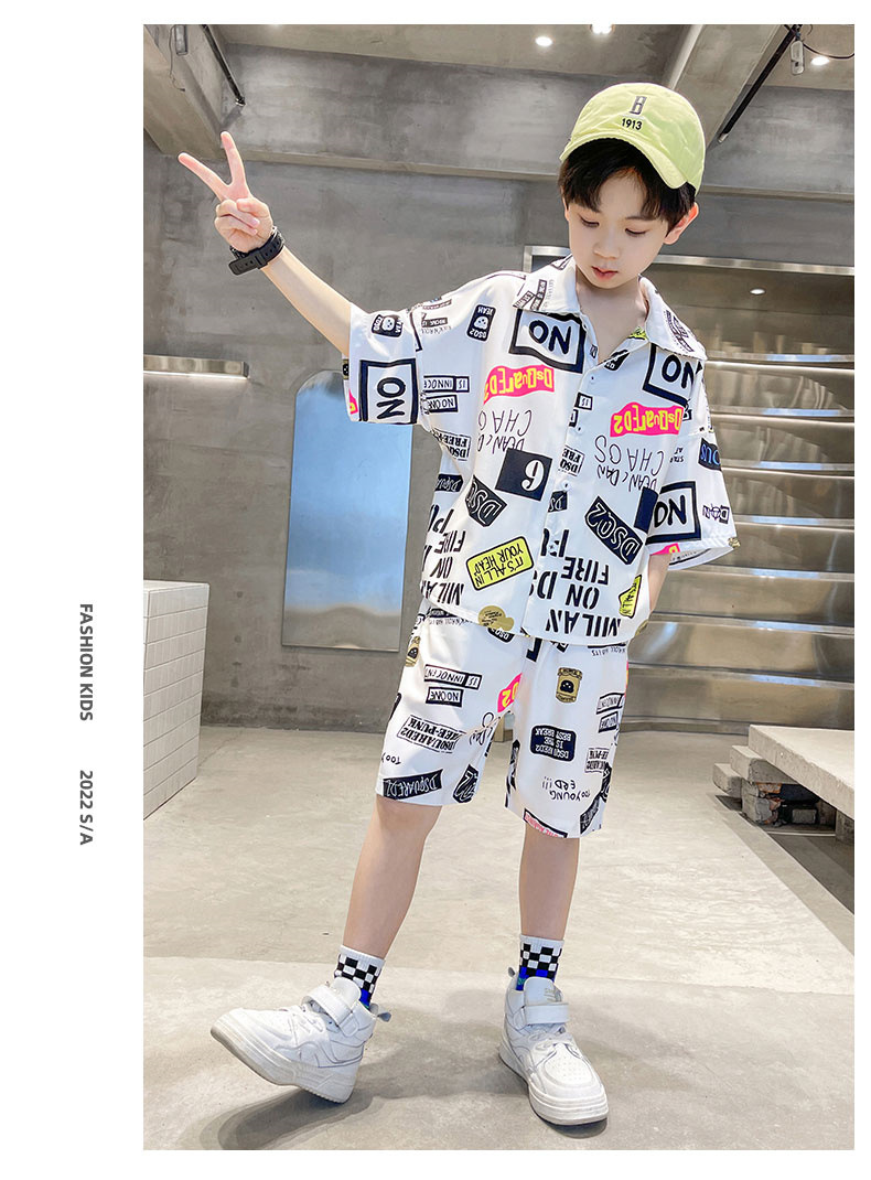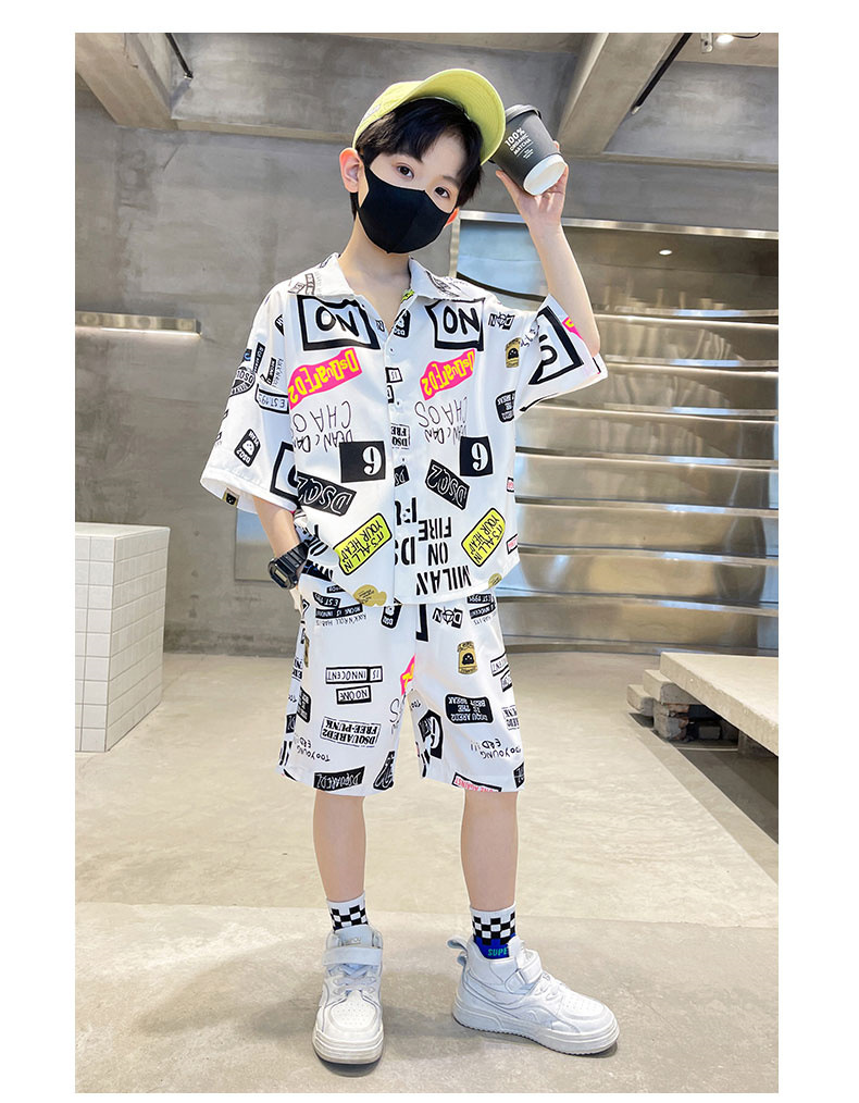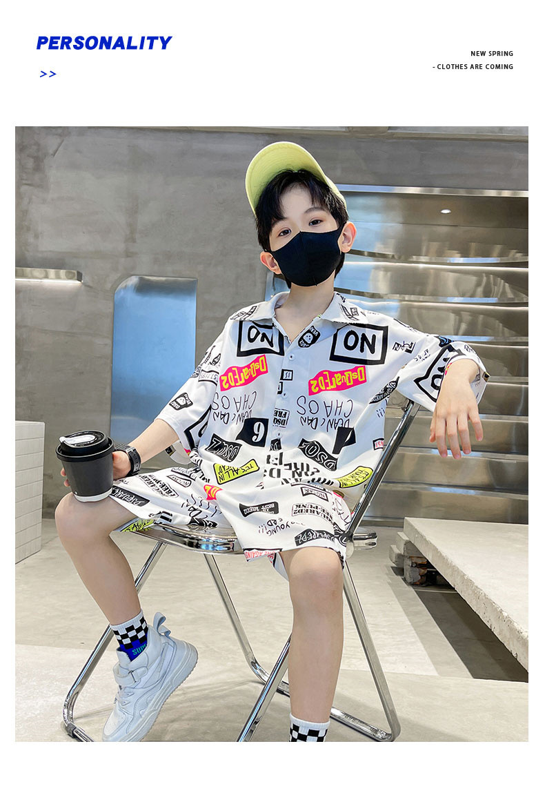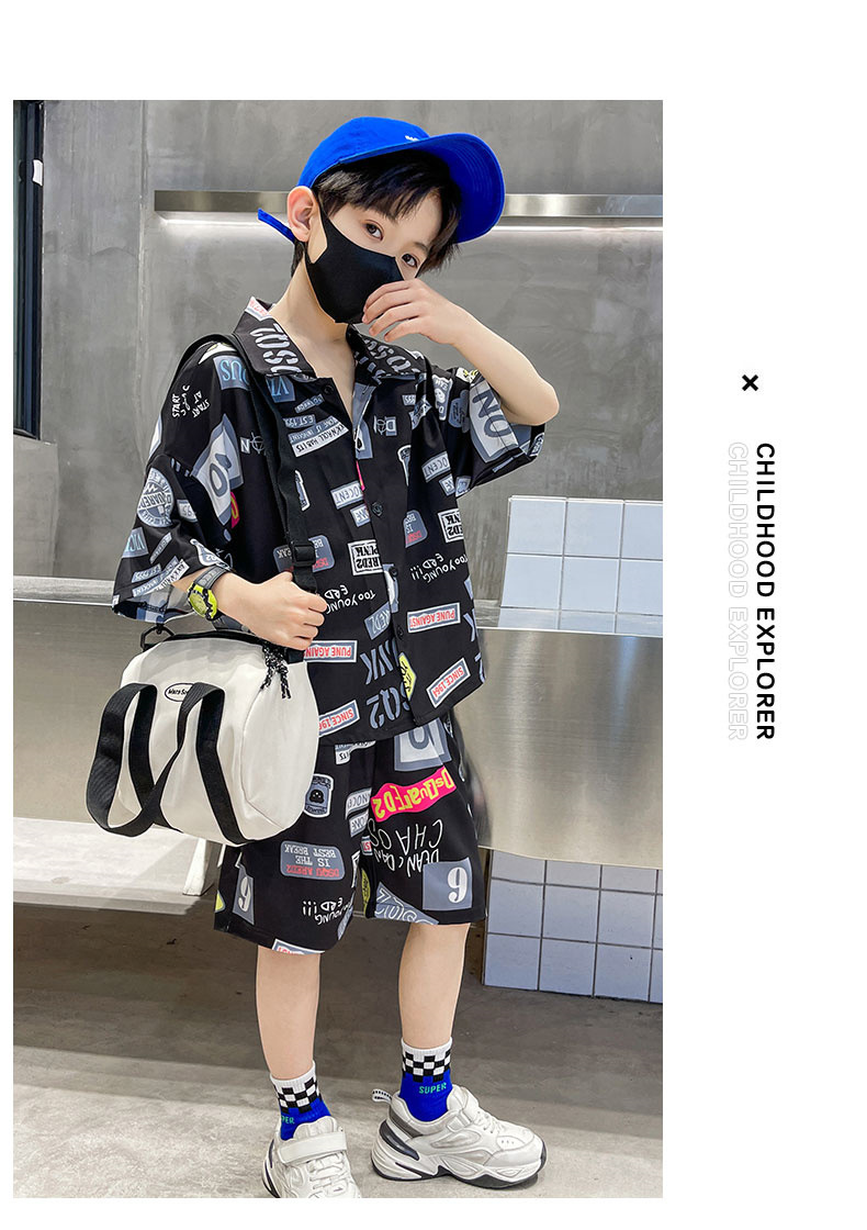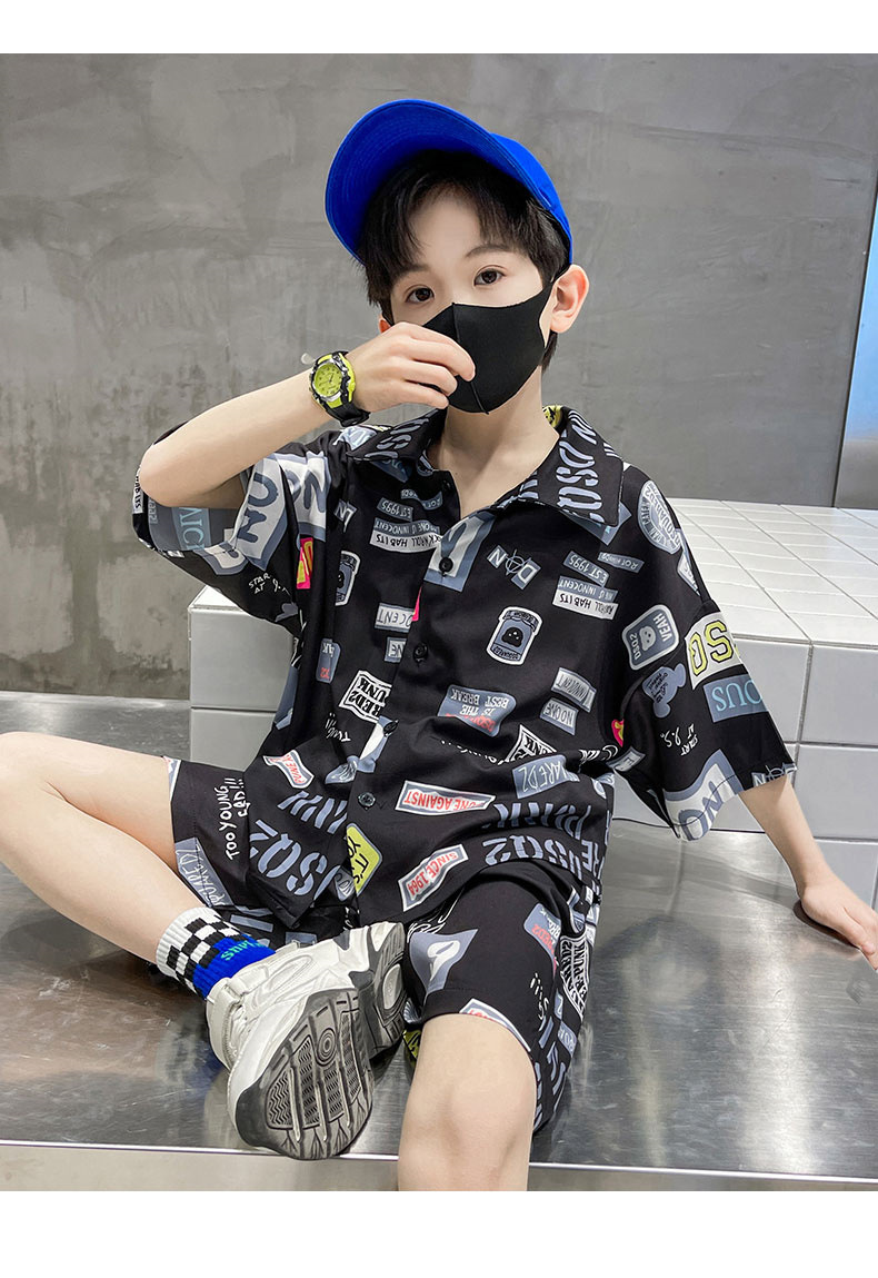 儿童夏装男童洋气短袖衬衫套装2024新款中大童夏季帅气时髦两件套
