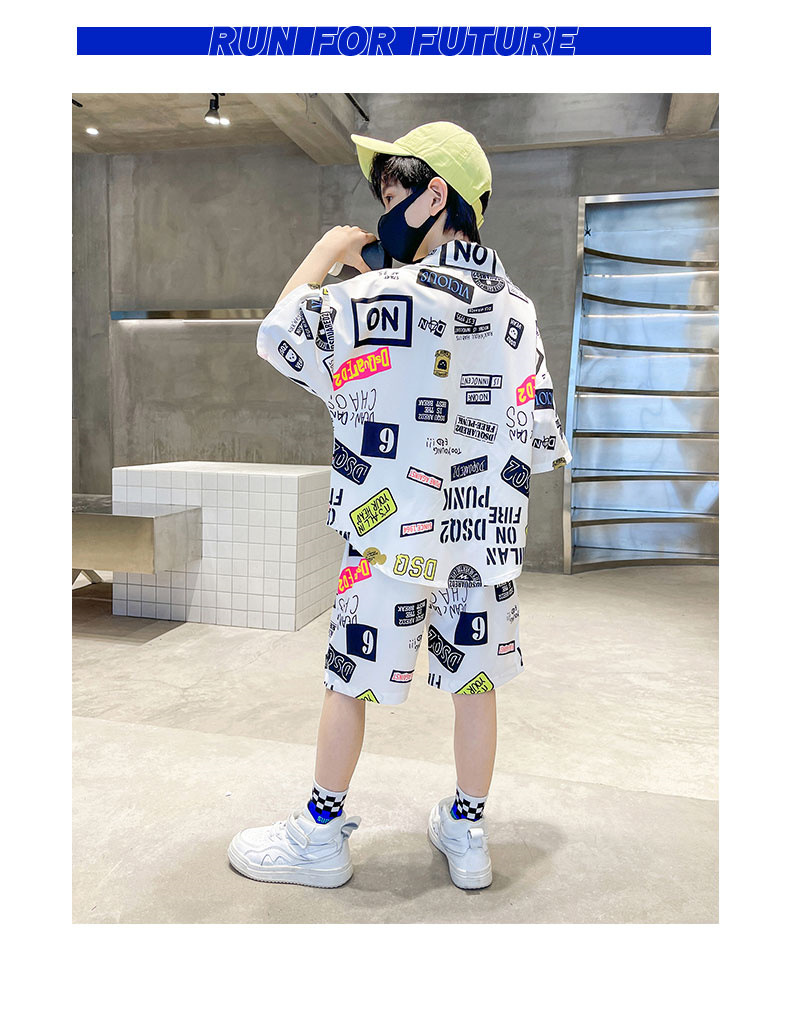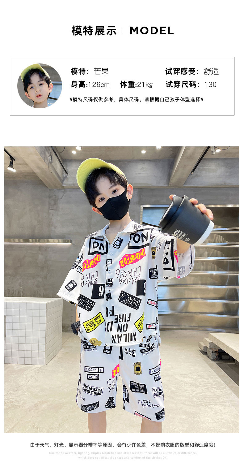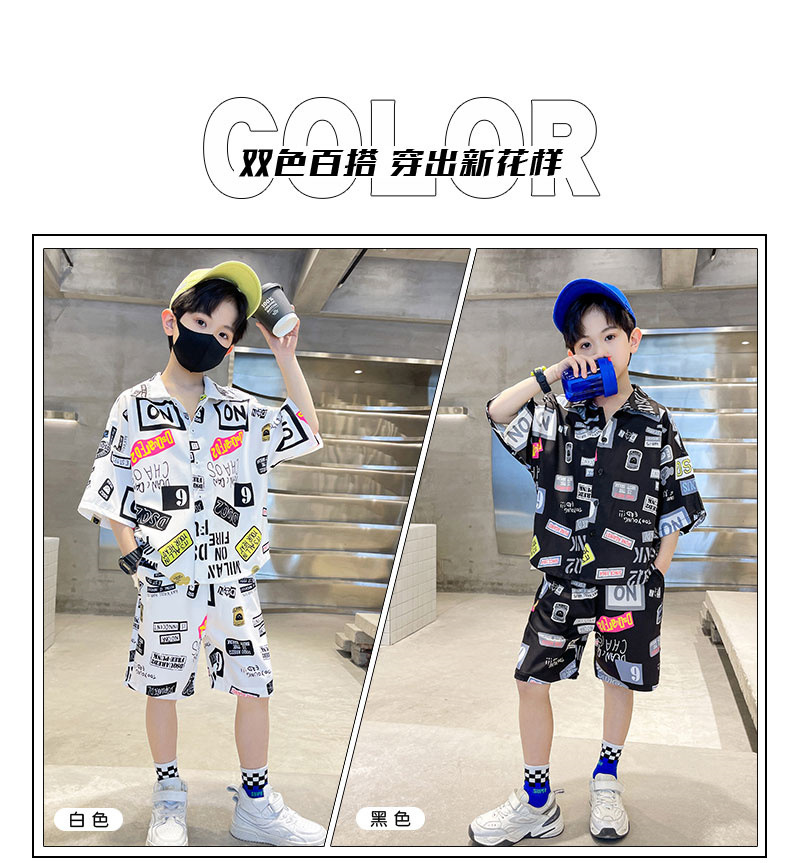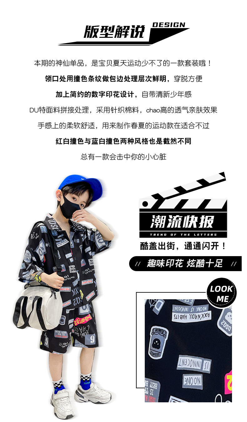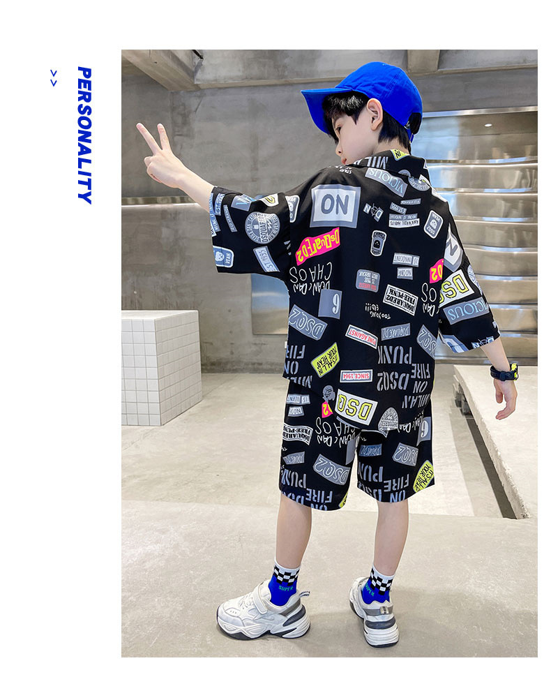 儿童夏装男童洋气短袖衬衫套装2024新款中大童夏季帅气时髦两件套