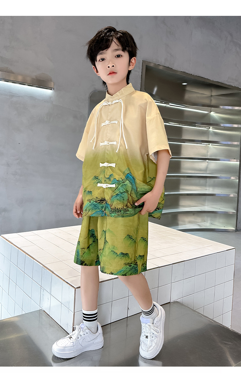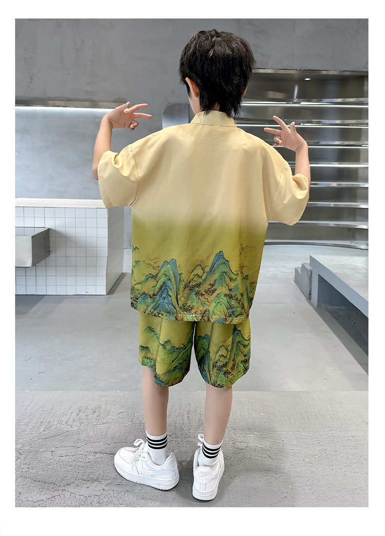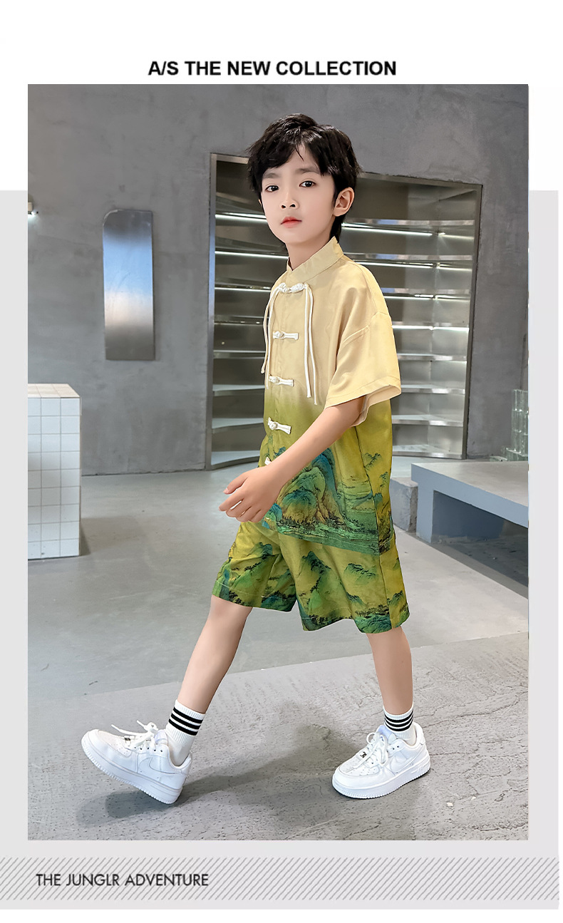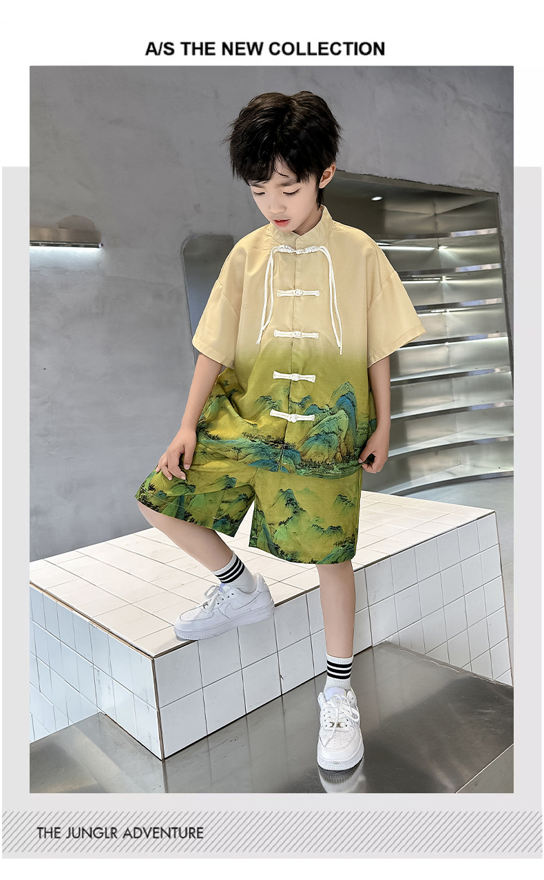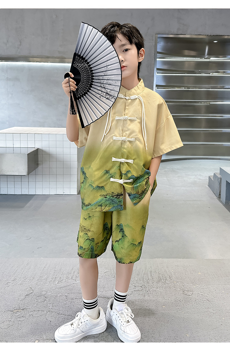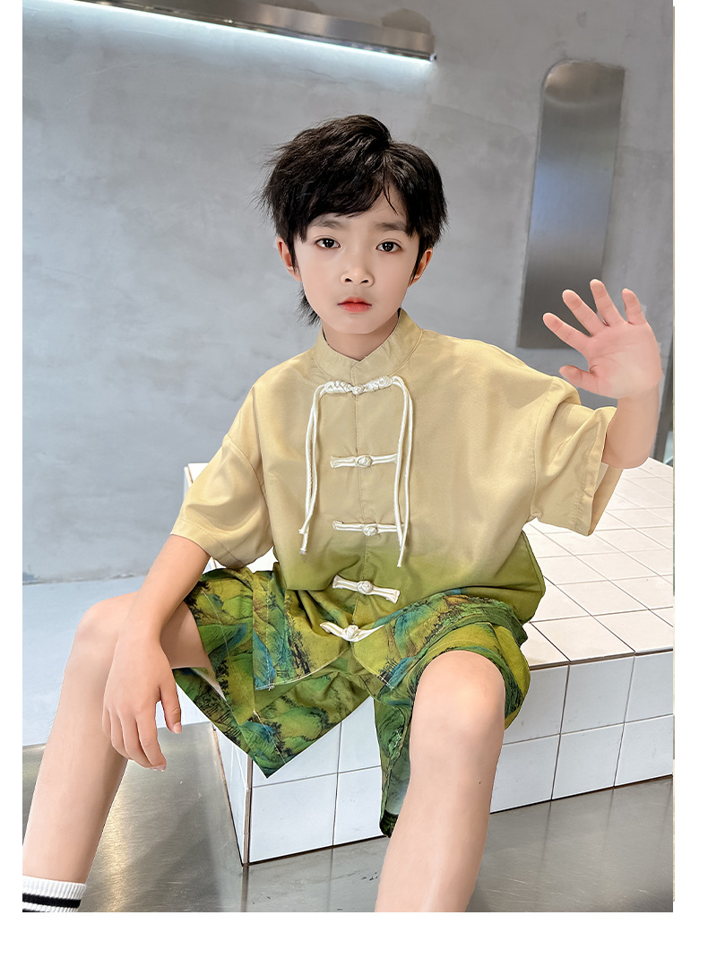 男童汉服夏装2024新中式古风帅气国风衬衫套装儿童短袖薄款两件套