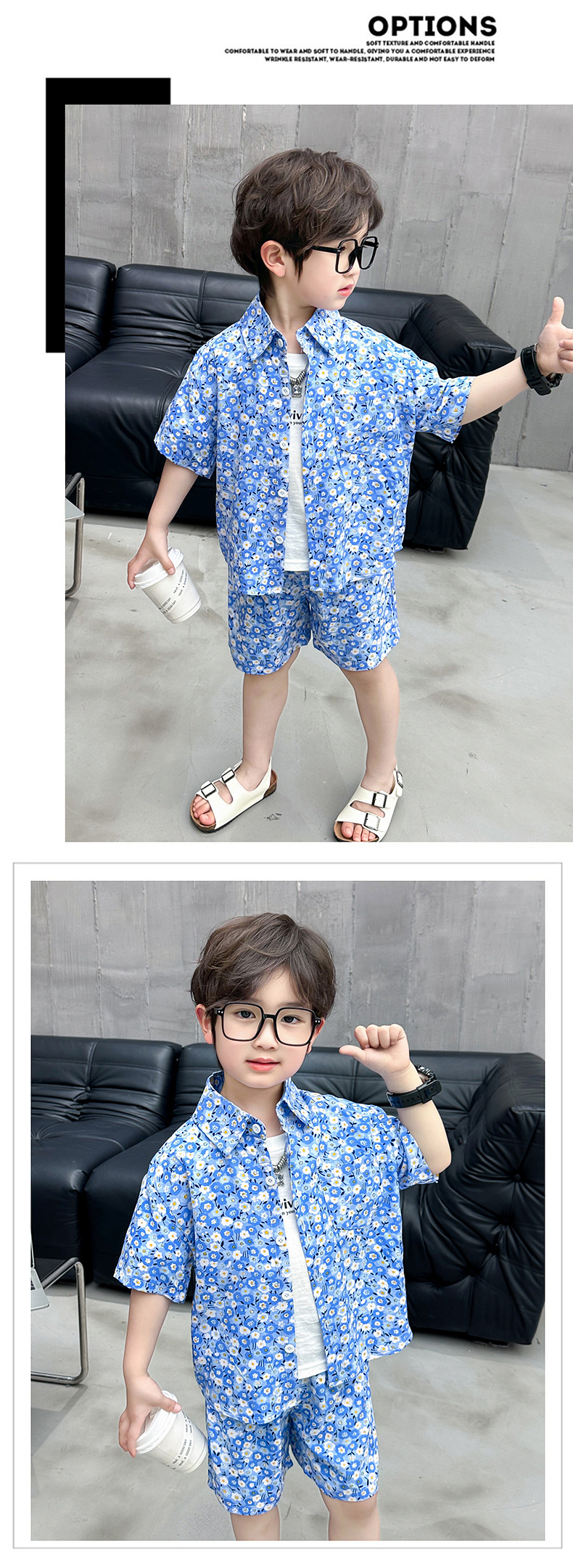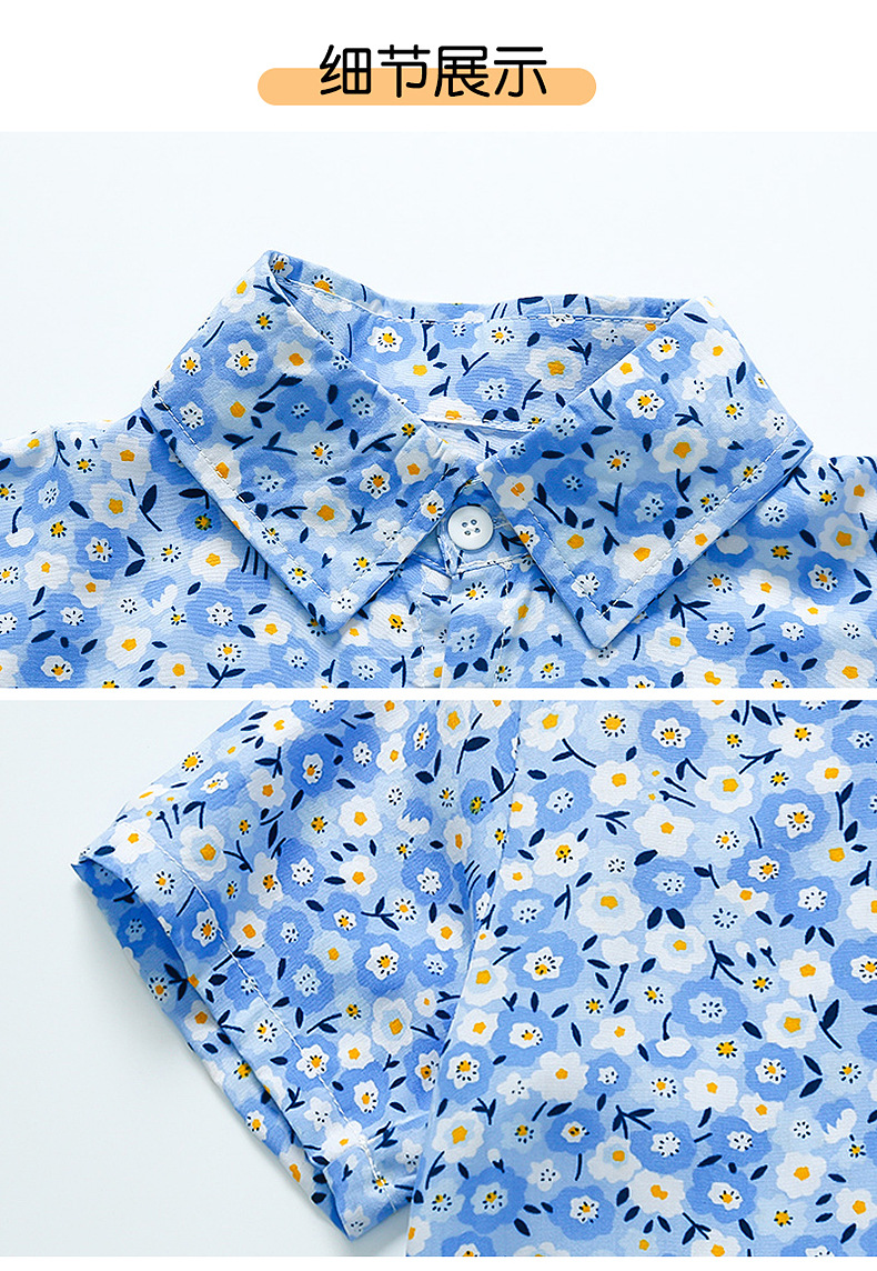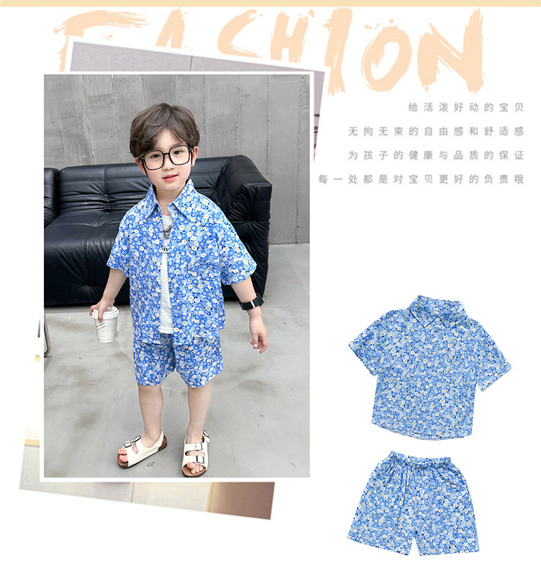男童夏装花衬衫套装2024新款时髦儿童半袖衬衣男宝宝夏季短袖衣服
