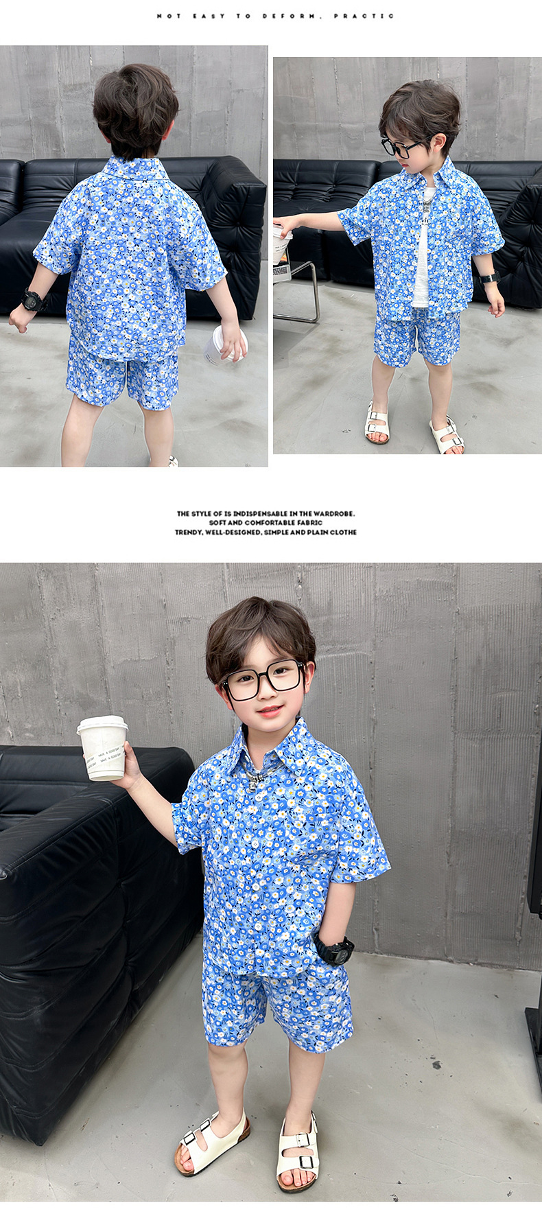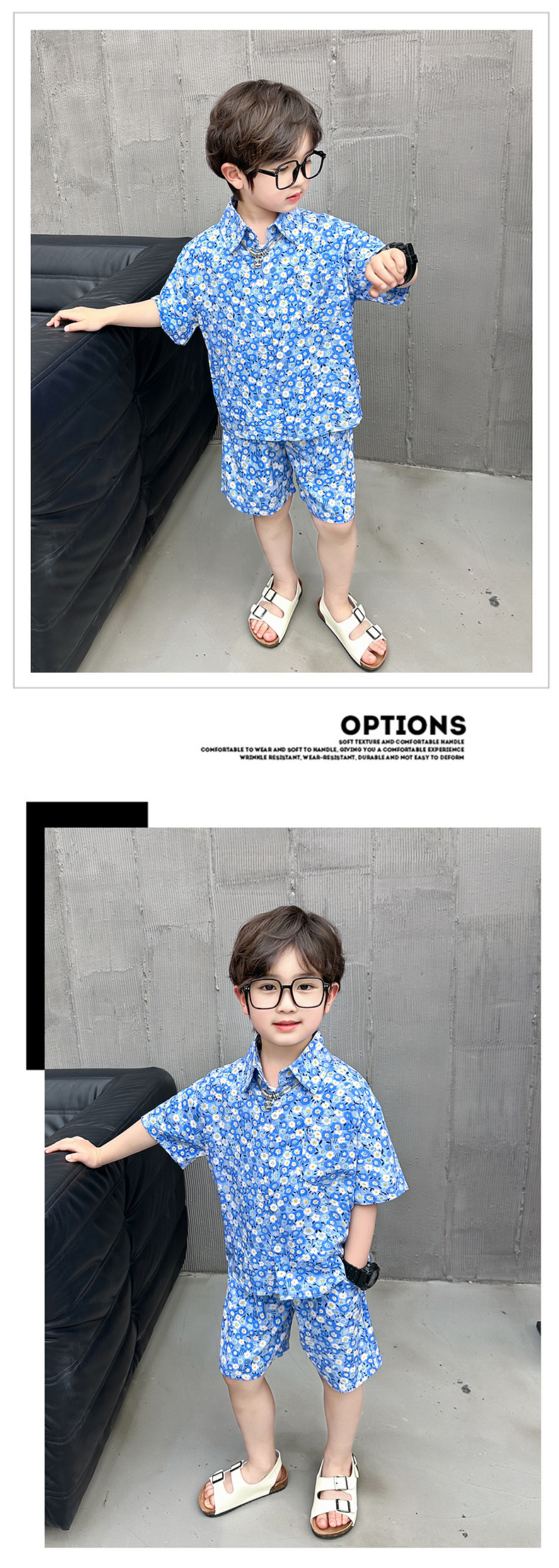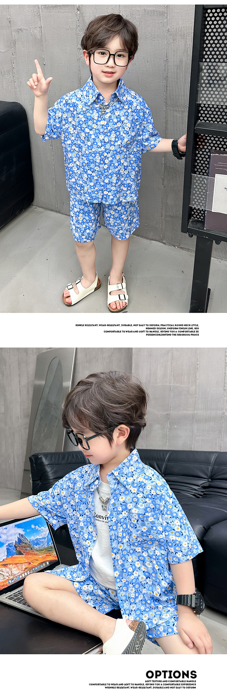 男童夏装花衬衫套装2024新款时髦儿童半袖衬衣男宝宝夏季短袖衣服