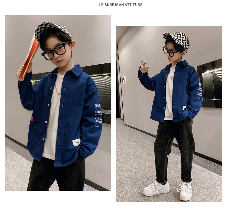 男童衬衫2024春装儿童长袖中大童格子帅气春秋休闲衬衣外套男孩潮