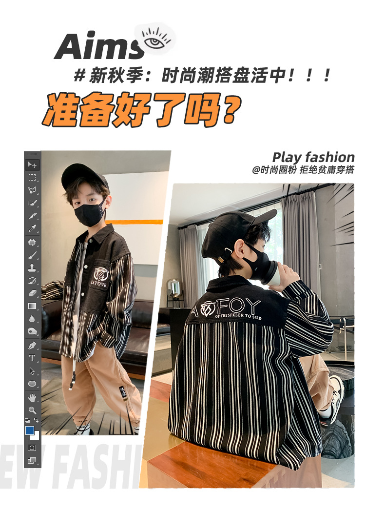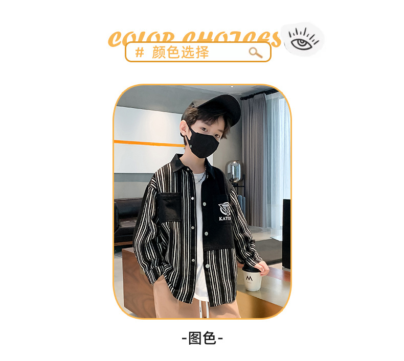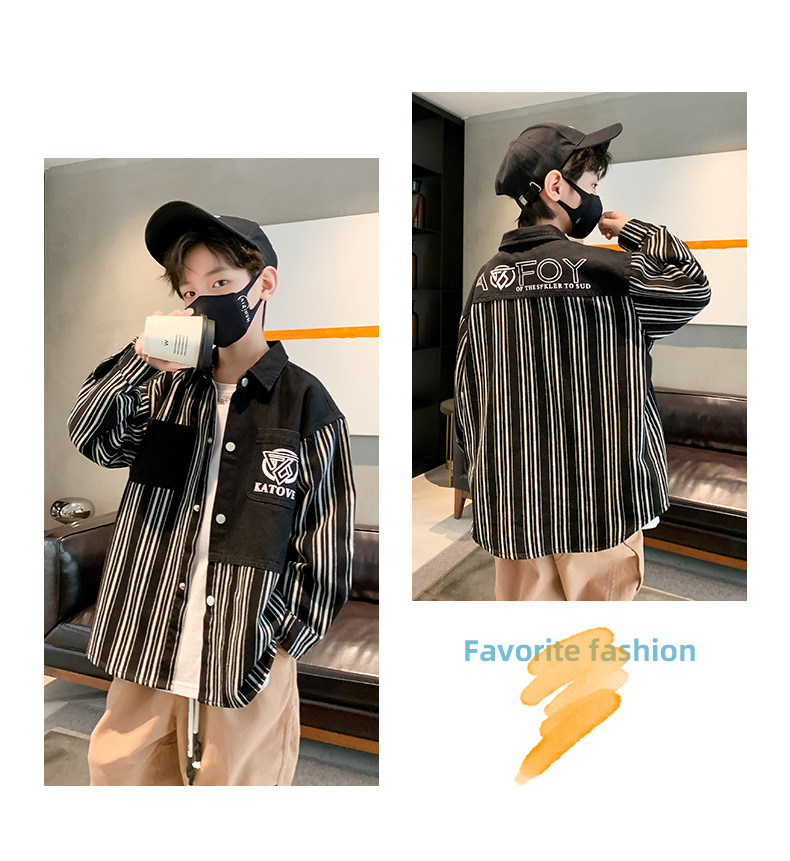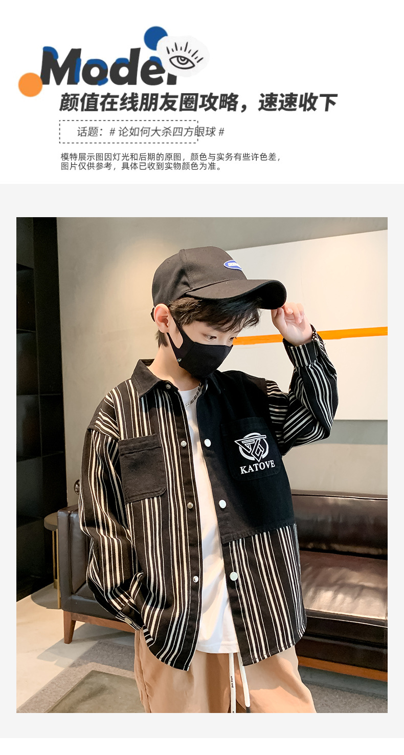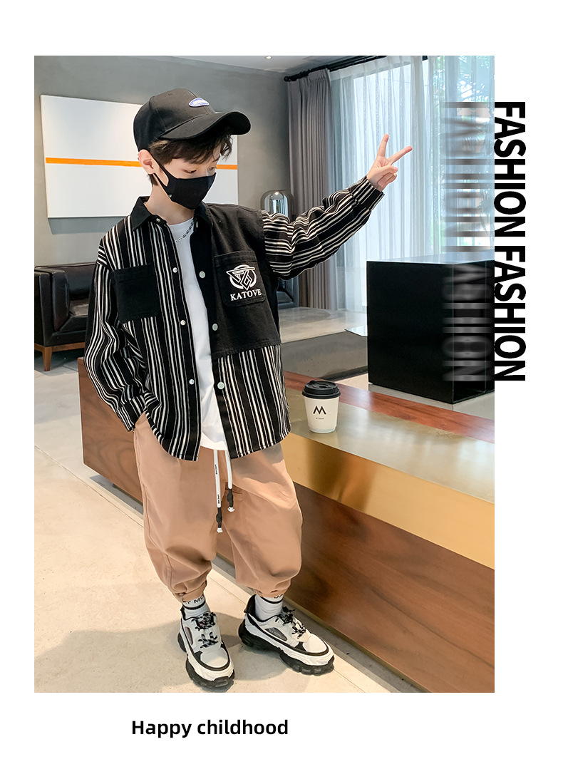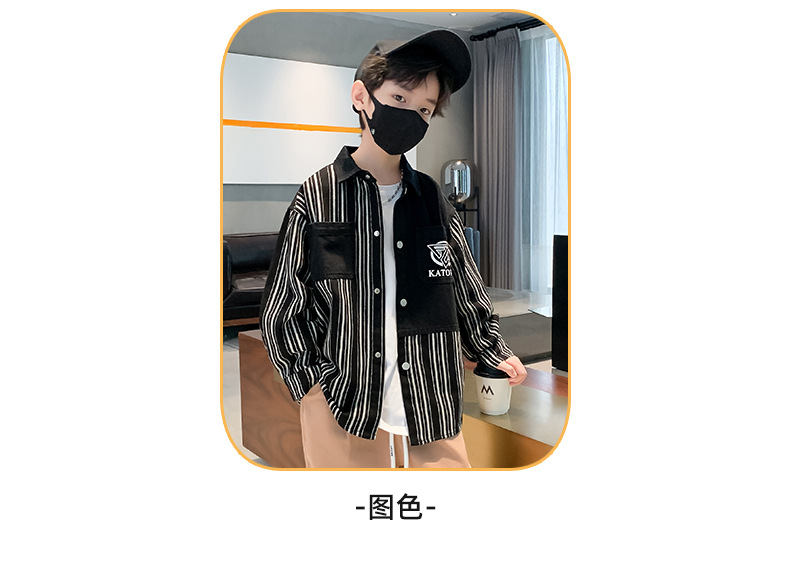 男童衬衫春秋款2024新款儿童衬衣外套条纹时髦帅气大童春装上衣潮