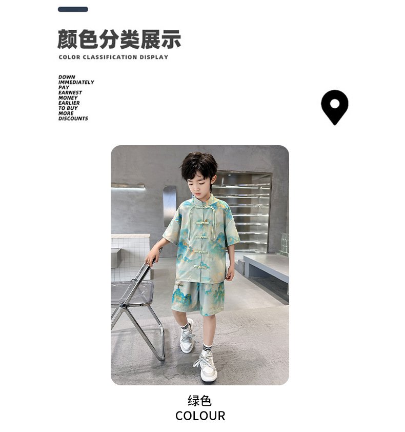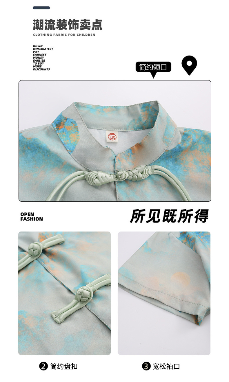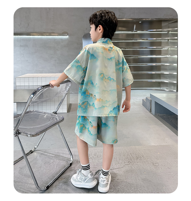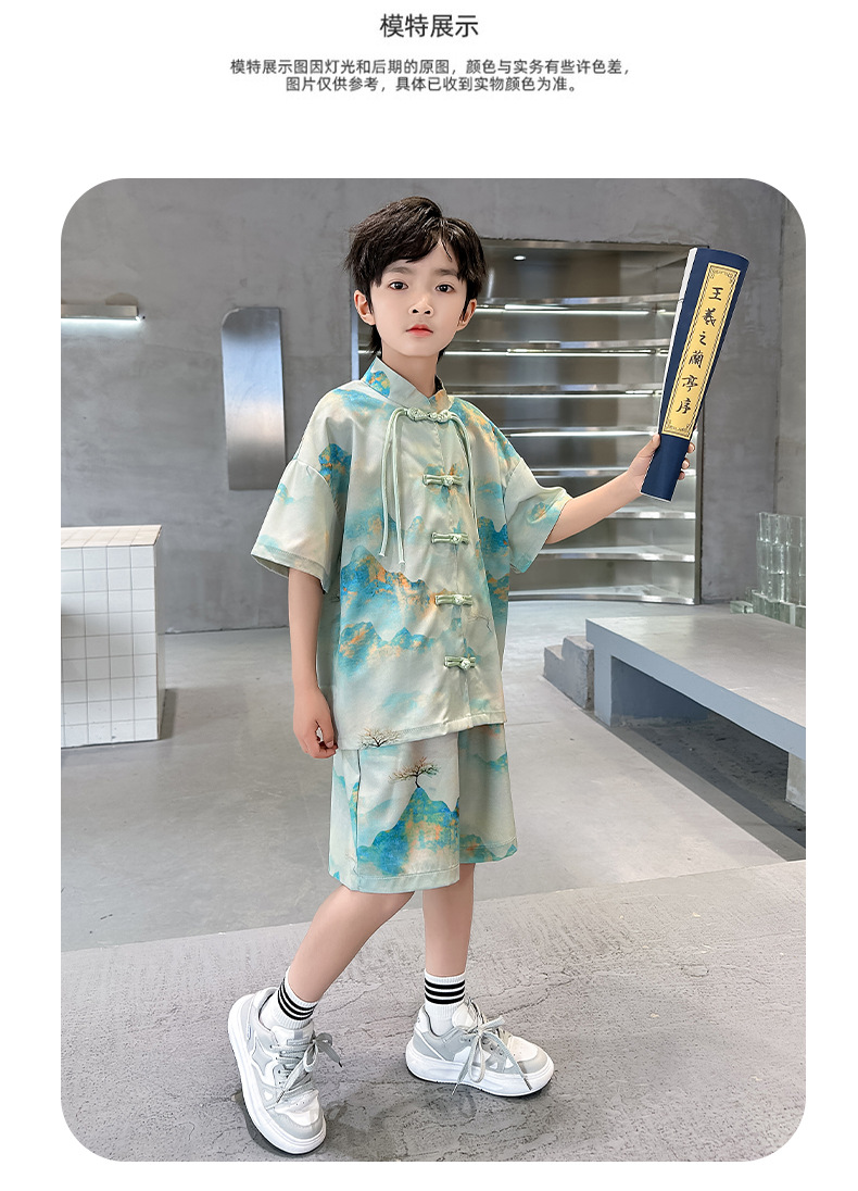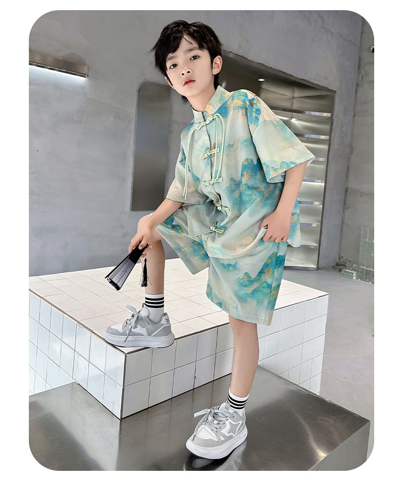 男童新中式汉服夏季潮款薄痞帅儿童短袖衬衫套装宝宝中国风唐宋装