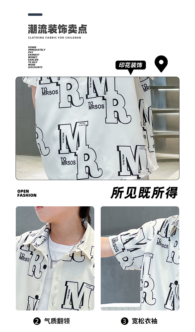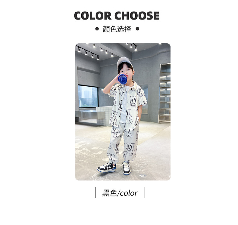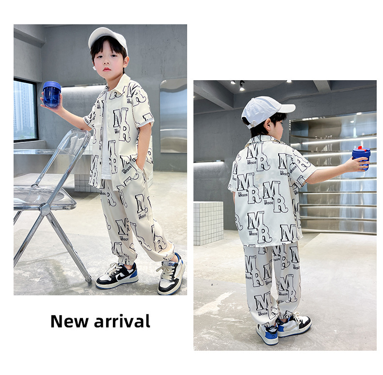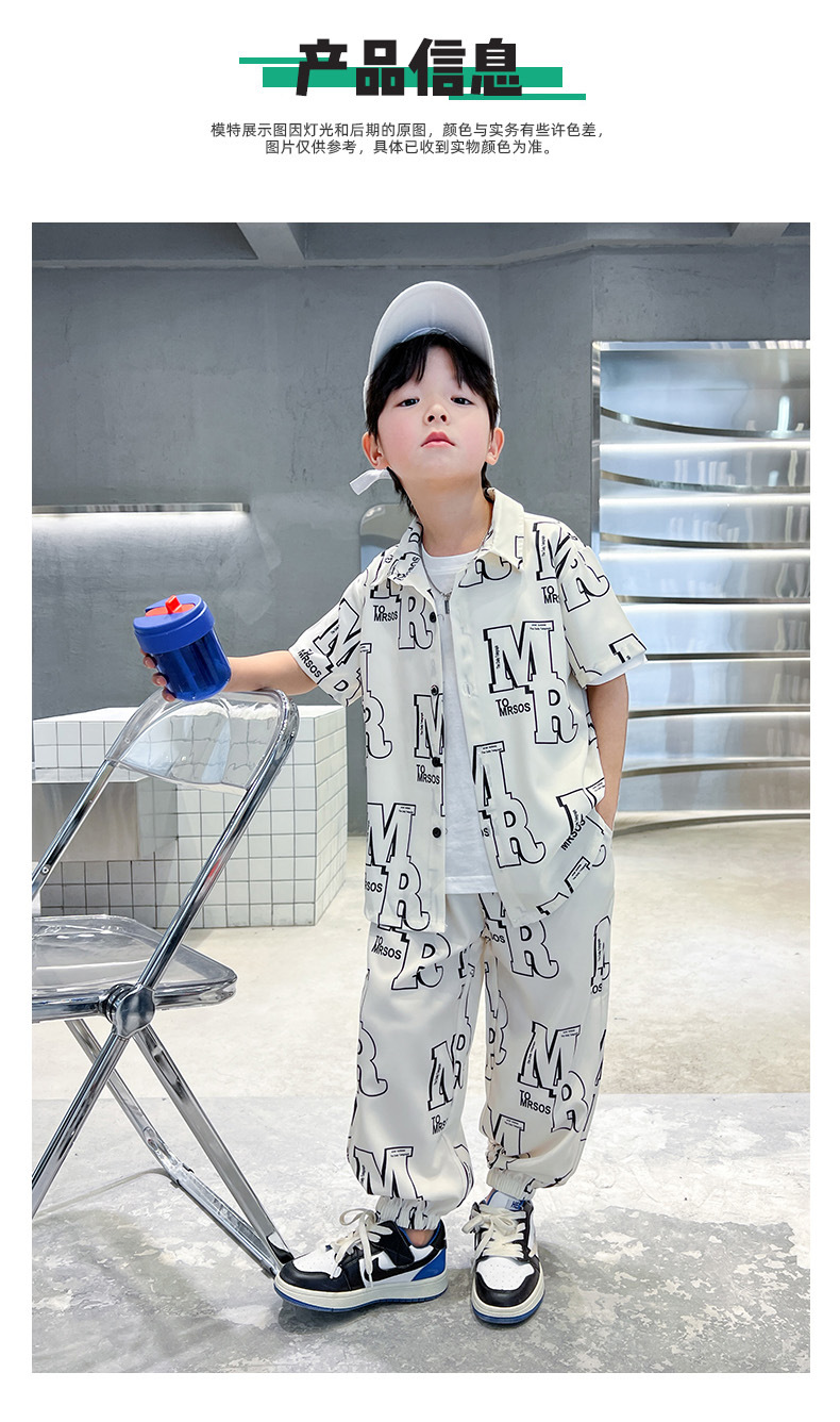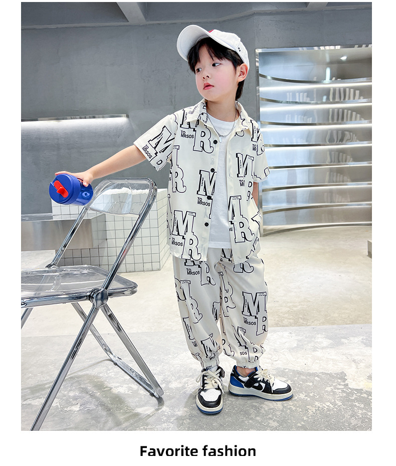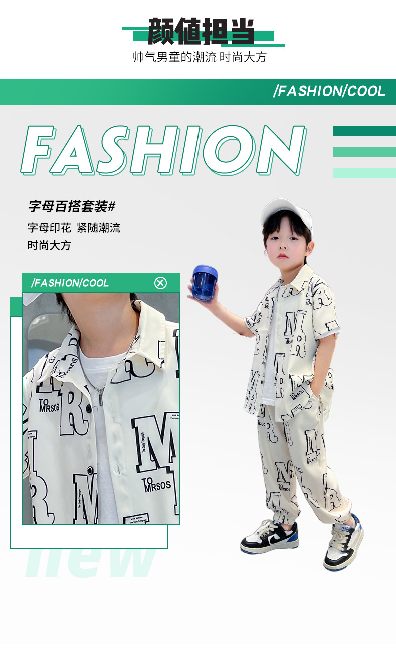 男童夏季帅气字母短袖衬衫套装宝宝夏装两件套中小童炸街雪纺套装
