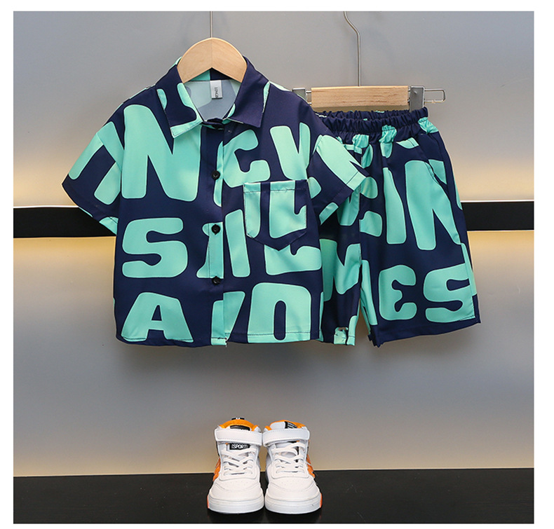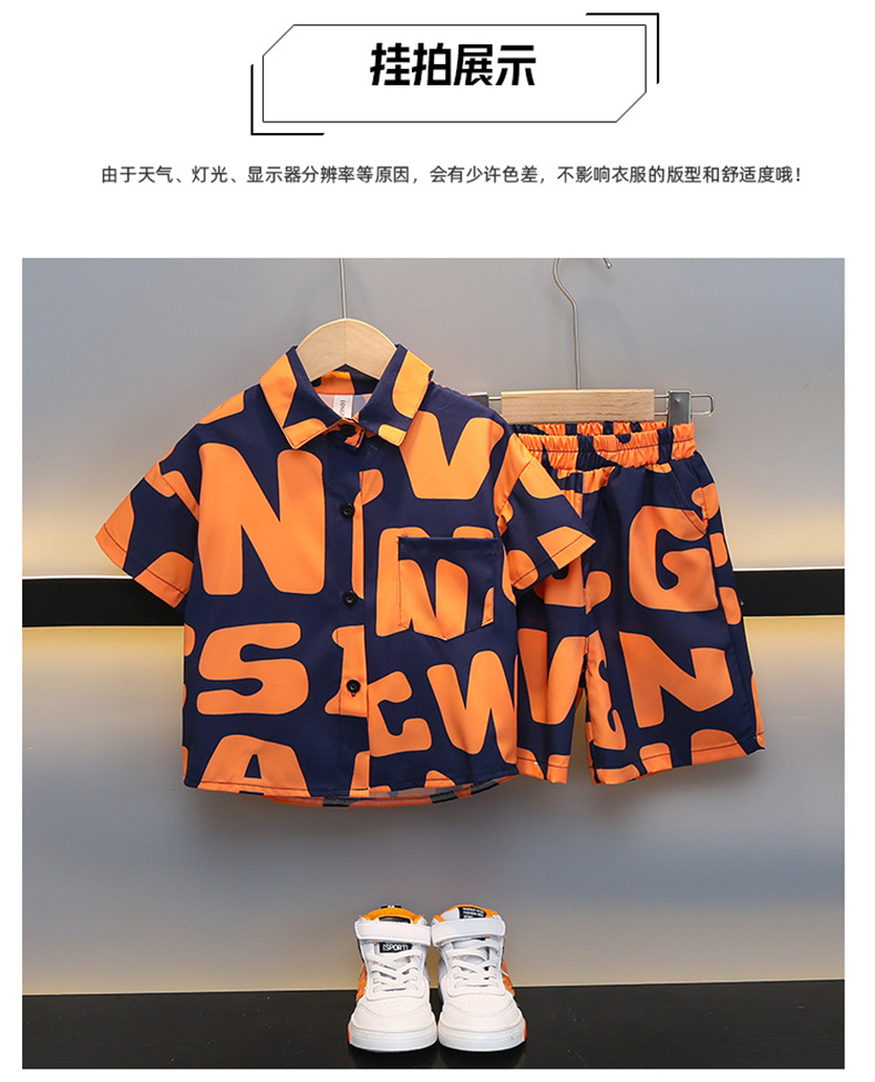 男童衬衣套装2024新款小儿童夏季洋气时髦短袖宝宝帅气炸街衣服潮