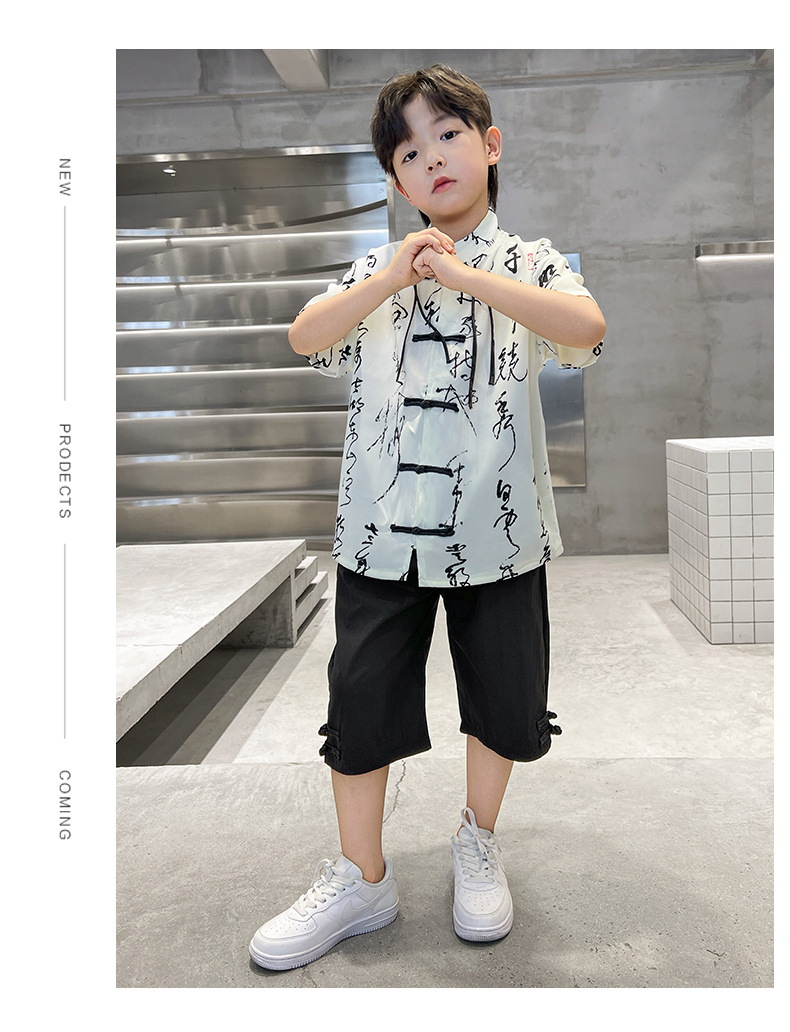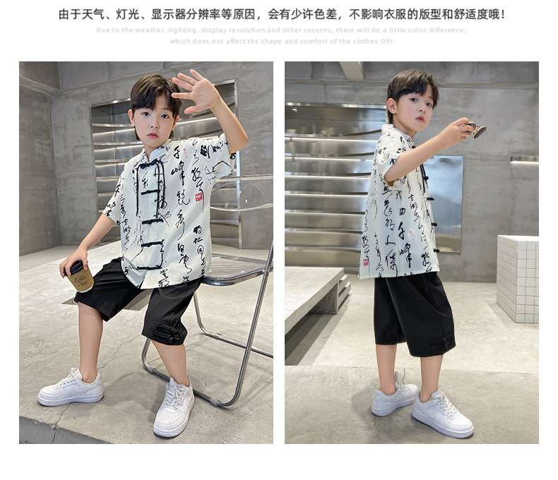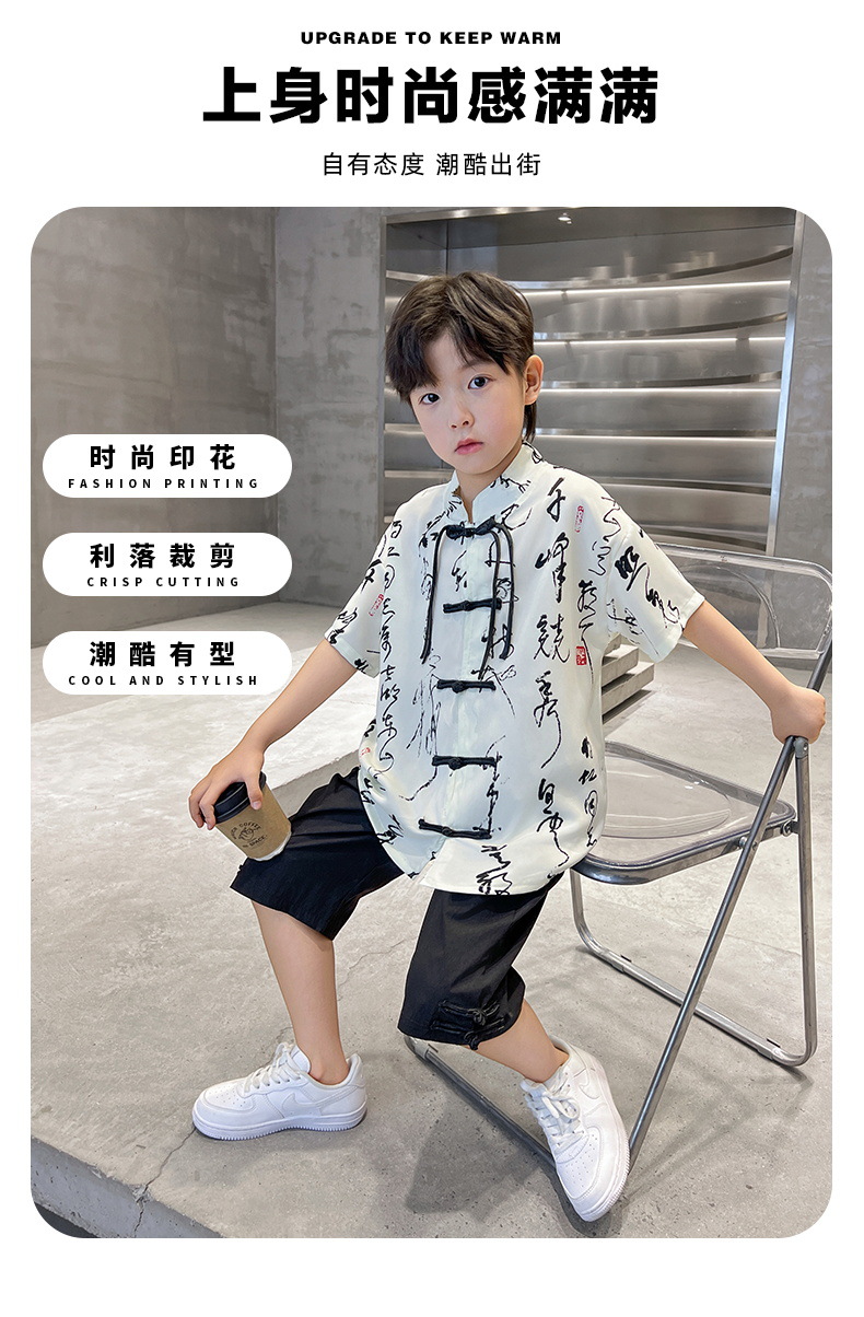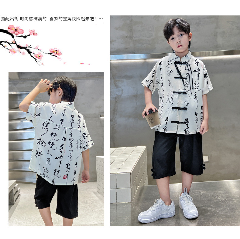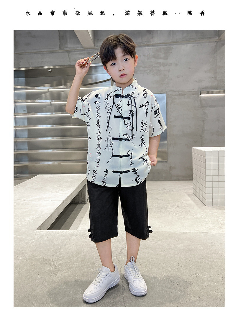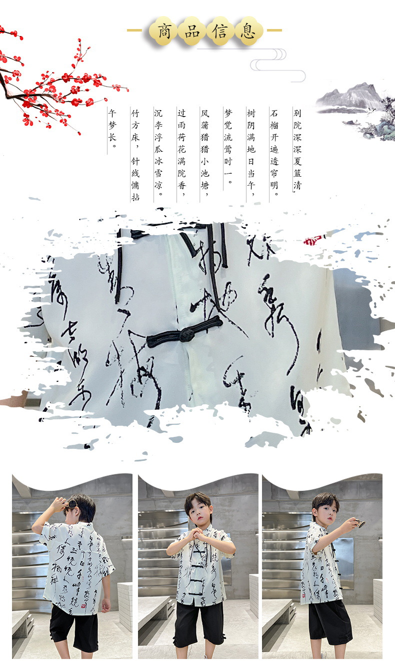 男童套装夏款汉服宝宝新中式唐装周岁礼服诗词印花儿童国潮两件套