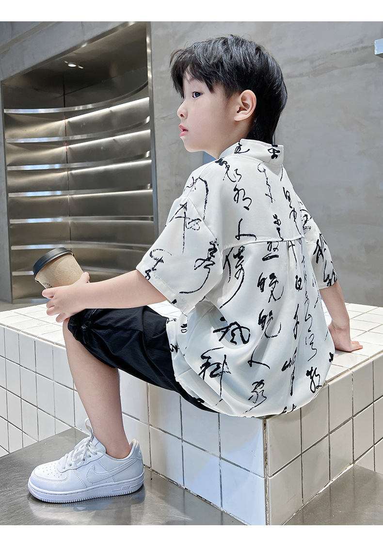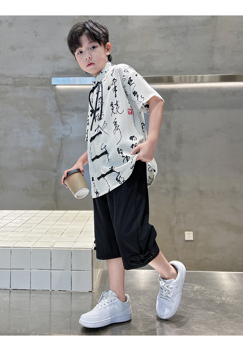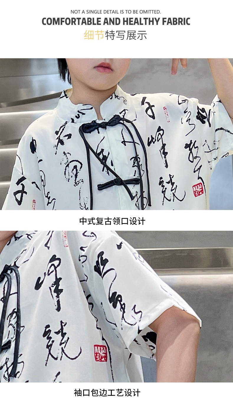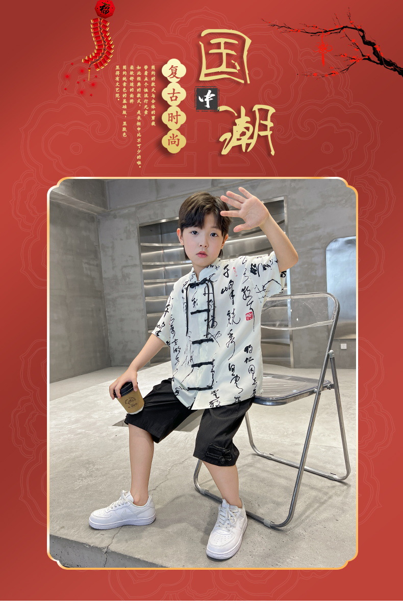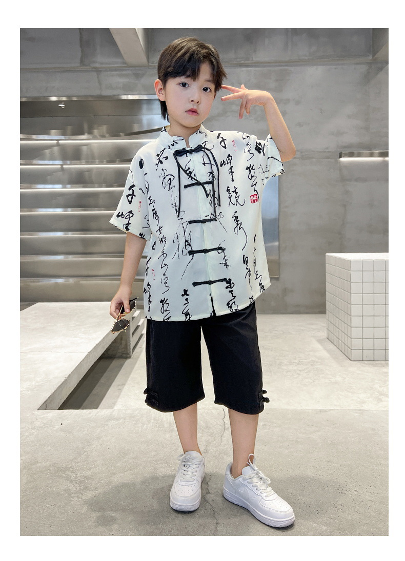 男童套装夏款汉服宝宝新中式唐装周岁礼服诗词印花儿童国潮两件套
