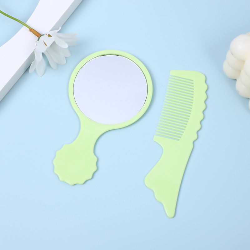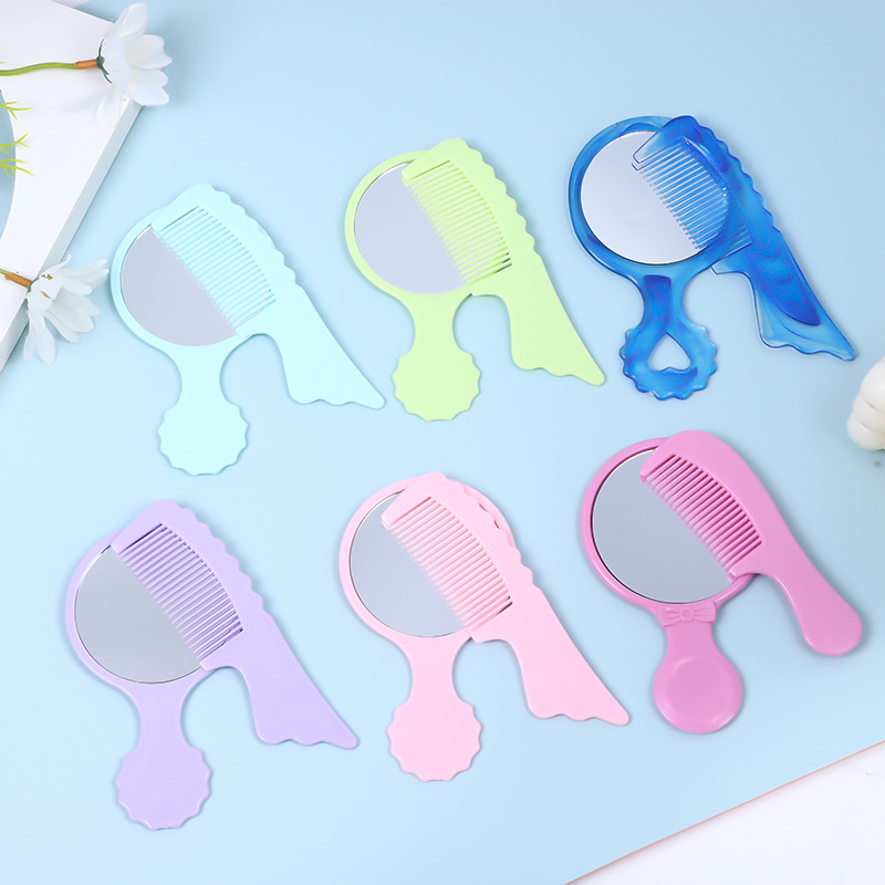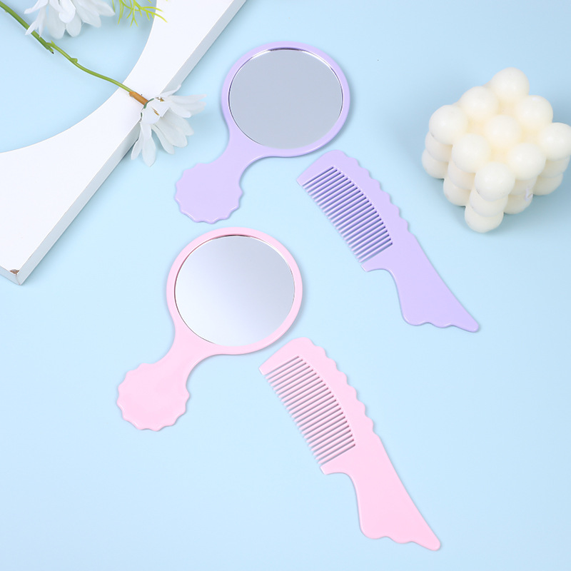 现货批发迷你镜梳套装便携化妆手柄镜随身镜梳防静电塑料梳子礼品