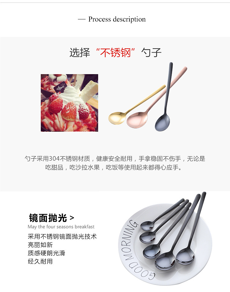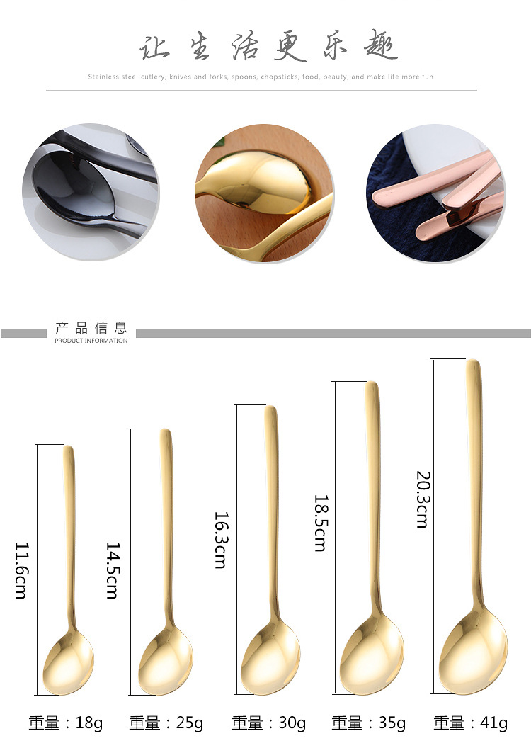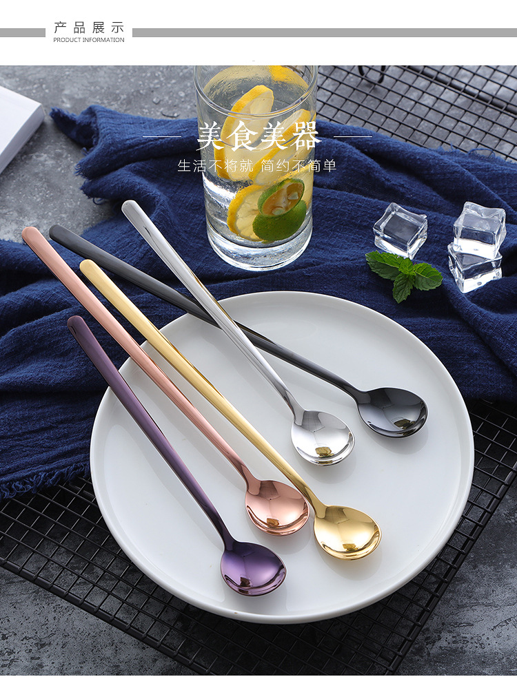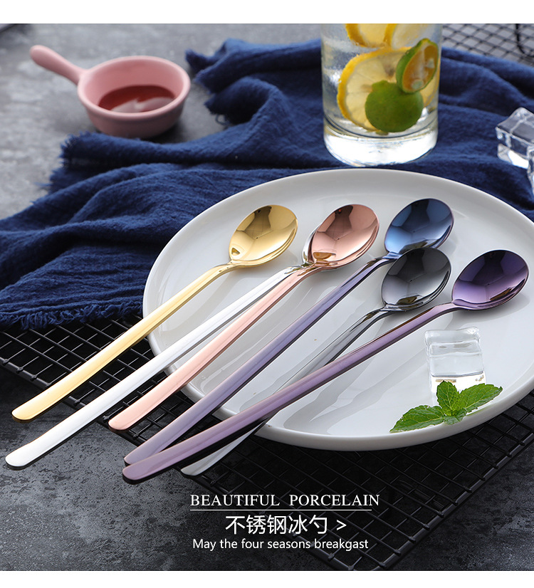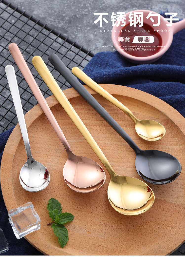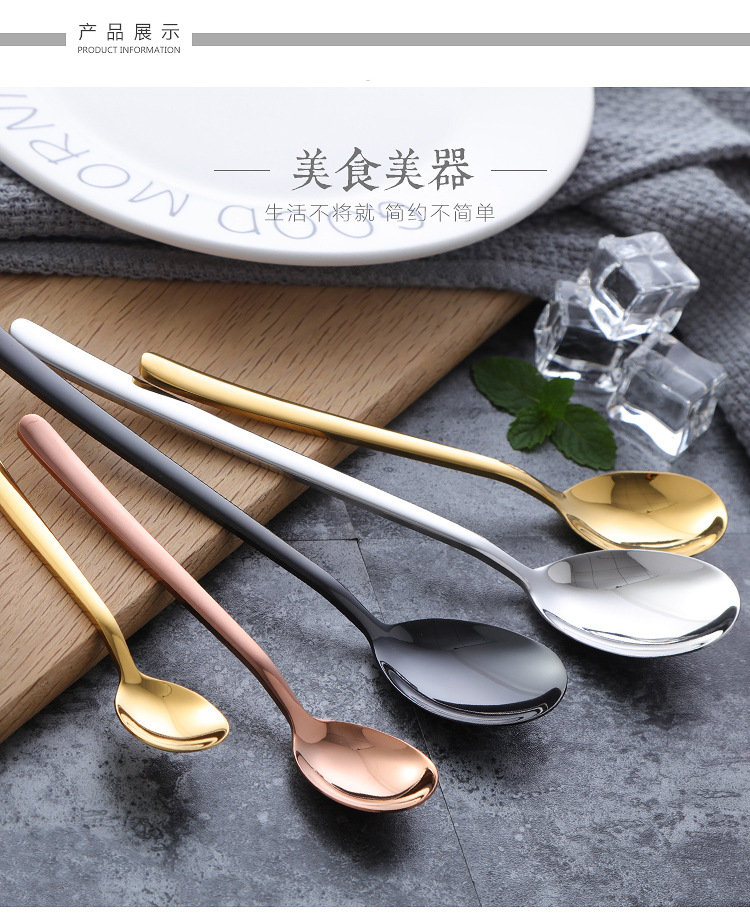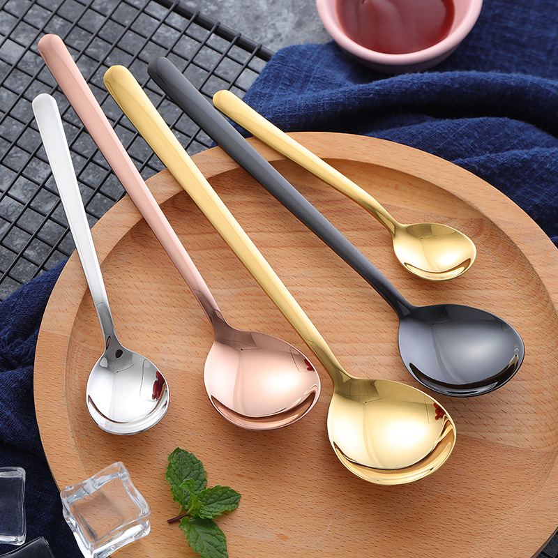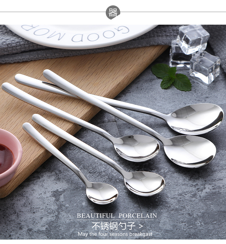304不锈钢勺子韩式长柄汤匙创意冰勺家用冷饮甜品搅拌勺奶茶勺子