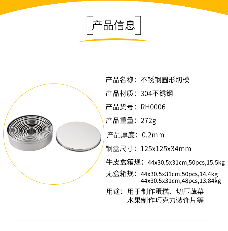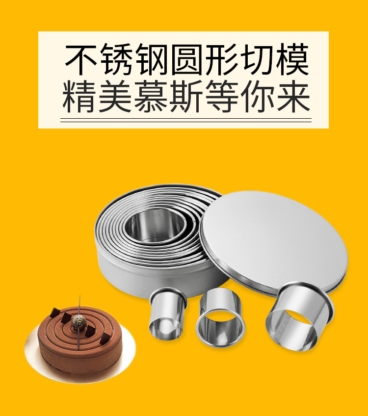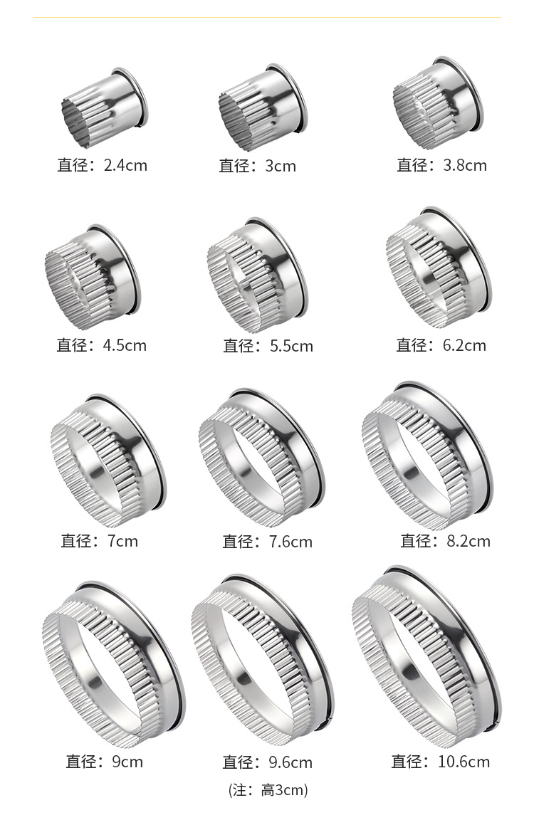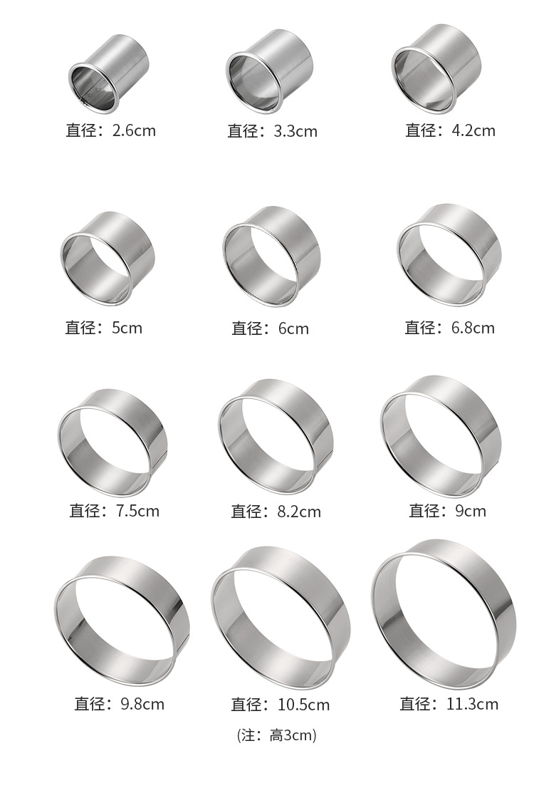 不锈钢圆形慕斯圈12件套 饼干切模 甜甜圈翻糖模具饺子皮切饼干模