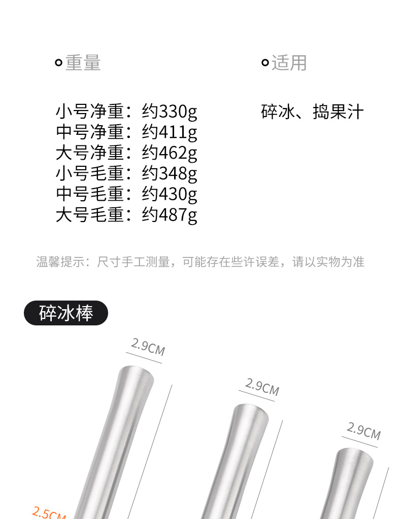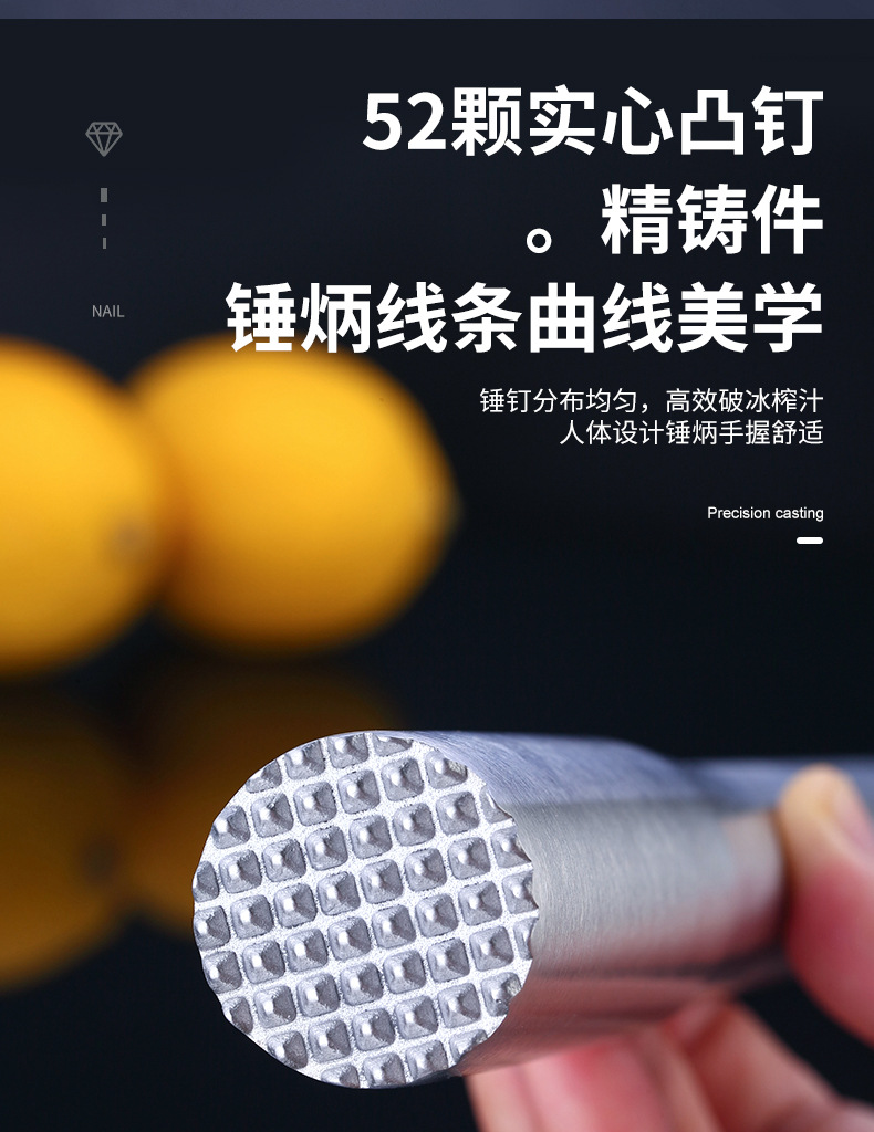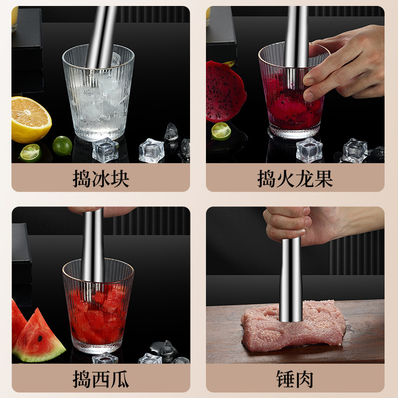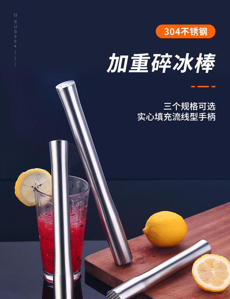 不锈钢碎冰锤捣汁棒鸡尾酒捣冰棒调酒压汁棒柠檬锤棍奶茶酒吧用品