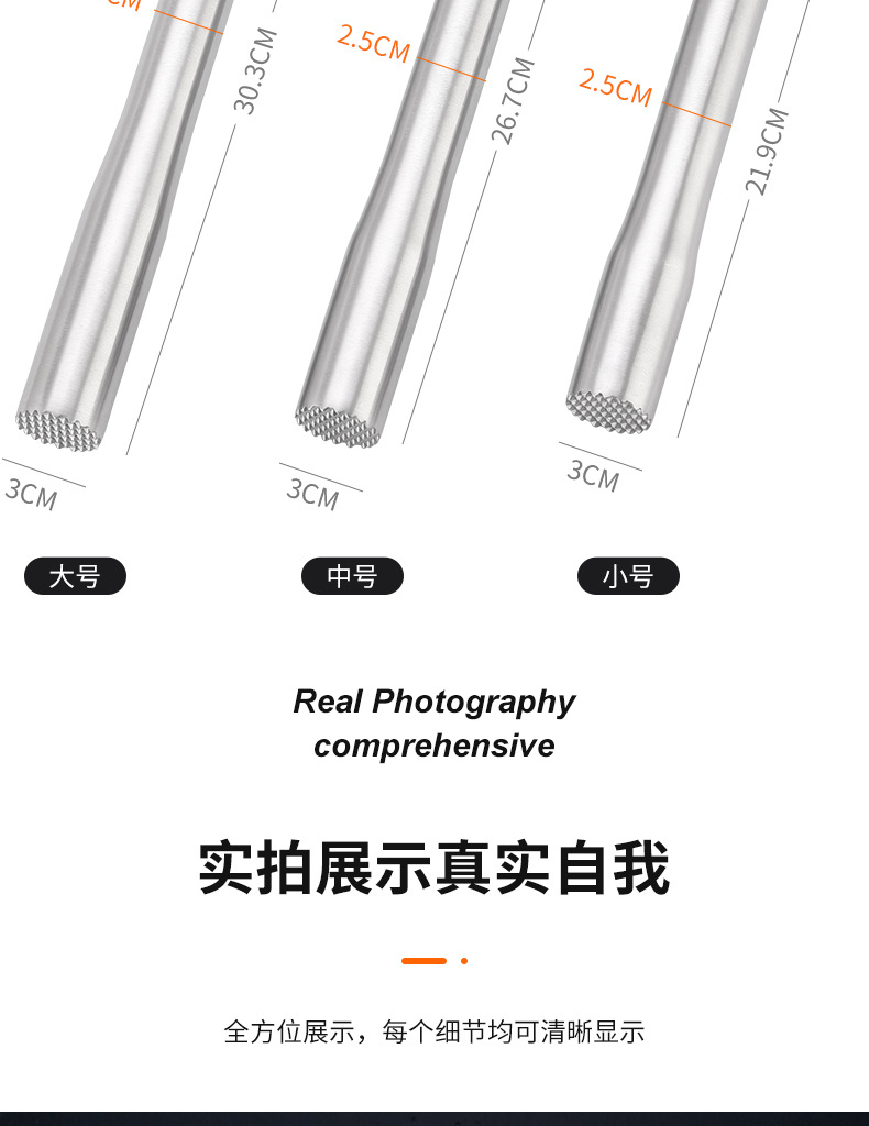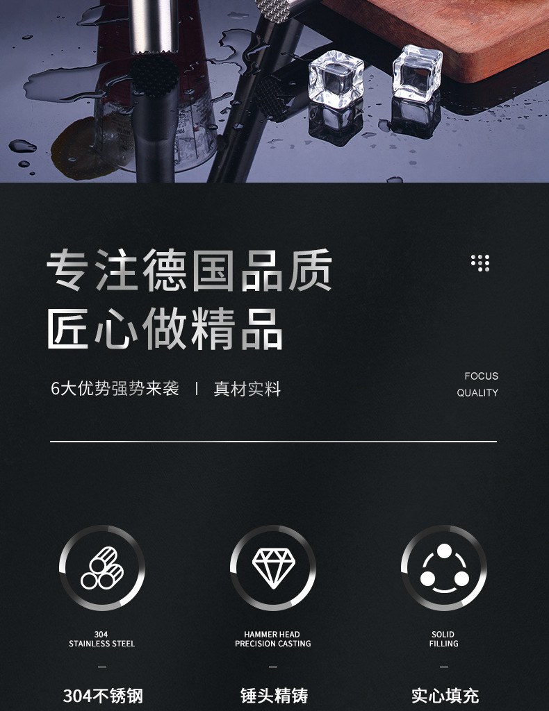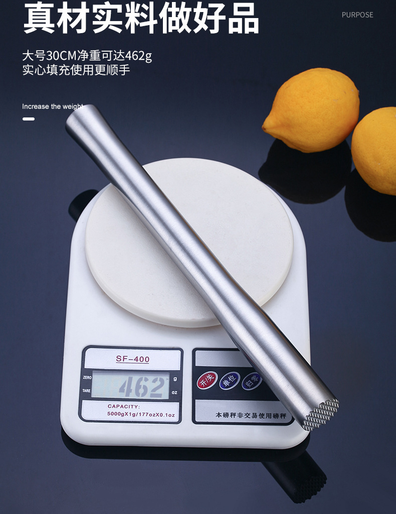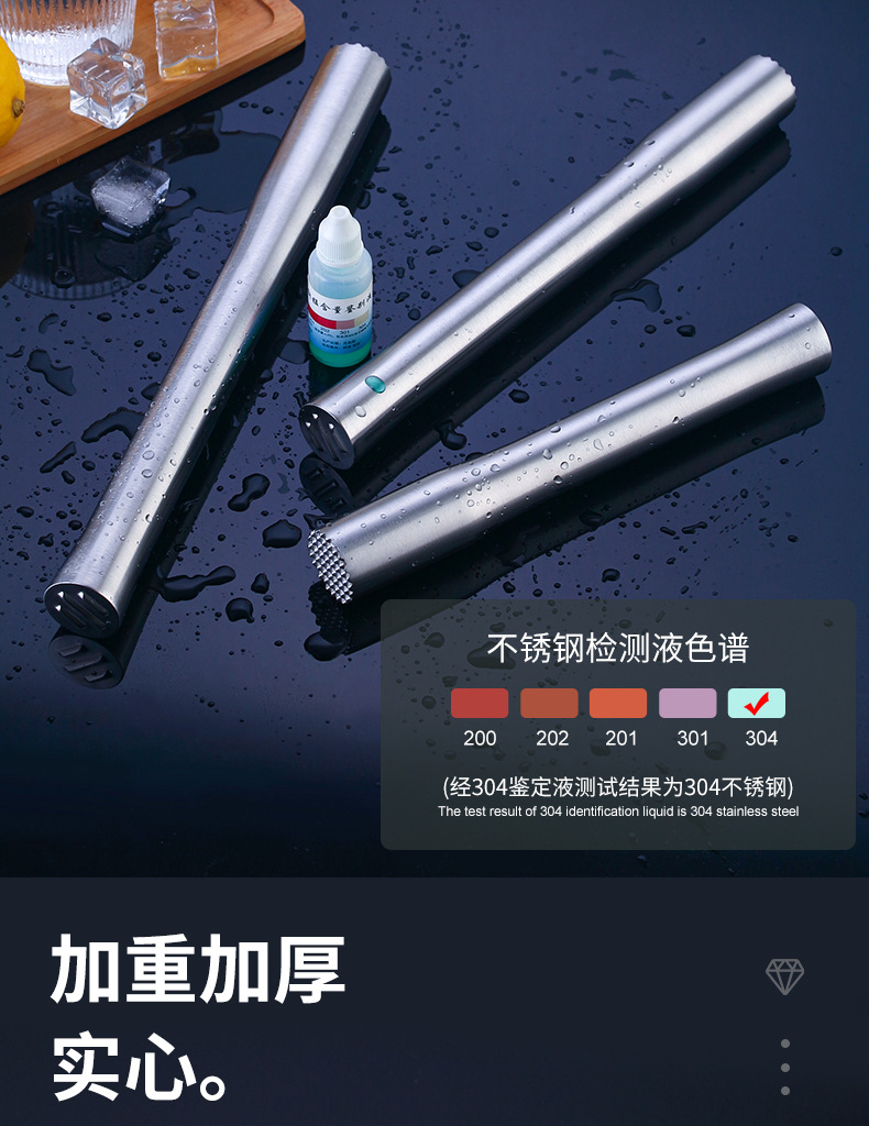 不锈钢碎冰锤捣汁棒鸡尾酒捣冰棒调酒压汁棒柠檬锤棍奶茶酒吧用品