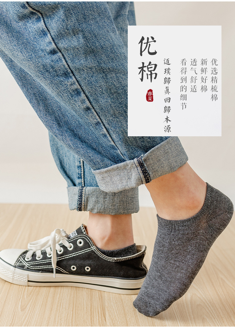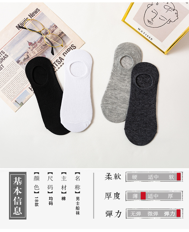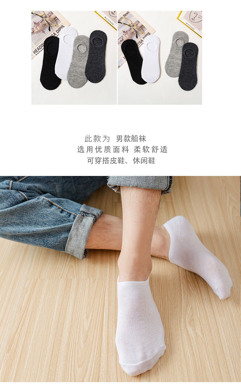 男士船袜纯色硅胶防滑短袜休闲隐形袜浅口隐形袜子棉袜厂家黑白灰