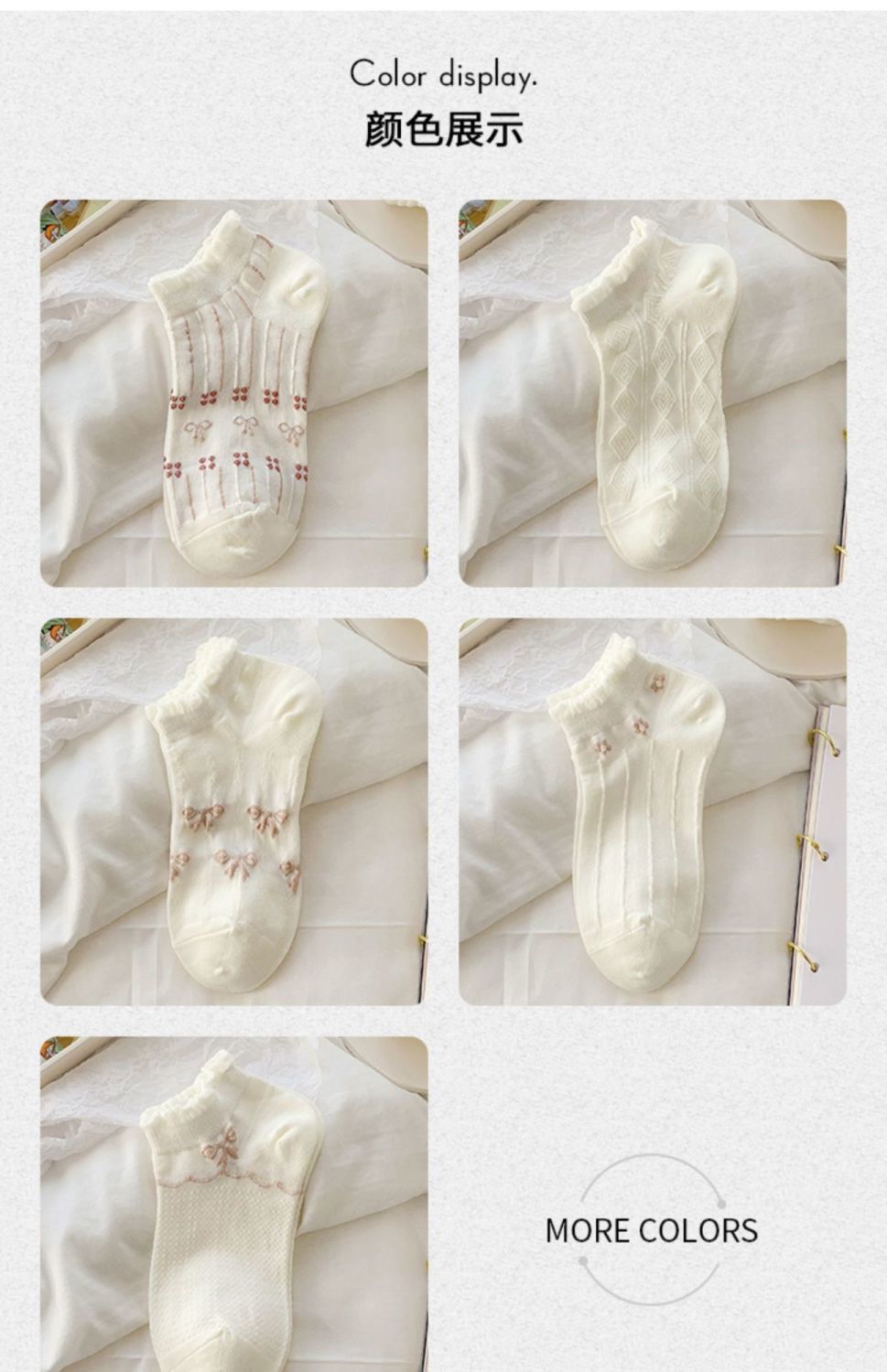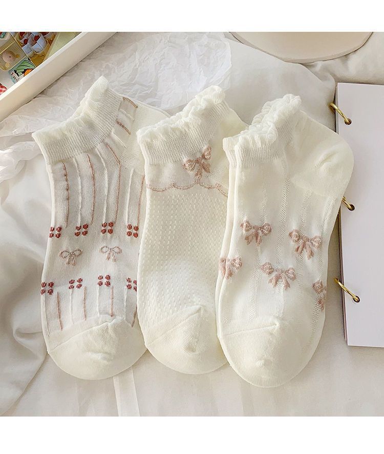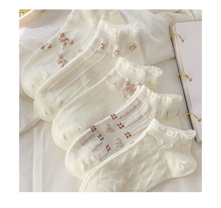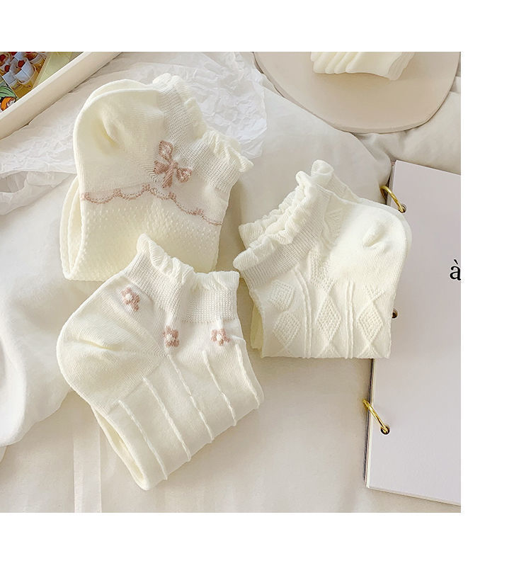 船袜女夏季浅色吸湿排汗女士短款袜子纯色花边立体薄款韩版百搭
