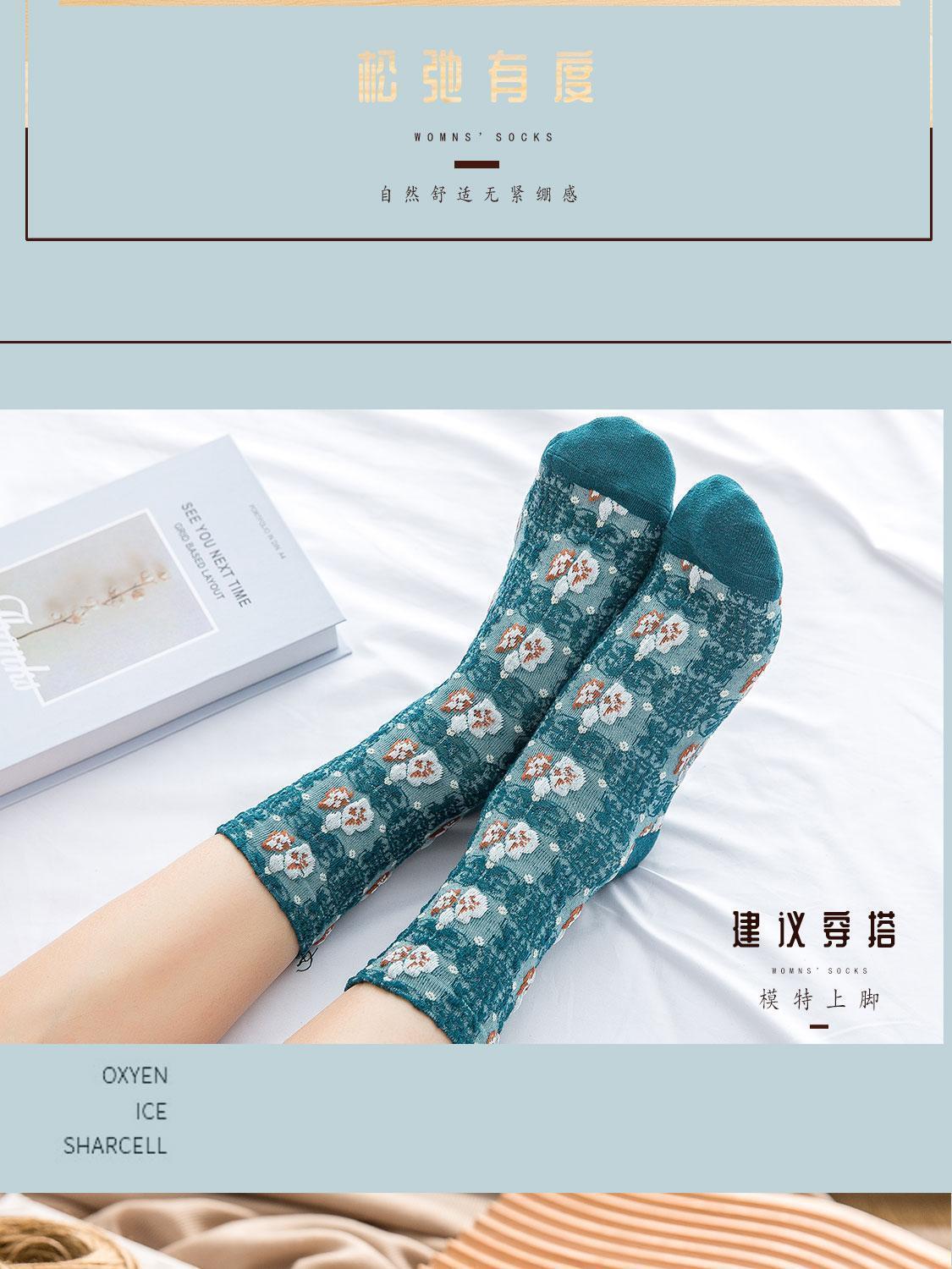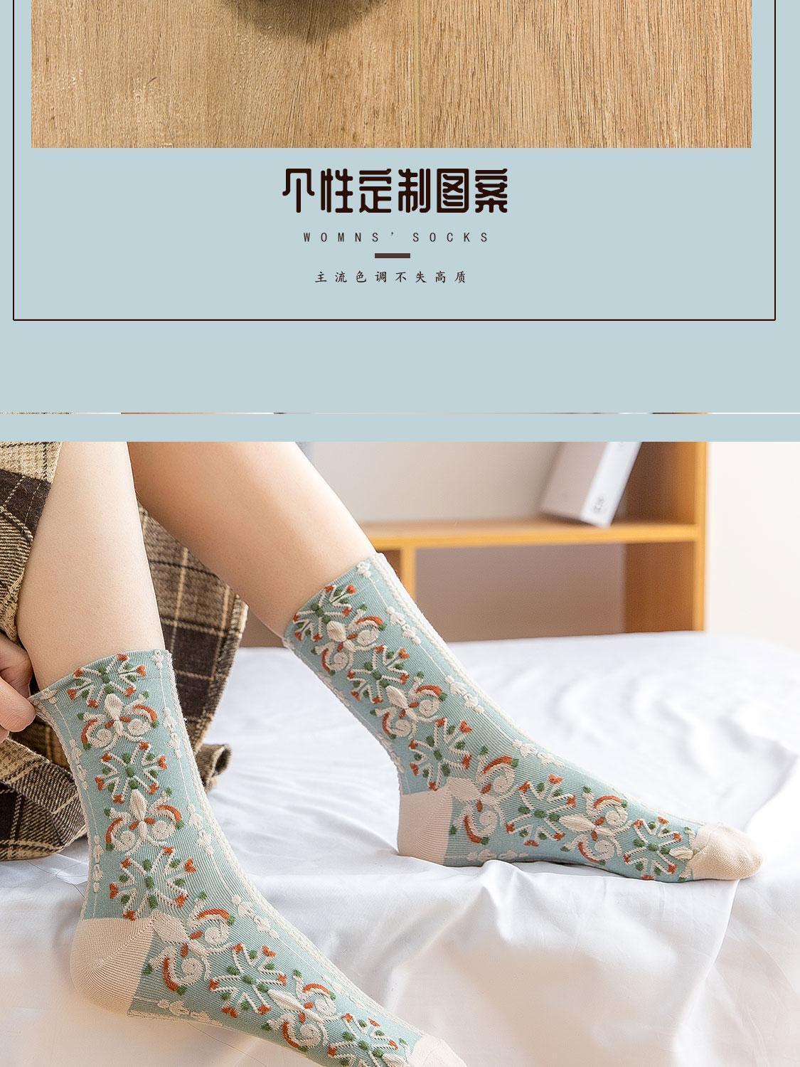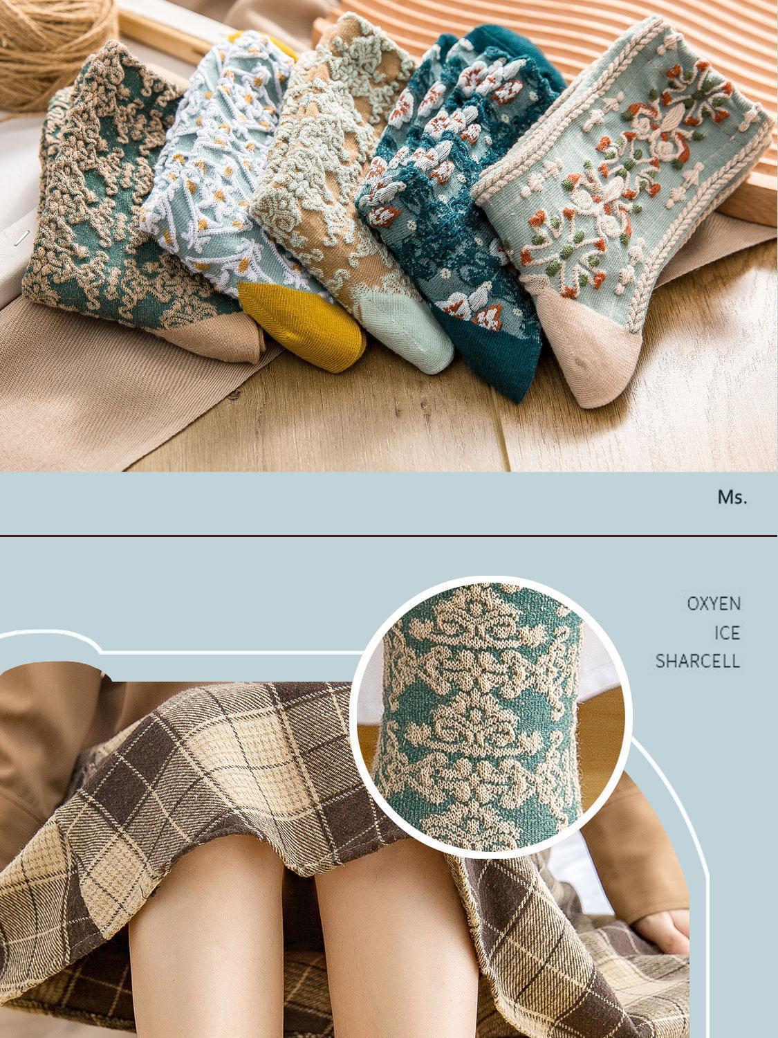 袜子女复古宫廷风3D立体浮雕碎花国潮中筒袜新款女袜个性民族文艺