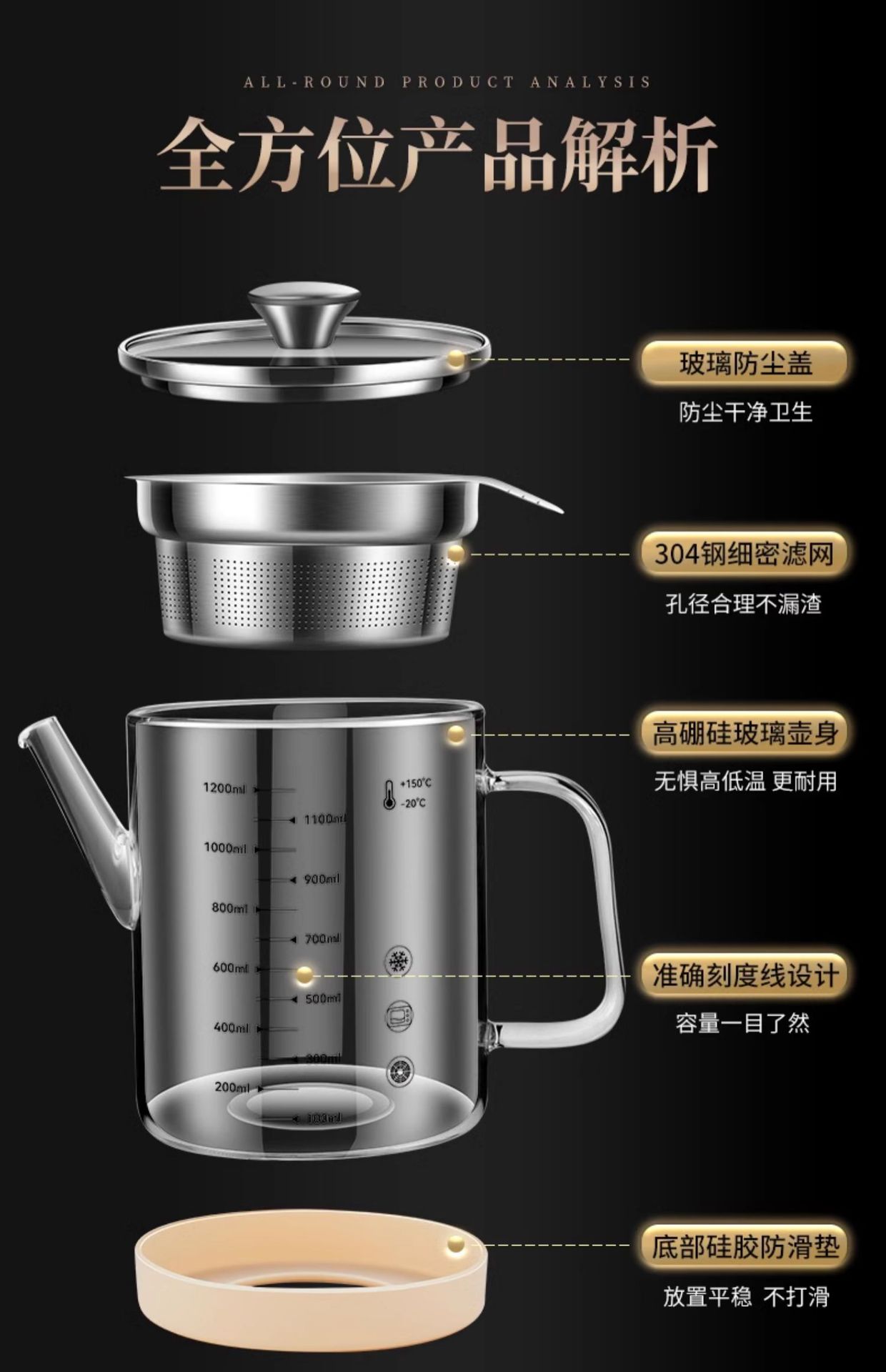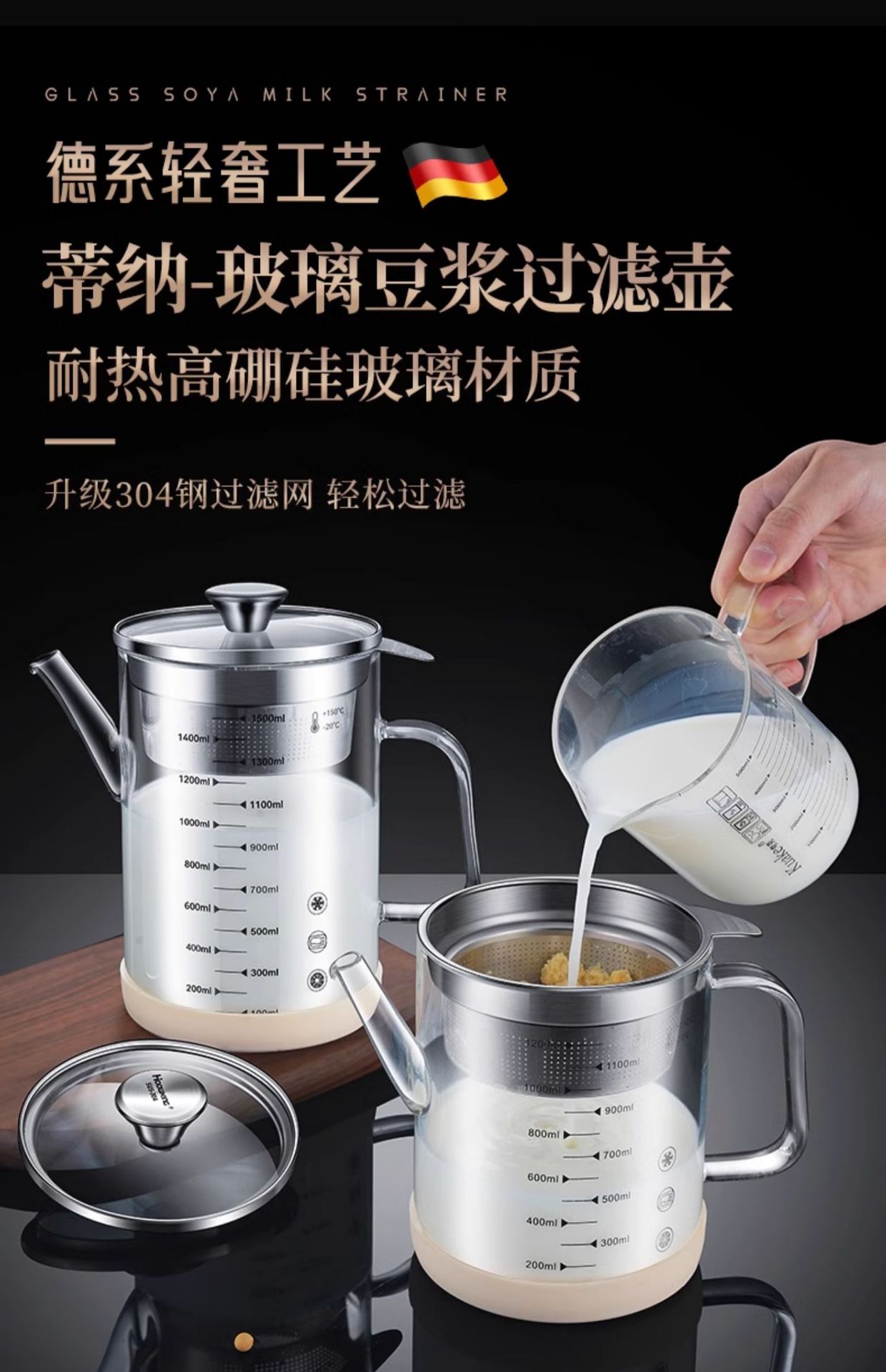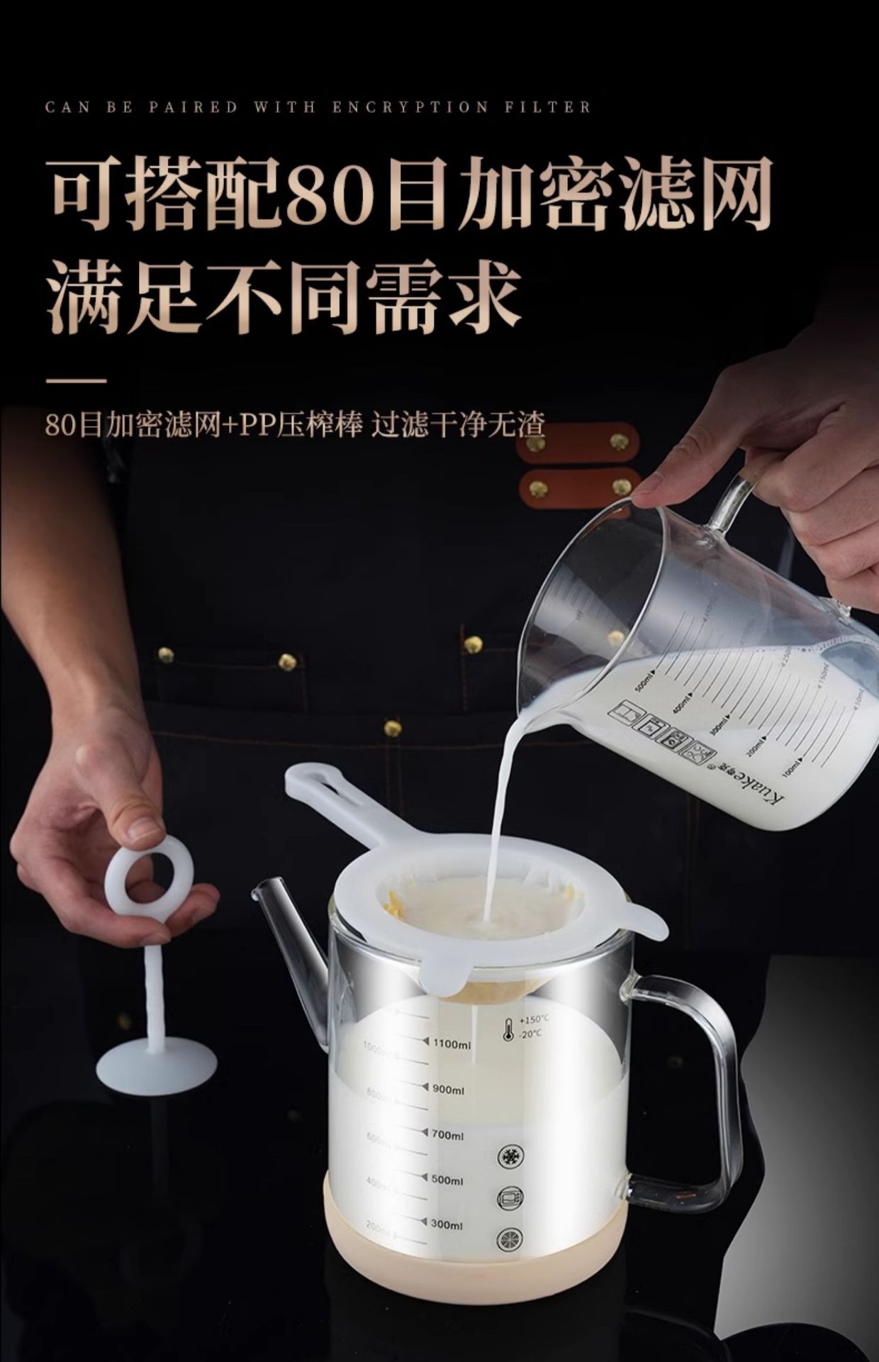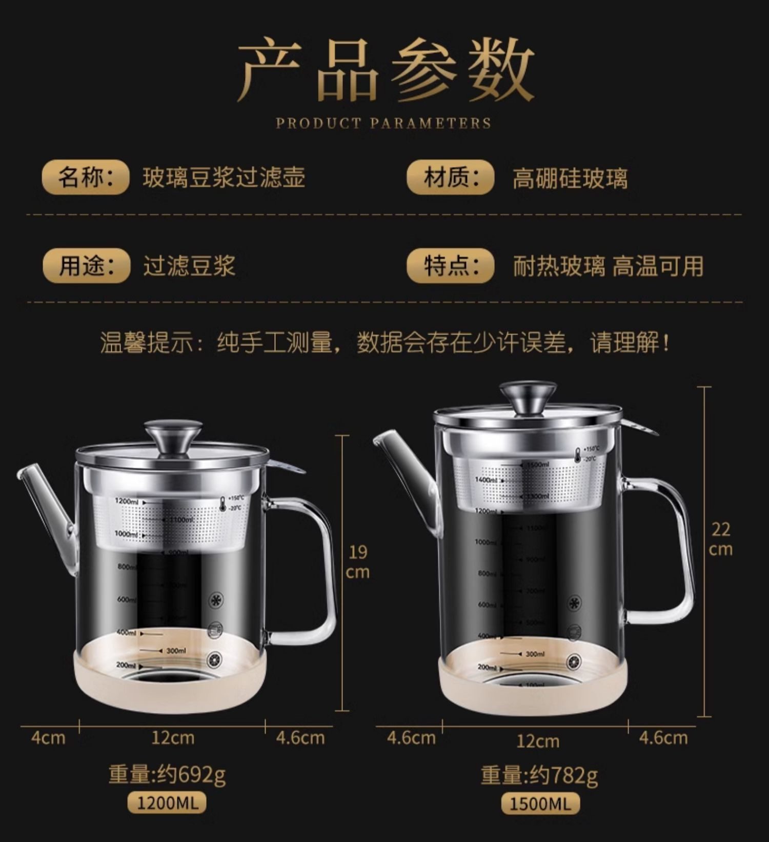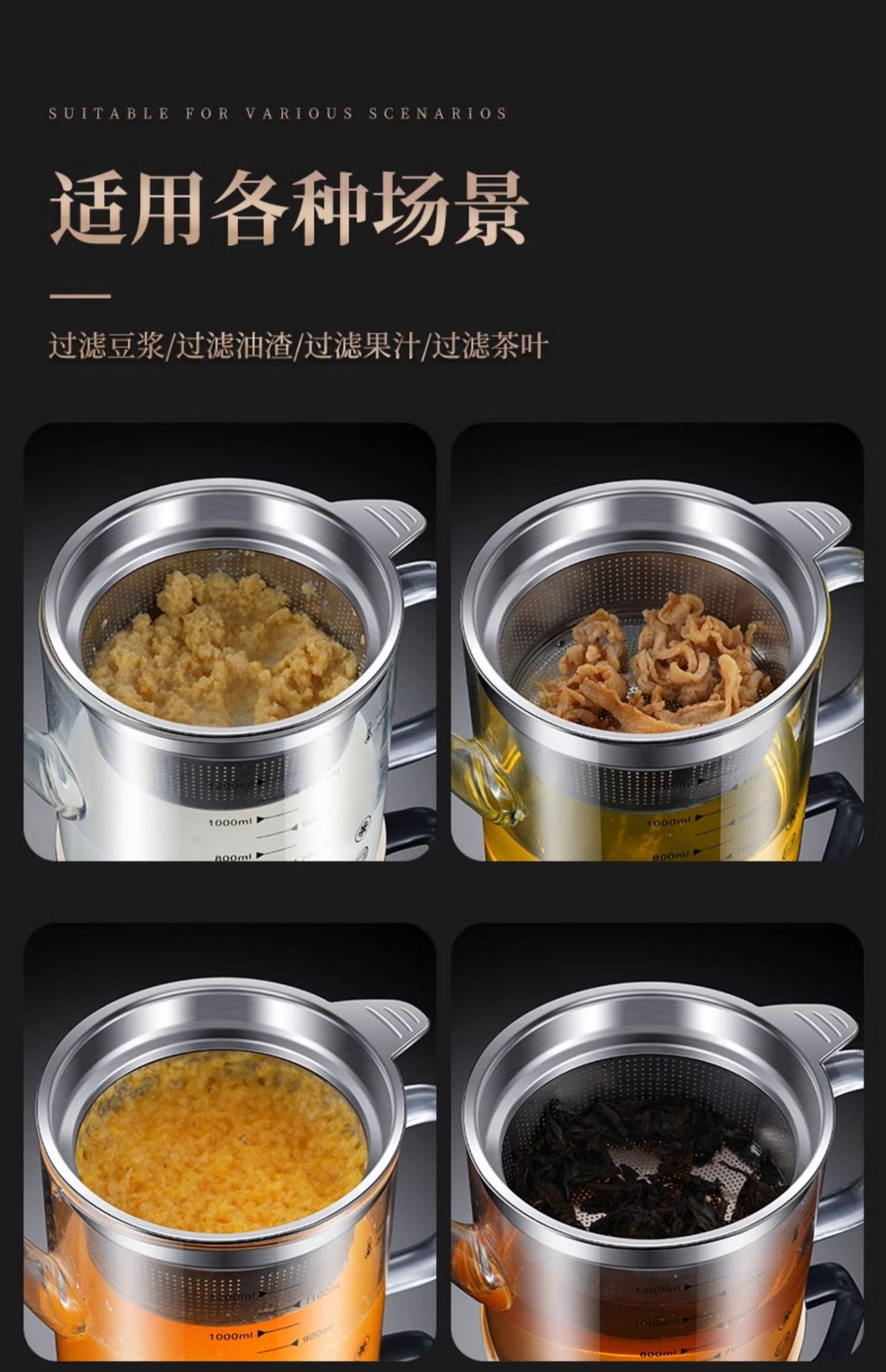 玻璃豆浆过滤壶304不锈钢隔渣神器漏勺家用厨房中药滤渣杯油渣壶