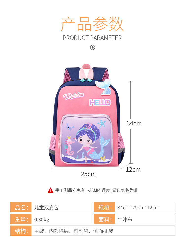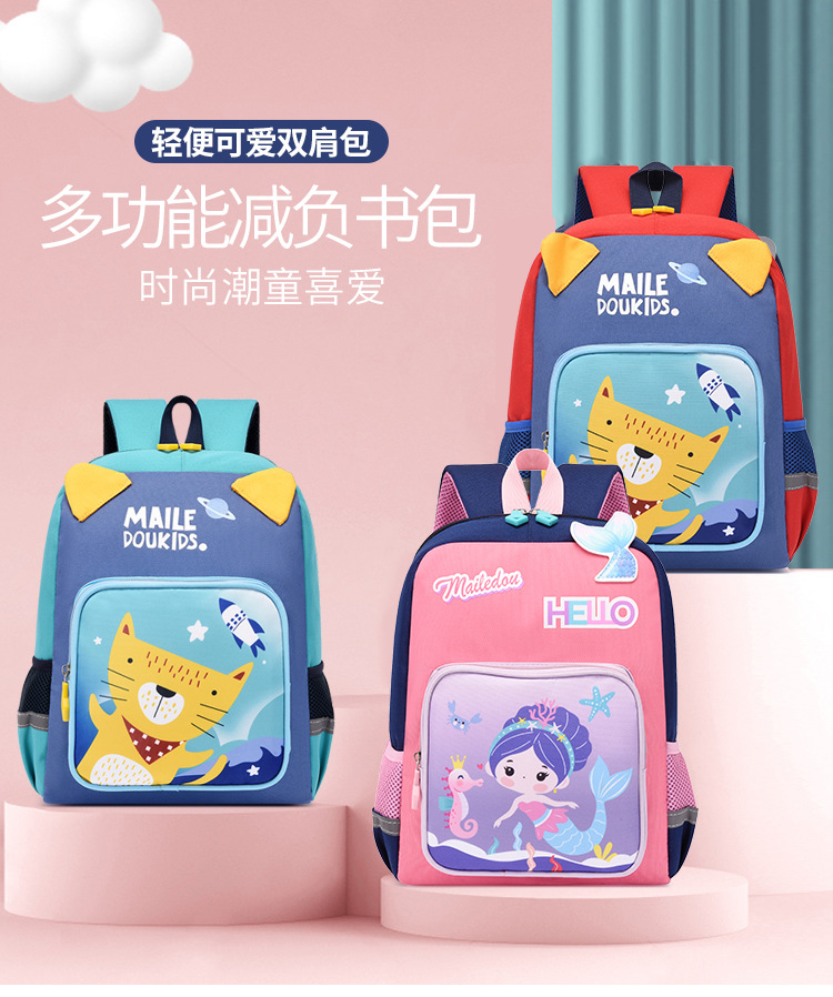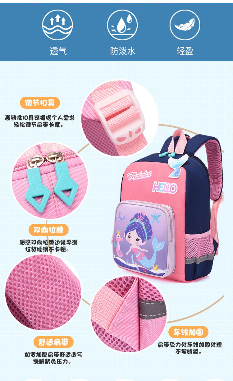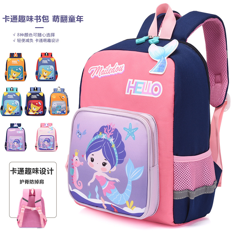 爆款儿童书包小学生透气防水幼儿园反光条书包女生豹子美人鱼书包