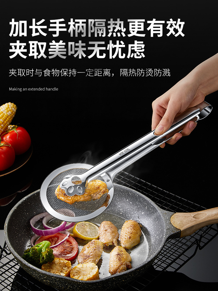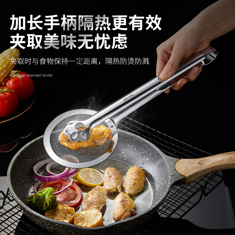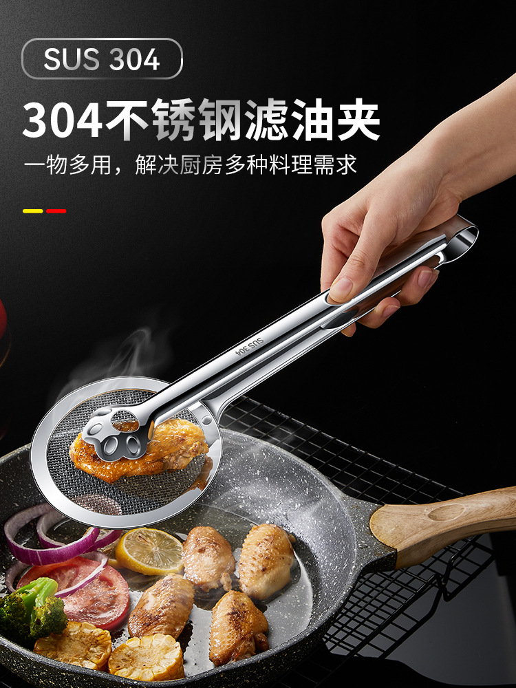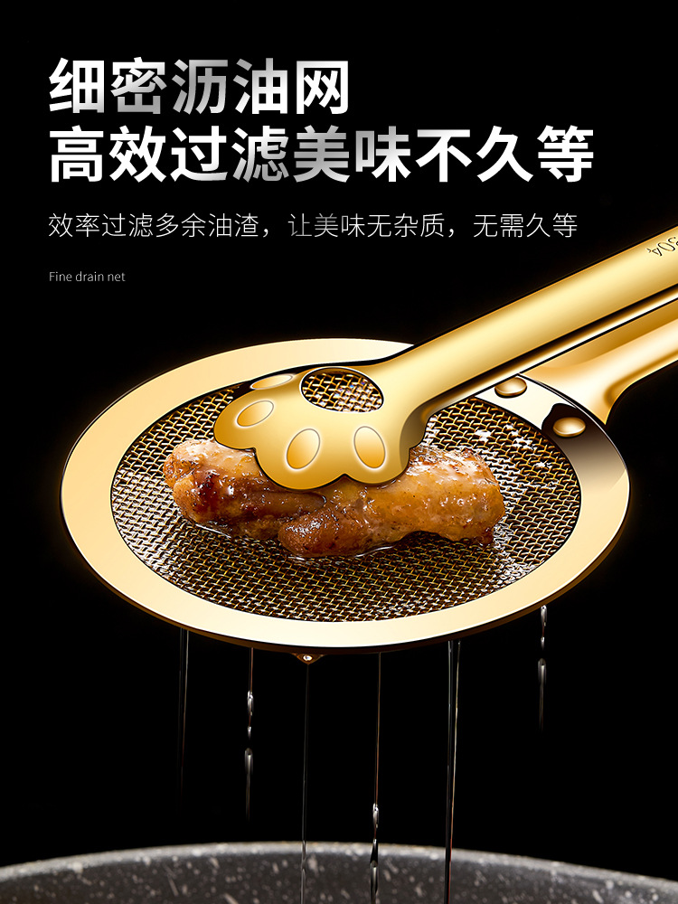 304不锈钢漏勺家用过滤网筛厨房牛排夹油夹煎铲二合一隔油漏网勺