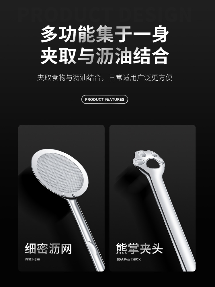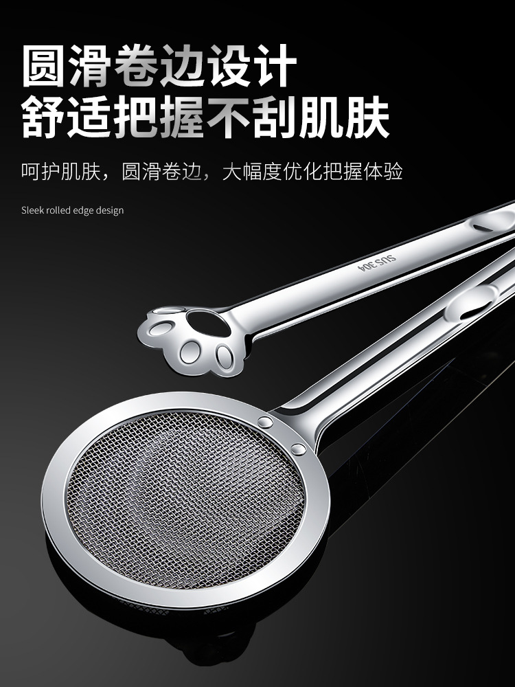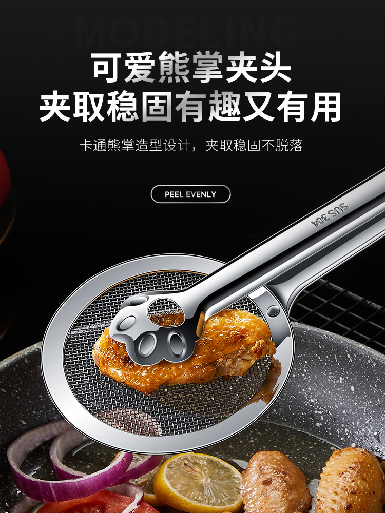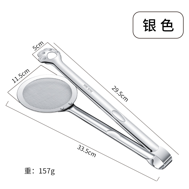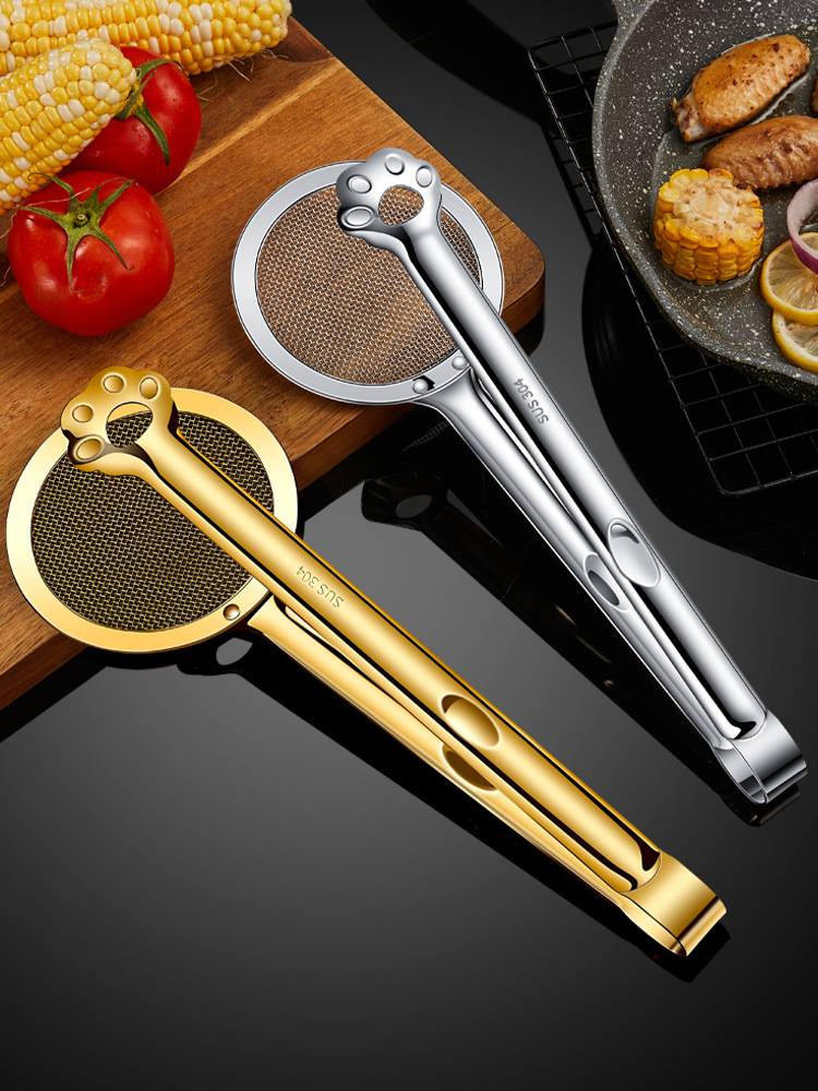 304不锈钢漏勺家用过滤网筛厨房牛排夹油夹煎铲二合一隔油漏网勺