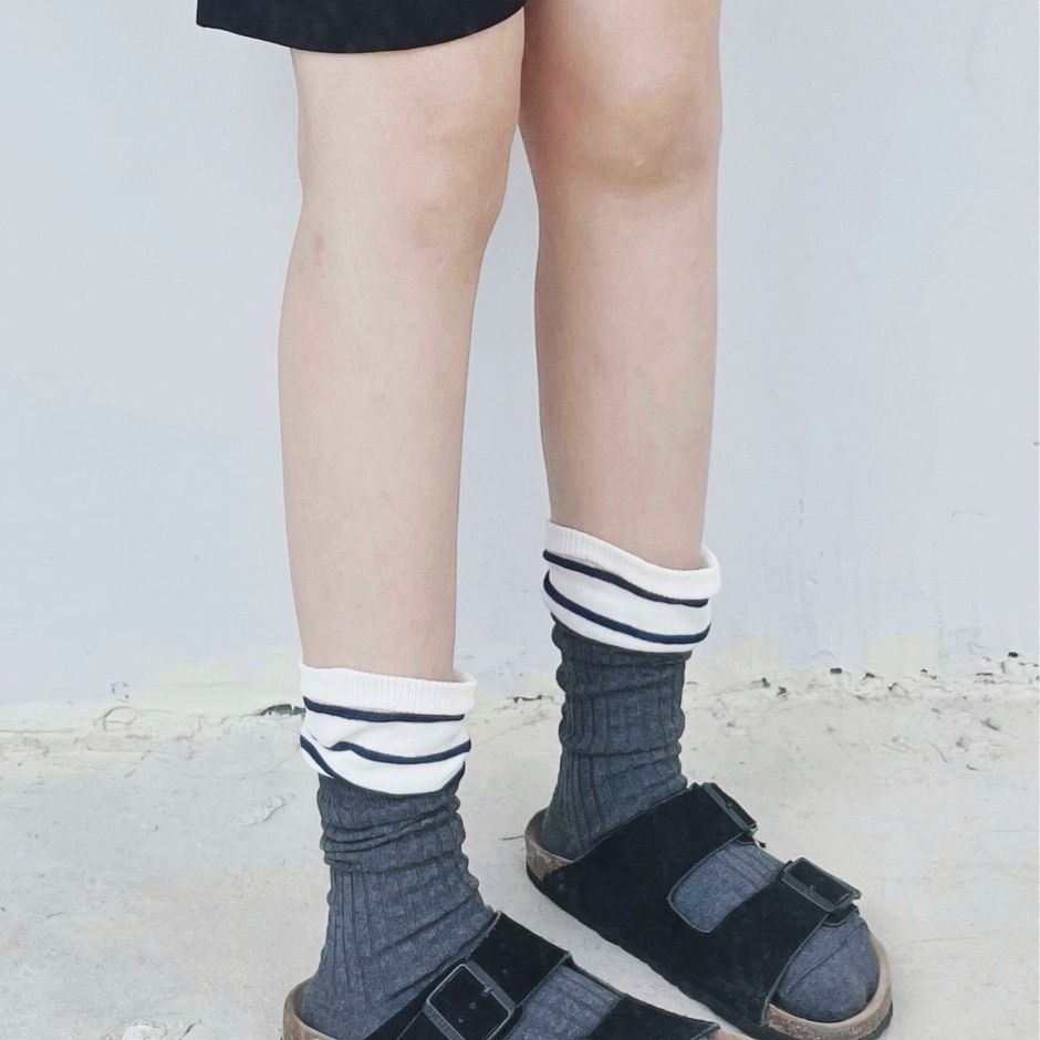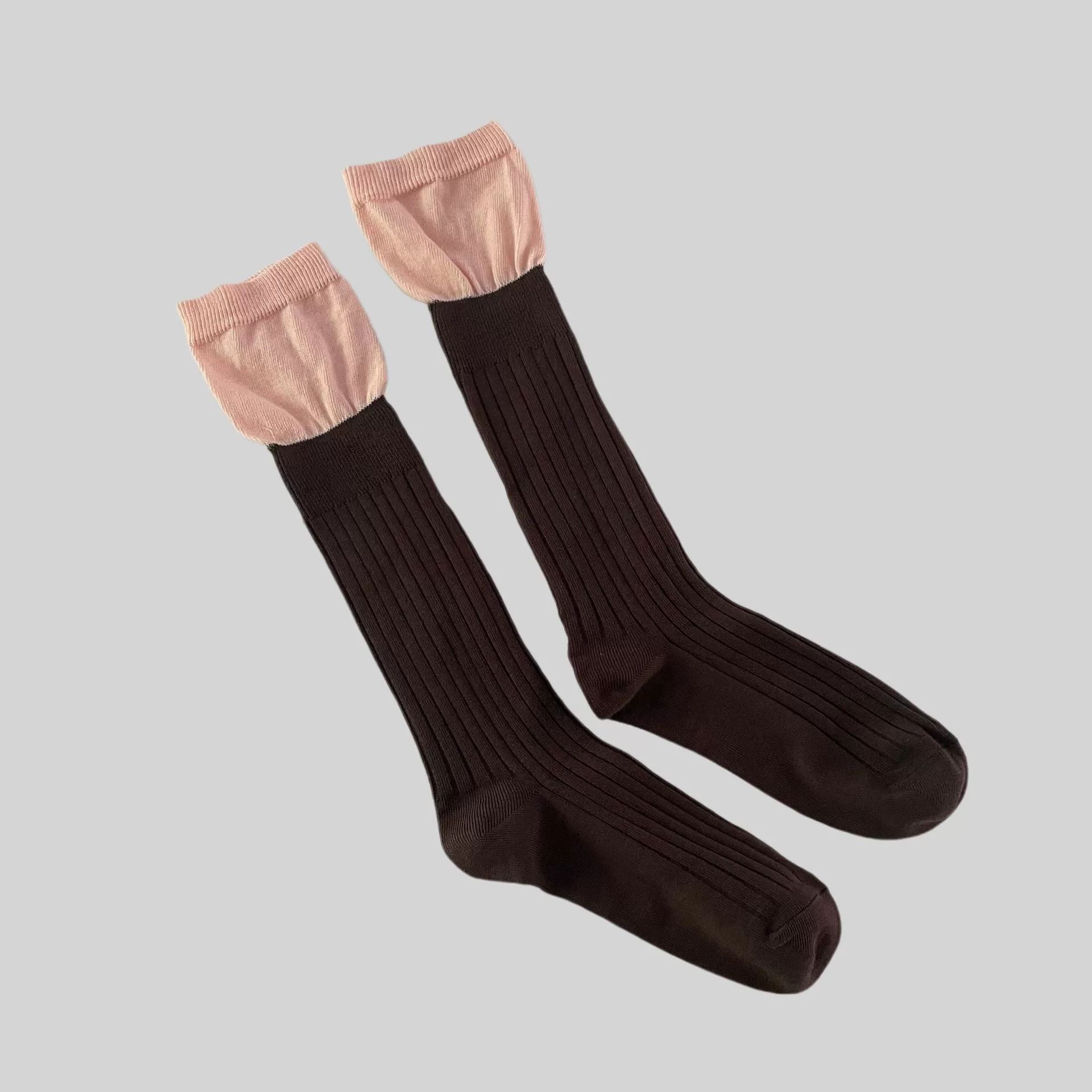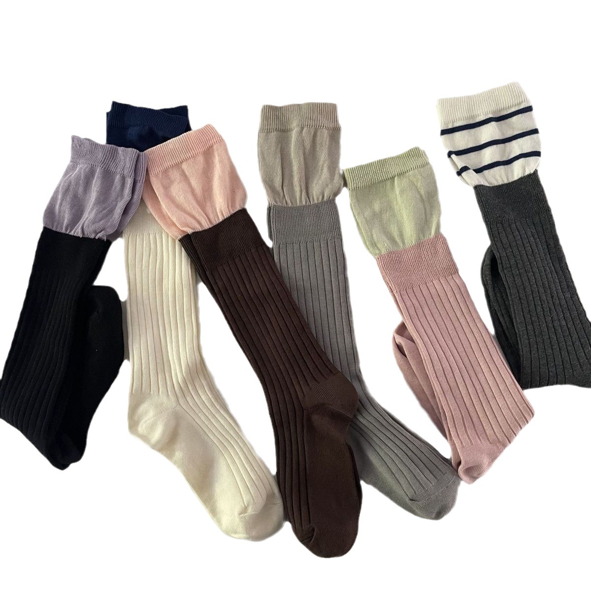 小腿袜多巴胺配色一体针织堆堆袜长筒女袜网红同款气质百搭