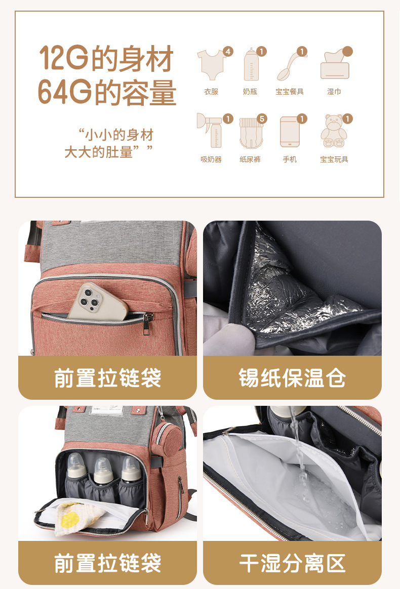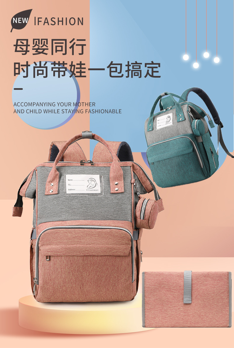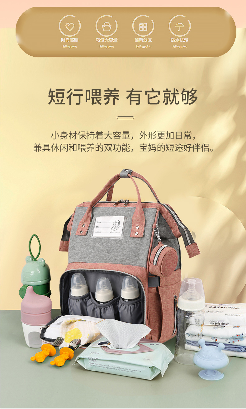 妈咪包跨境新款时尚保温储奶双肩包干湿分离便携尿垫母婴包