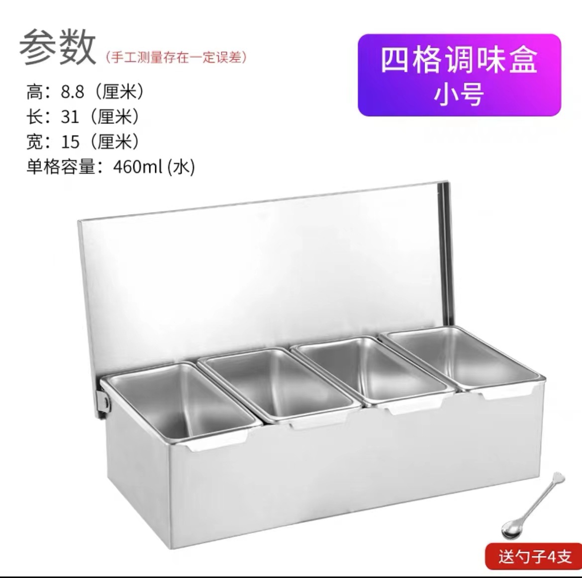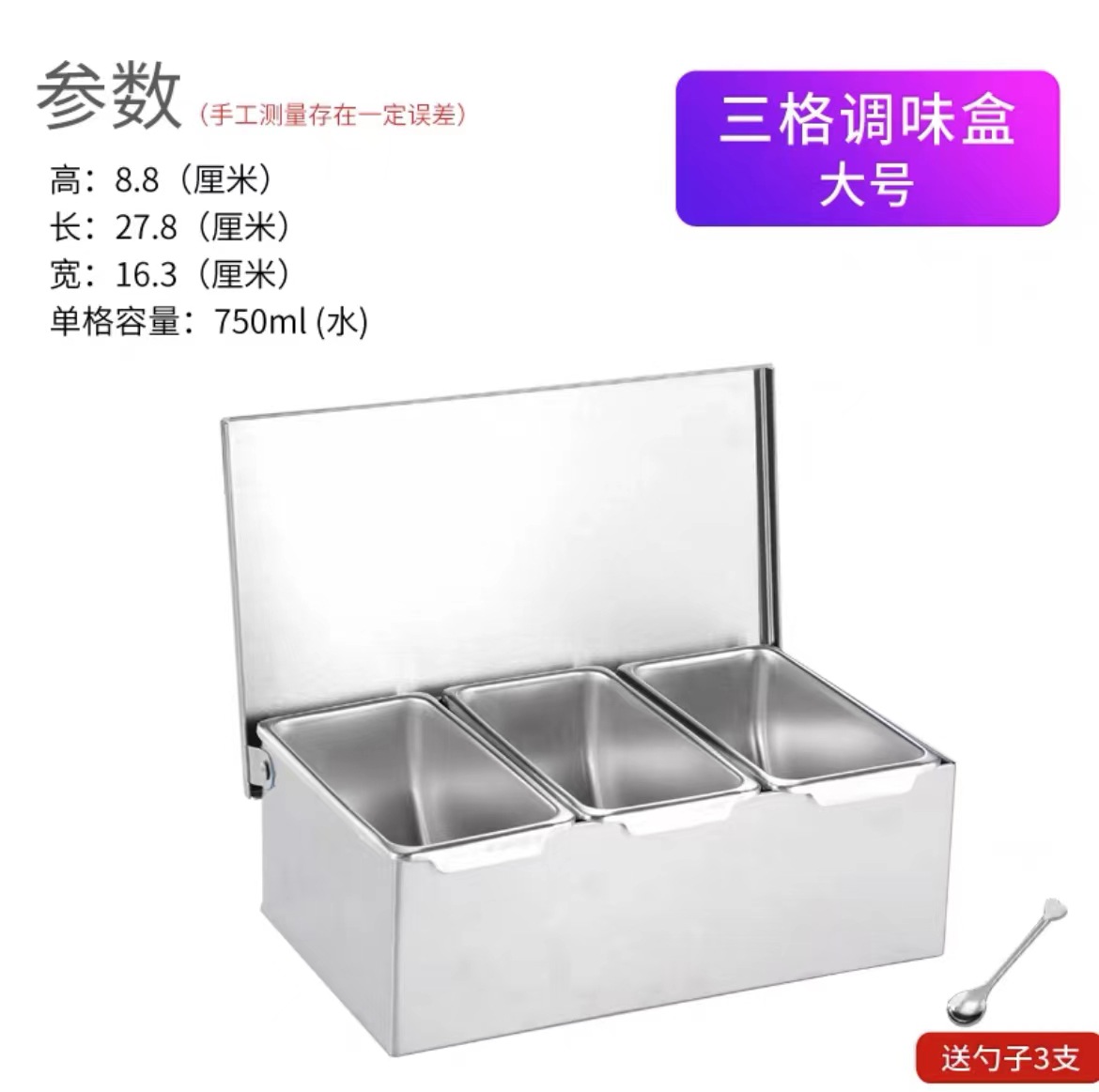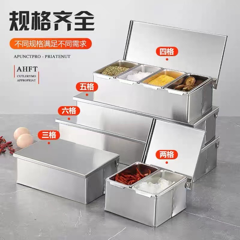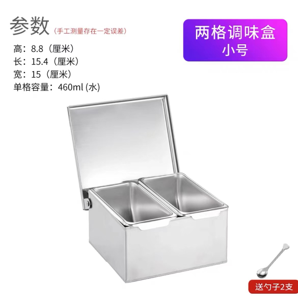 不锈钢加厚调味盒酒店厨房配料调味盒方形翻盖佐料盒带盖储物盒
