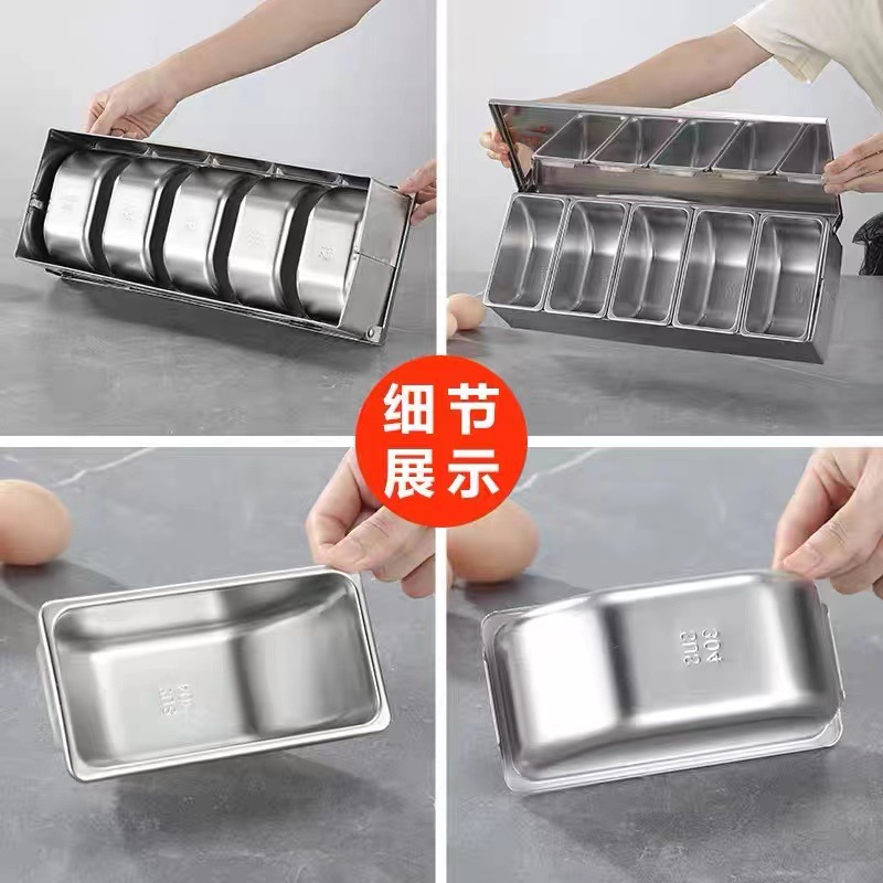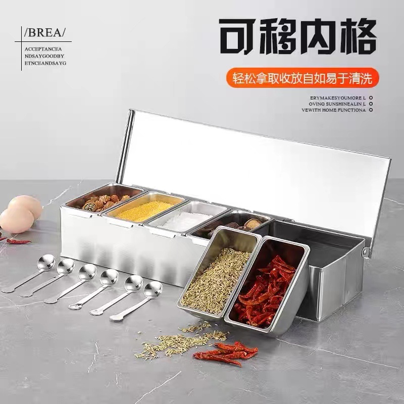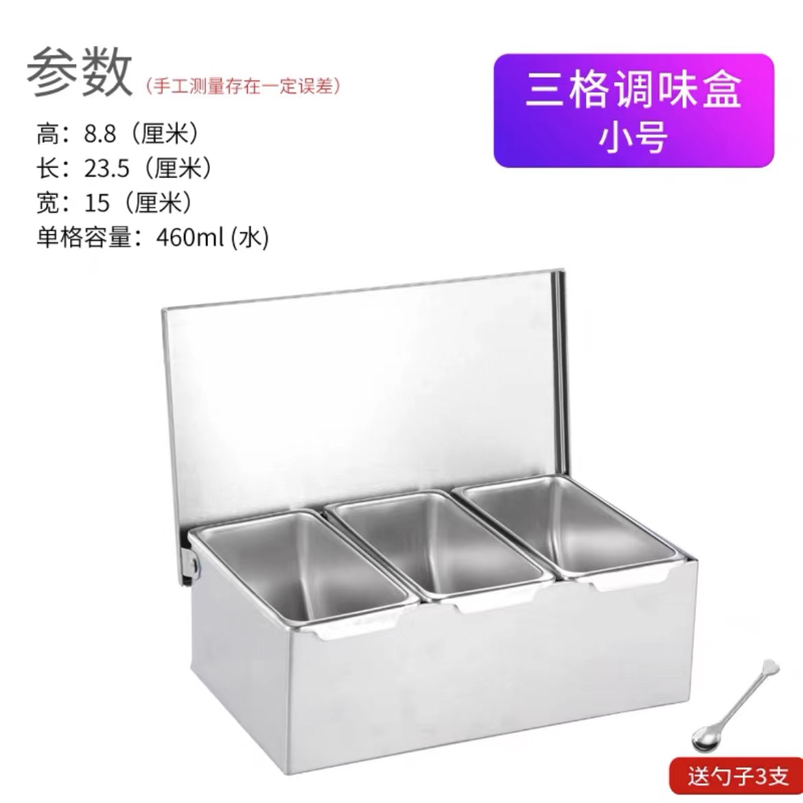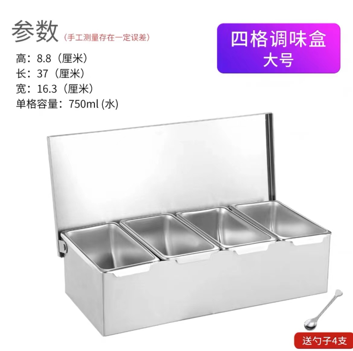 不锈钢加厚调味盒酒店厨房配料调味盒方形翻盖佐料盒带盖储物盒