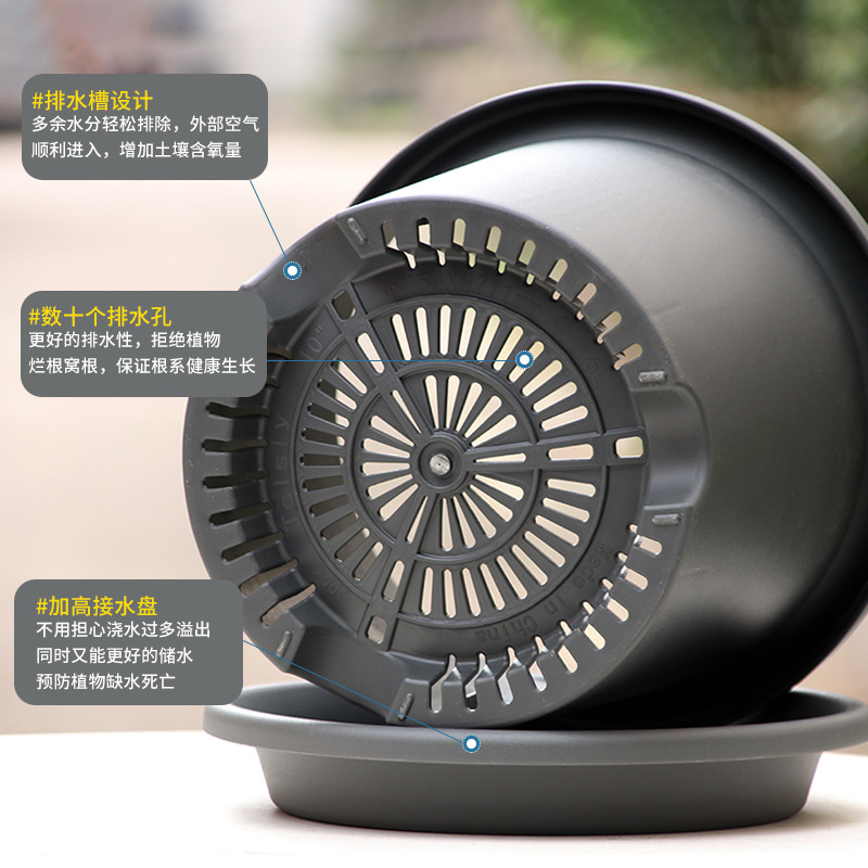 加厚圆形塑料花盆简约风透气控根加仑盆大口径种植花盆批发