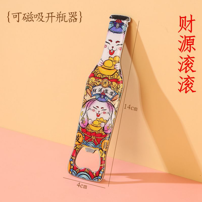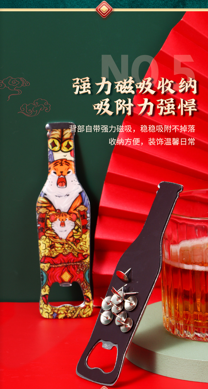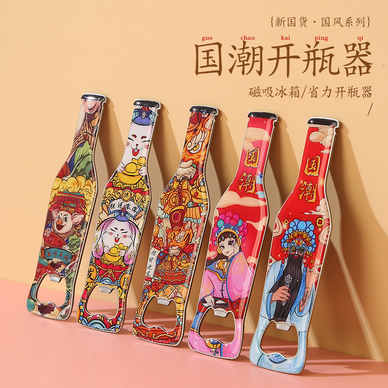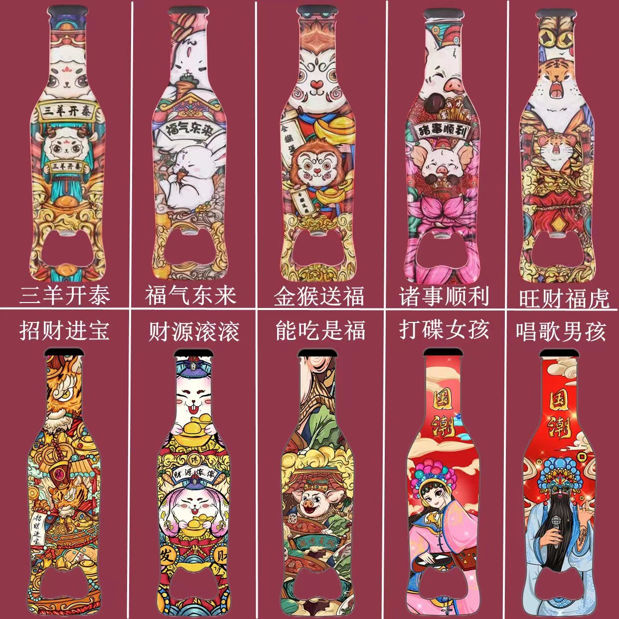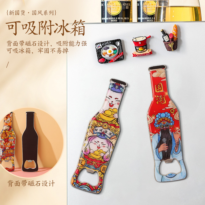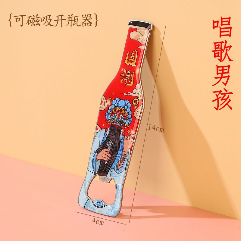 创意啤酒开瓶器冰箱贴国潮风磁吸瓶起子家用餐厅不锈钢启瓶器批发