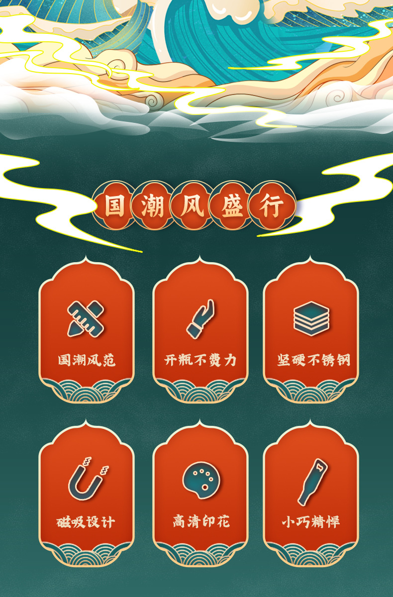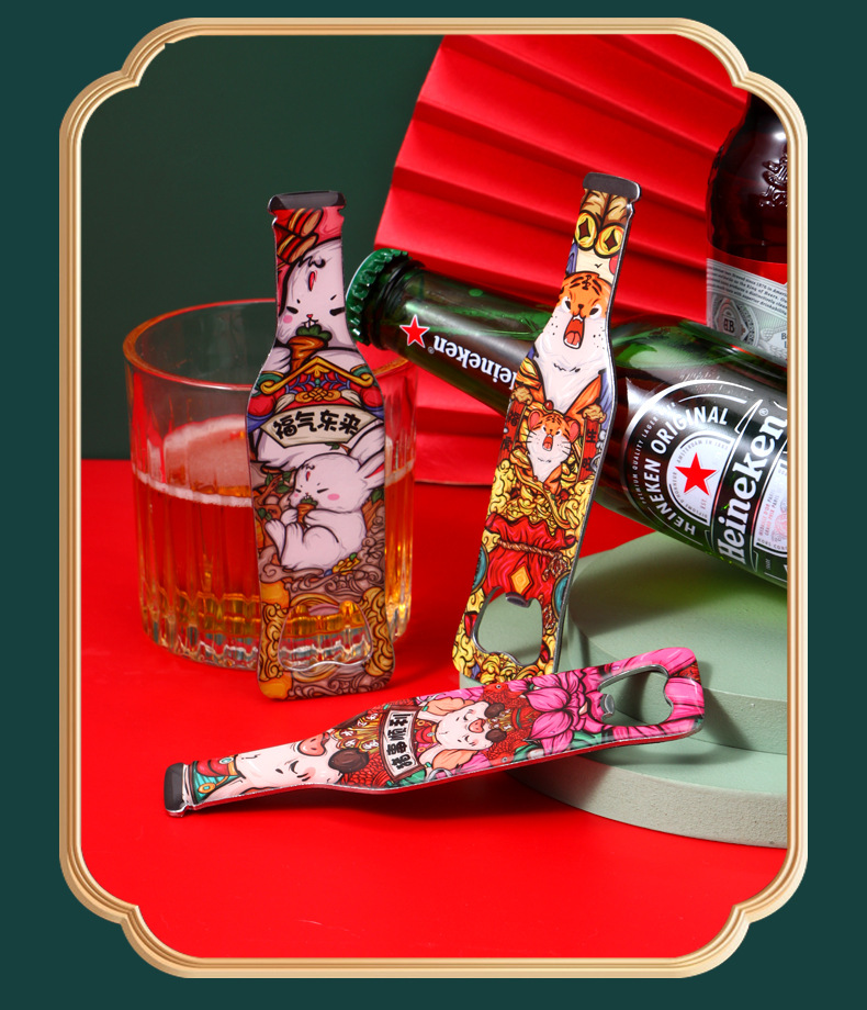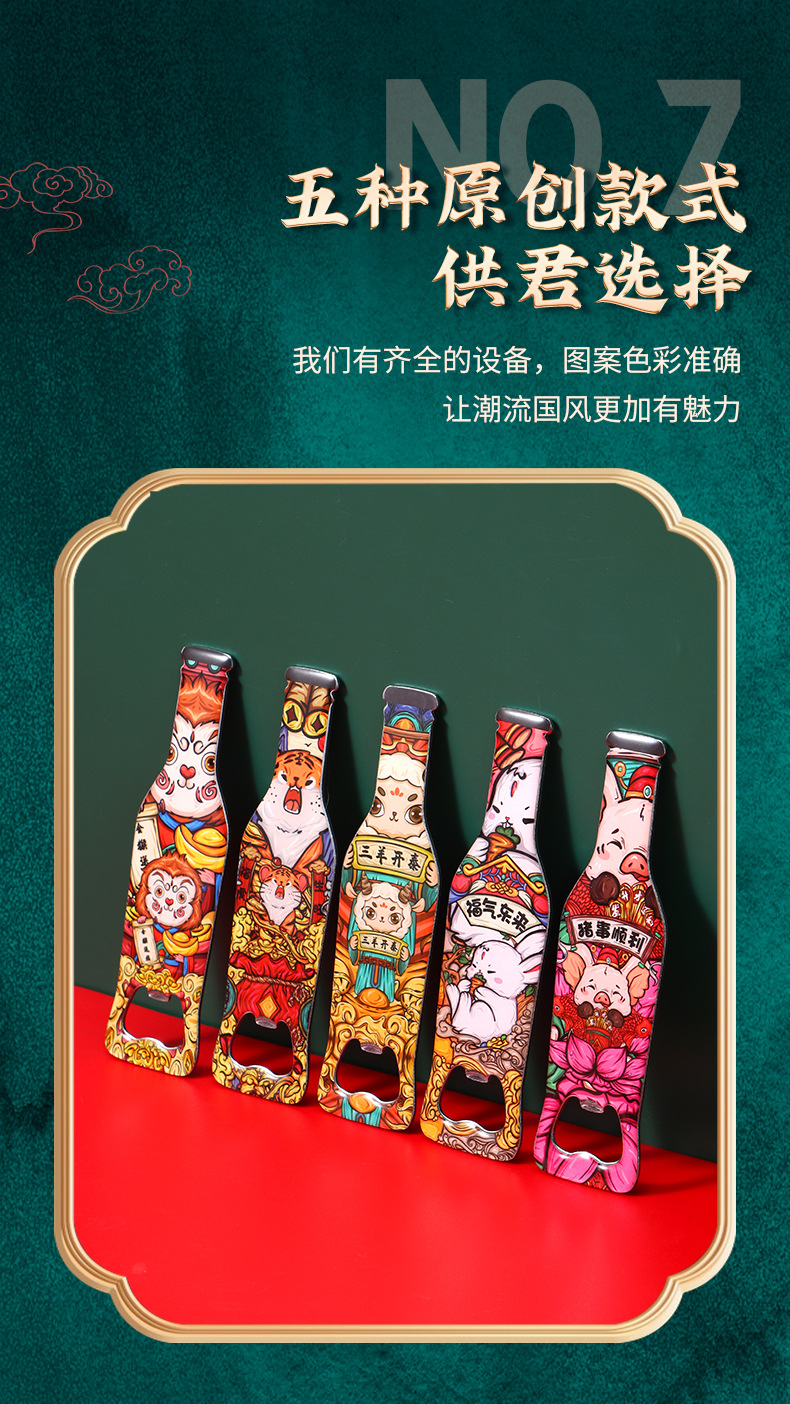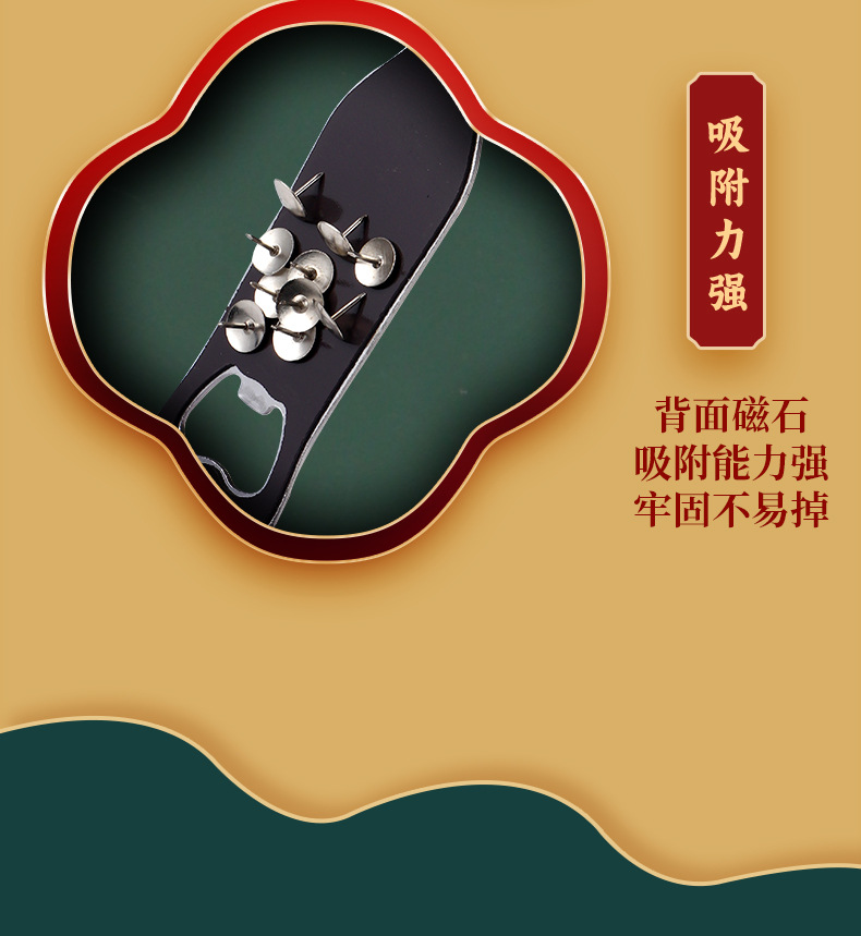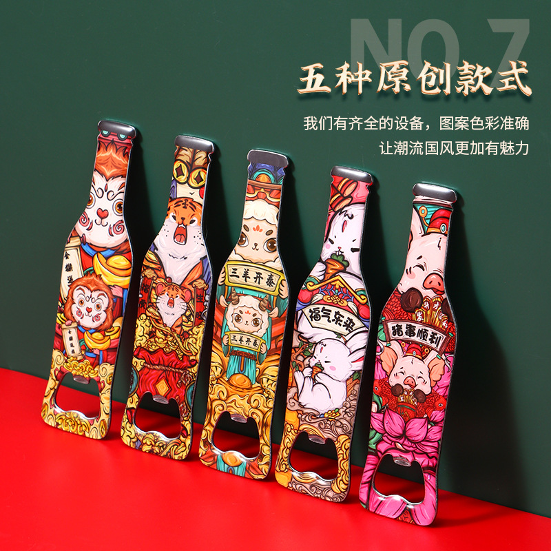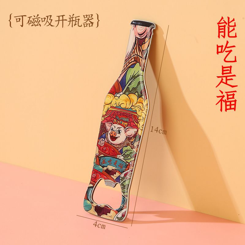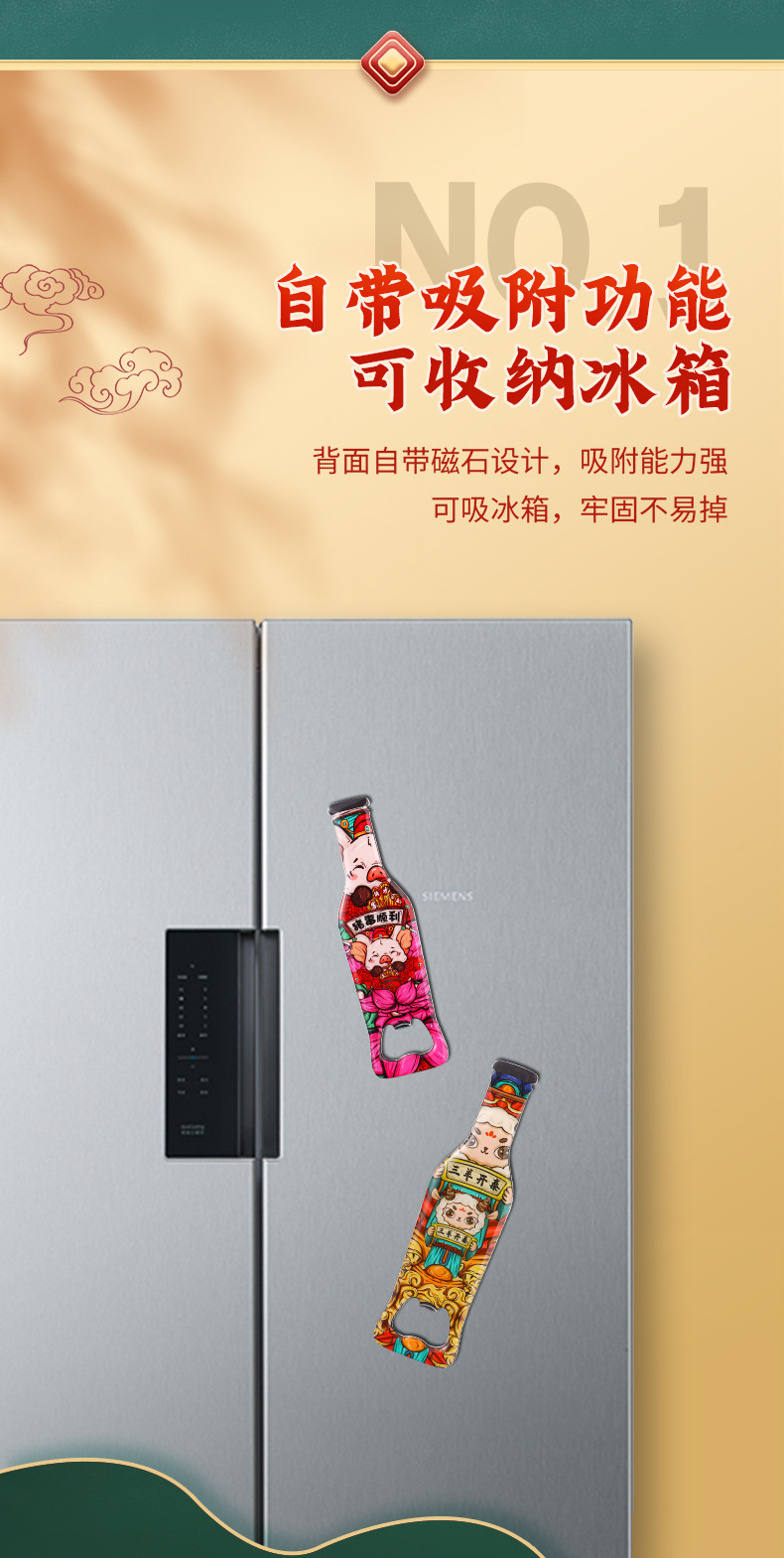 创意啤酒开瓶器冰箱贴国潮风磁吸瓶起子家用餐厅不锈钢启瓶器批发