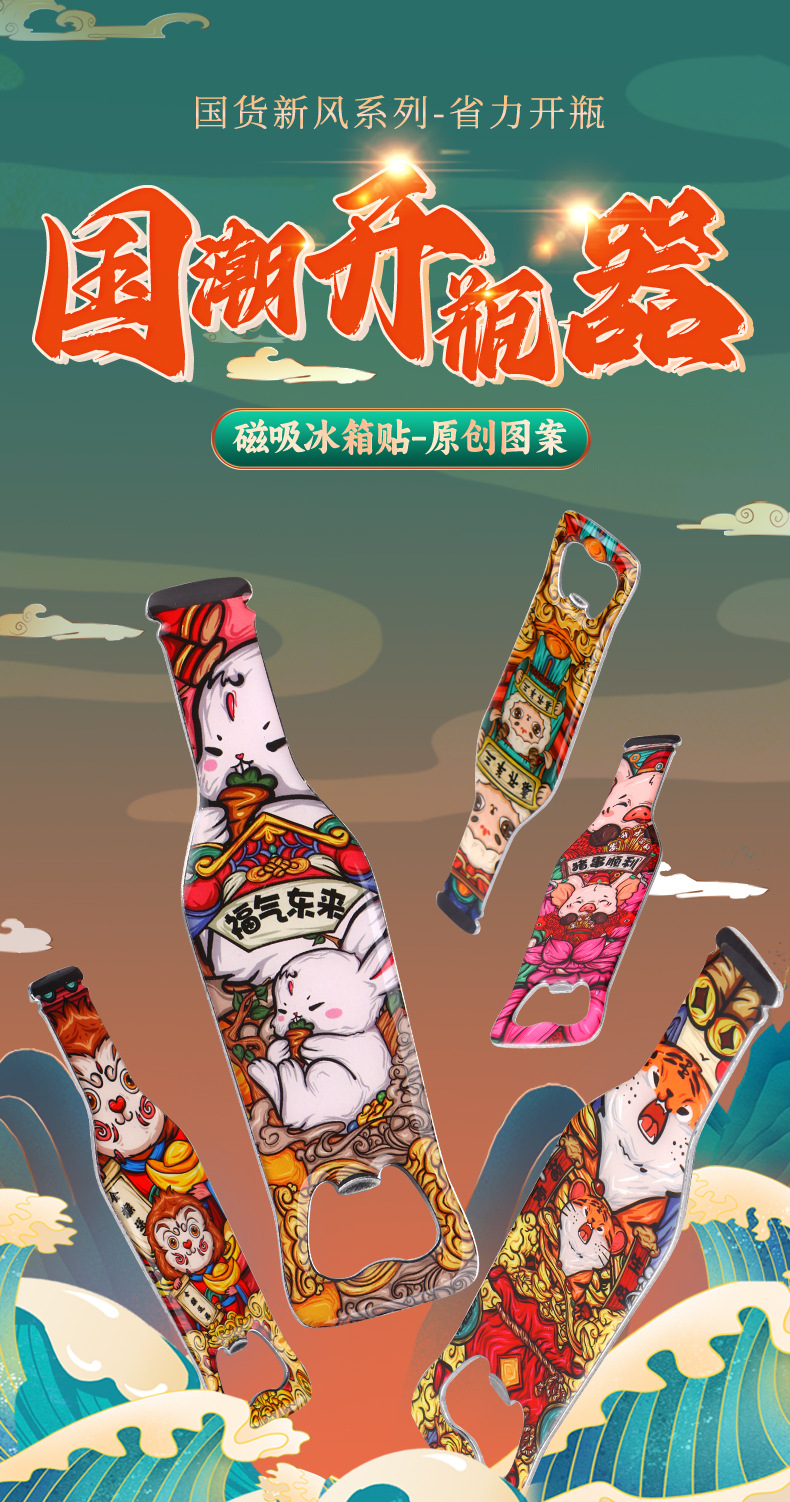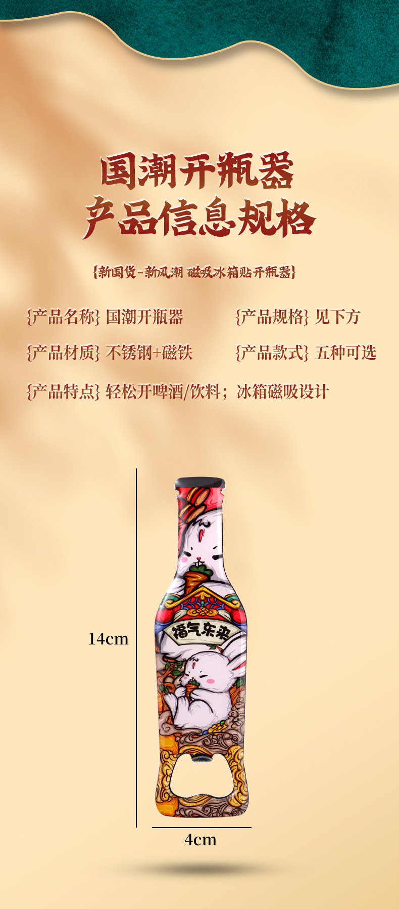 不锈钢啤酒开瓶器国潮新款原创磁吸不锈钢厨房瓶起子家商用啤酒开